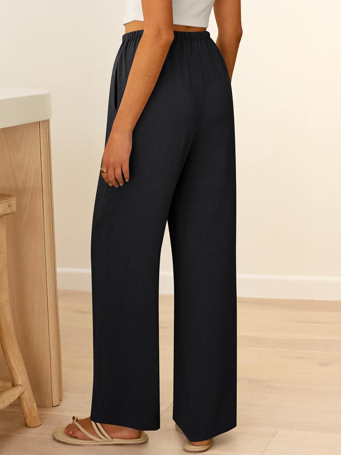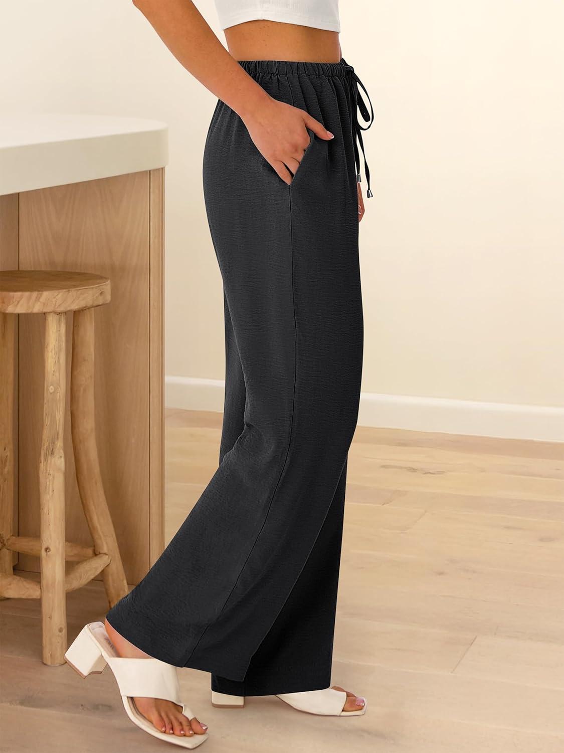 ABRABESS Womens Palazzo Pants Wide Leg Flowy Drawstring High Waisted Casual Trousers 2026 Summer Beach Vacation Outfits(Black)