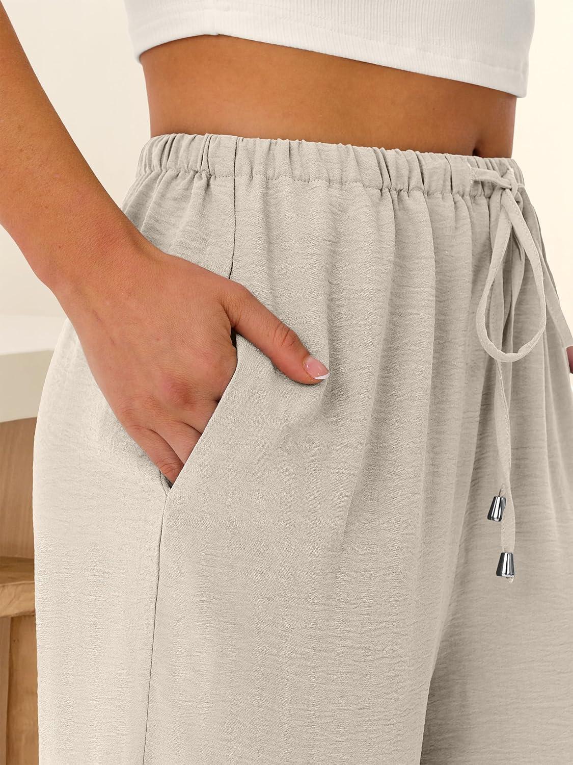imageABRABESS Womens Palazzo Pants Wide Leg Flowy Drawstring High Waisted Casual Trousers 2026 Summer Beach Vacation OutfitsLake
