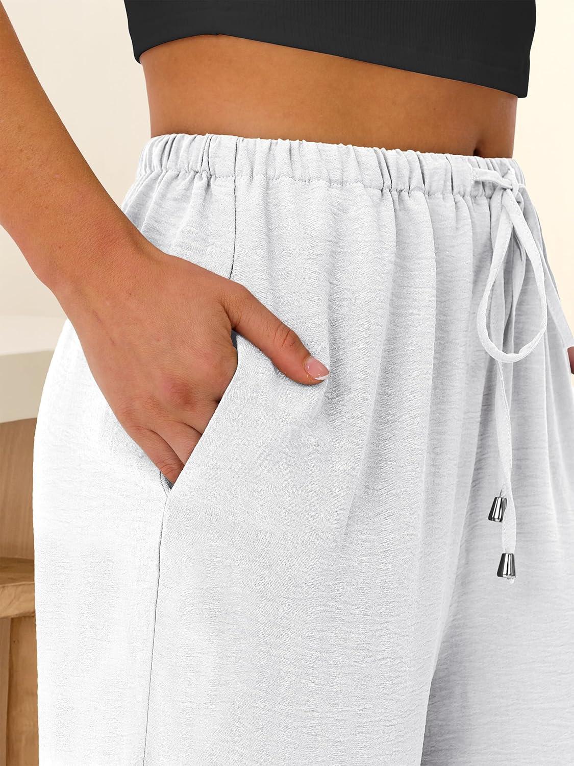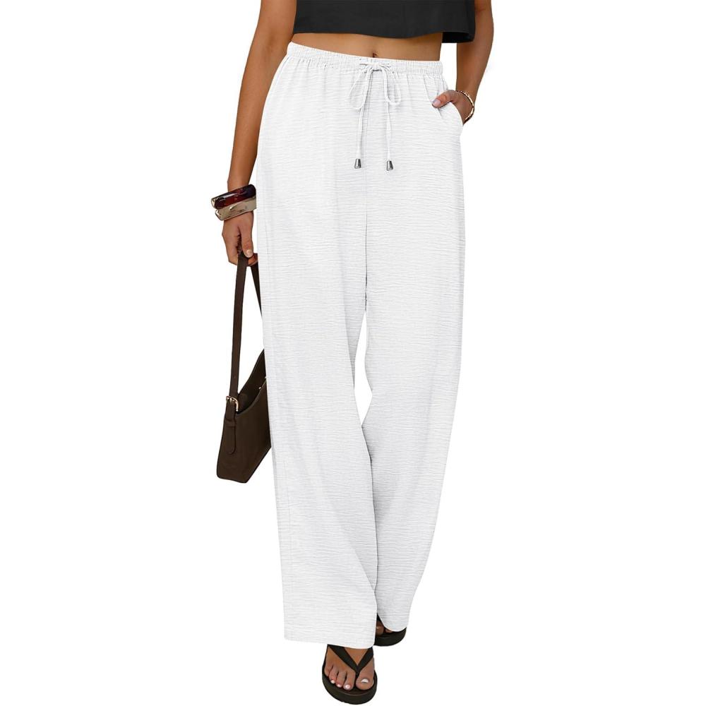 ABRABESS Womens Palazzo Pants Wide Leg Flowy Drawstring High Waisted Casual Trousers 2026 Summer Beach Vacation Outfits(White)