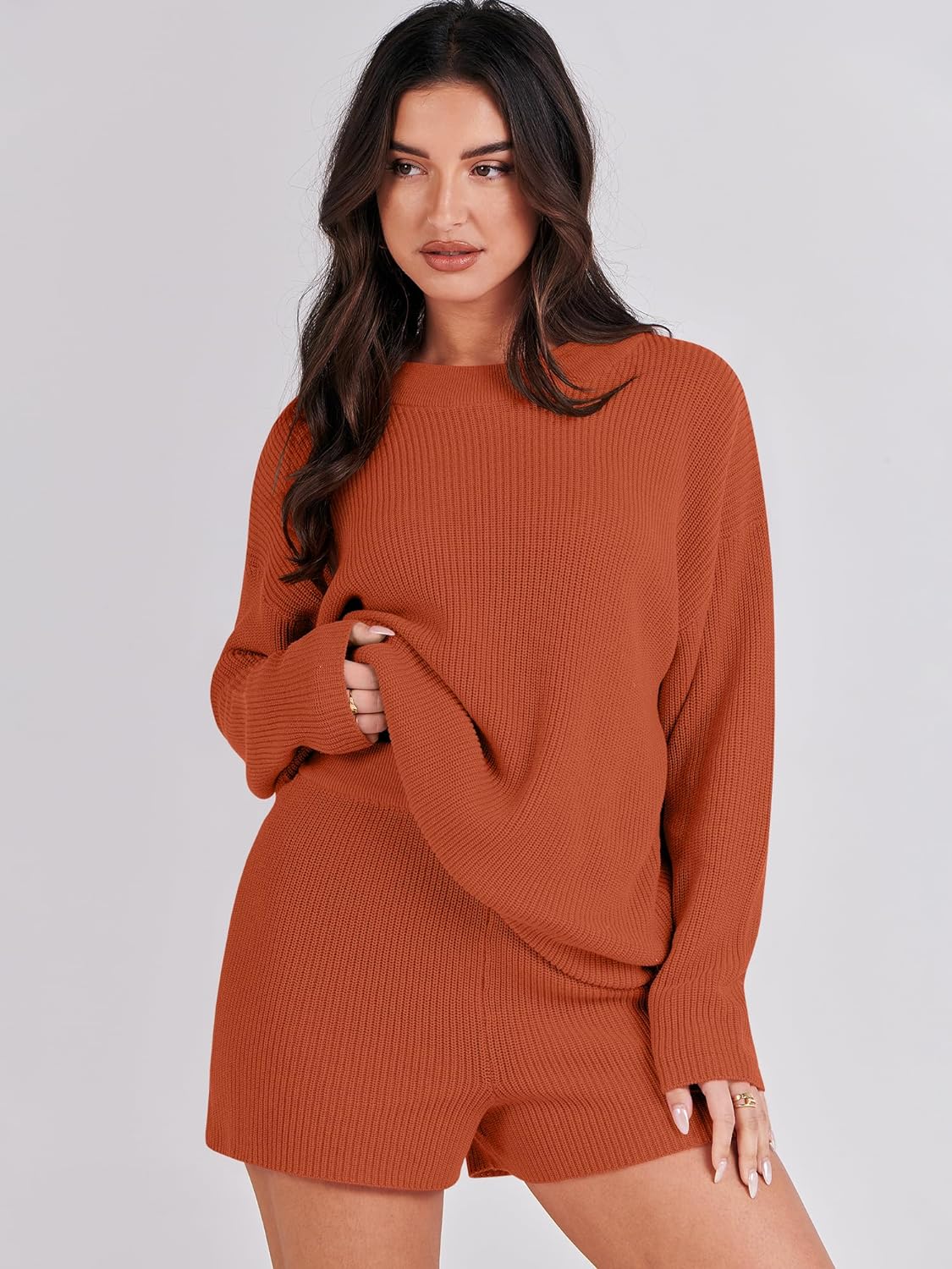 Be the first to review “ANRABESS 2 Piece Outfits For Women 2024 Spring Lounge Matching Loungewear Sets Oversized Sweater and Shorts Set(Rust)” Cancel reply