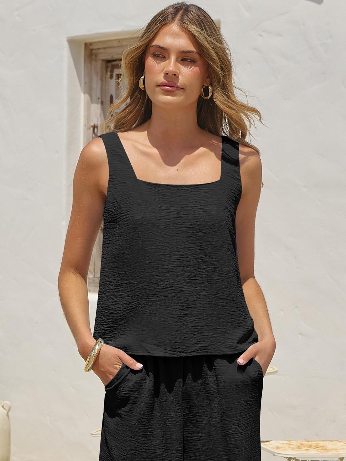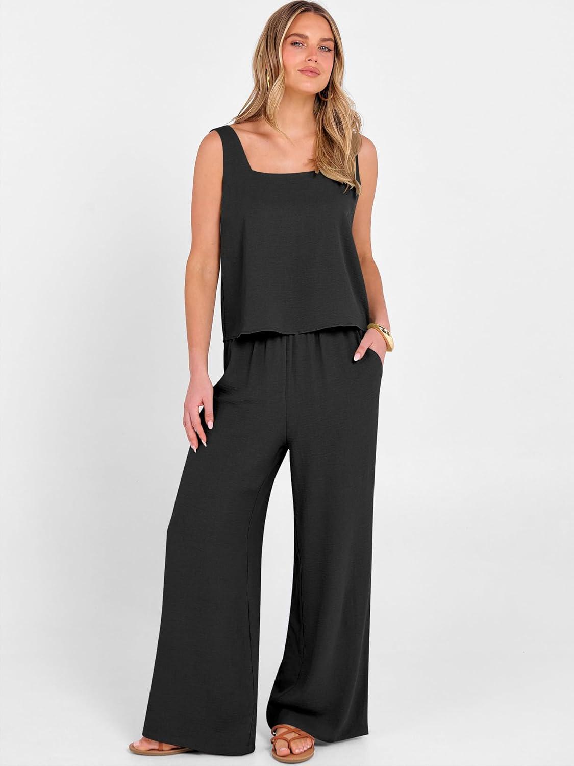 Be the first to review “ANRABESS 2 Piece Sets for Women Outfits Lounge Matching Casual Travel Wide Leg Pants Crop Top Summer Vacation Beach Clothes(Black)”