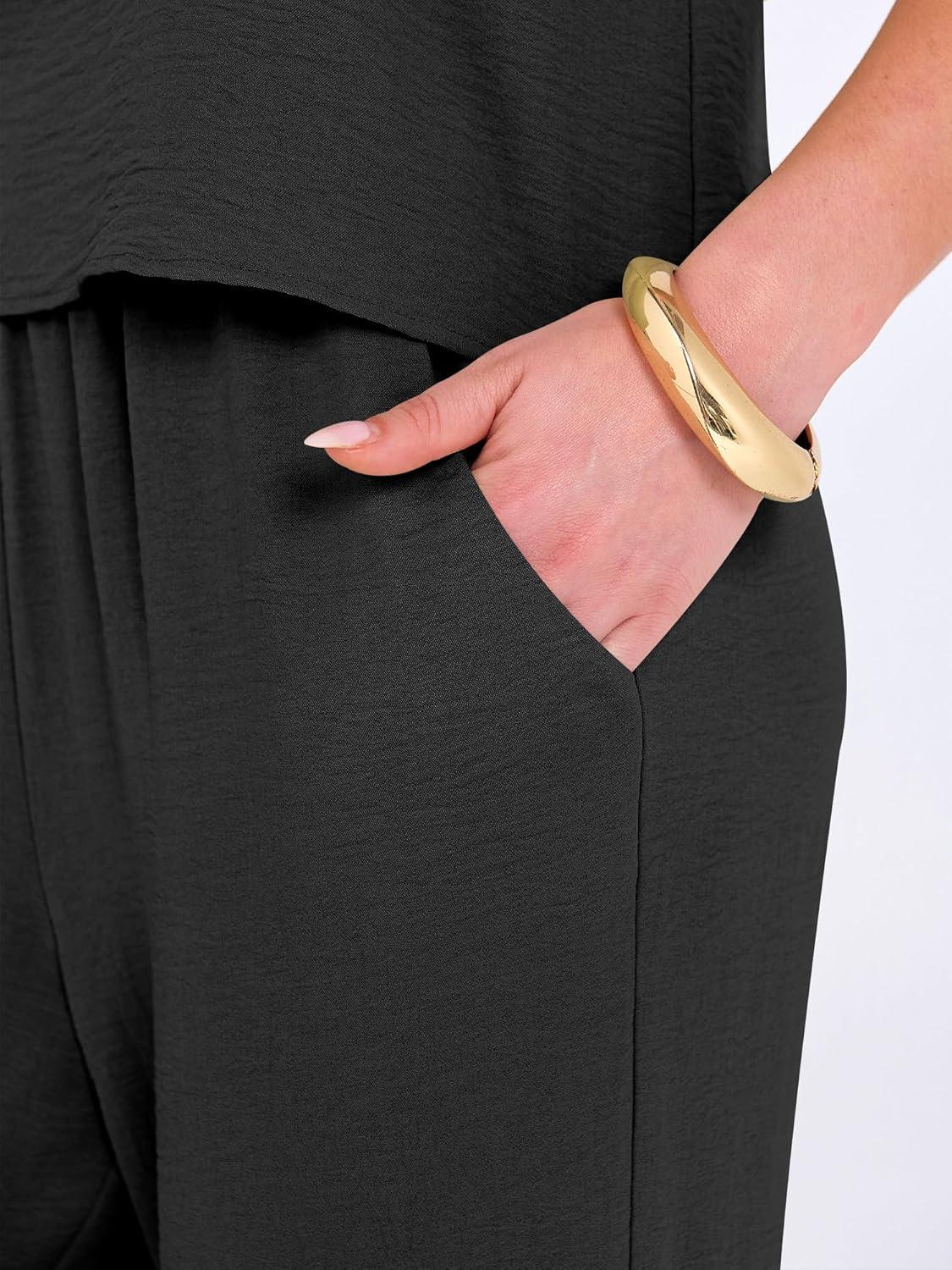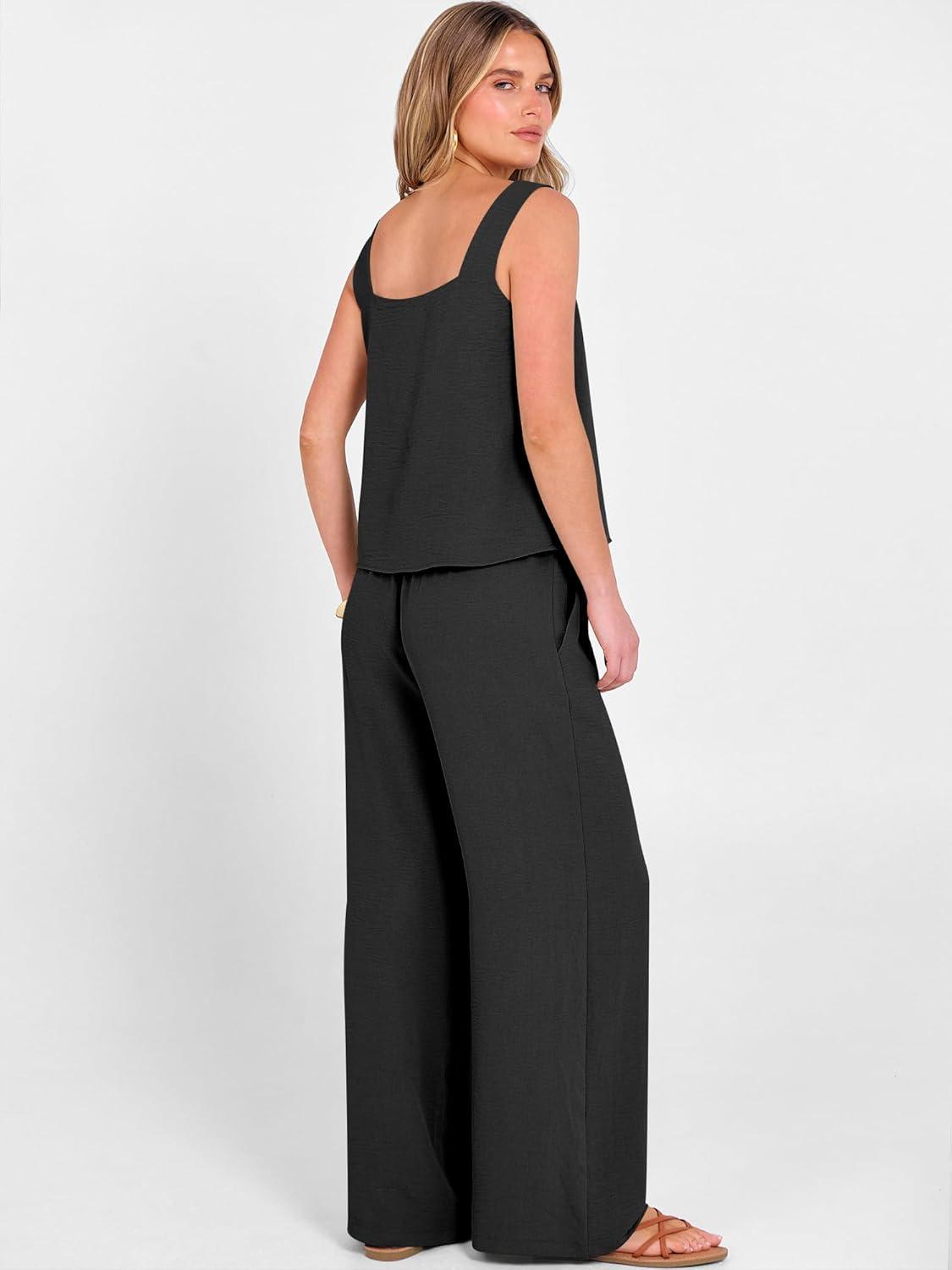 ANRABESS 2 Piece Sets for Women Outfits Lounge Matching Casual Travel Wide Leg Pants Crop Top Summer Vacation Beach Clothes(Black)