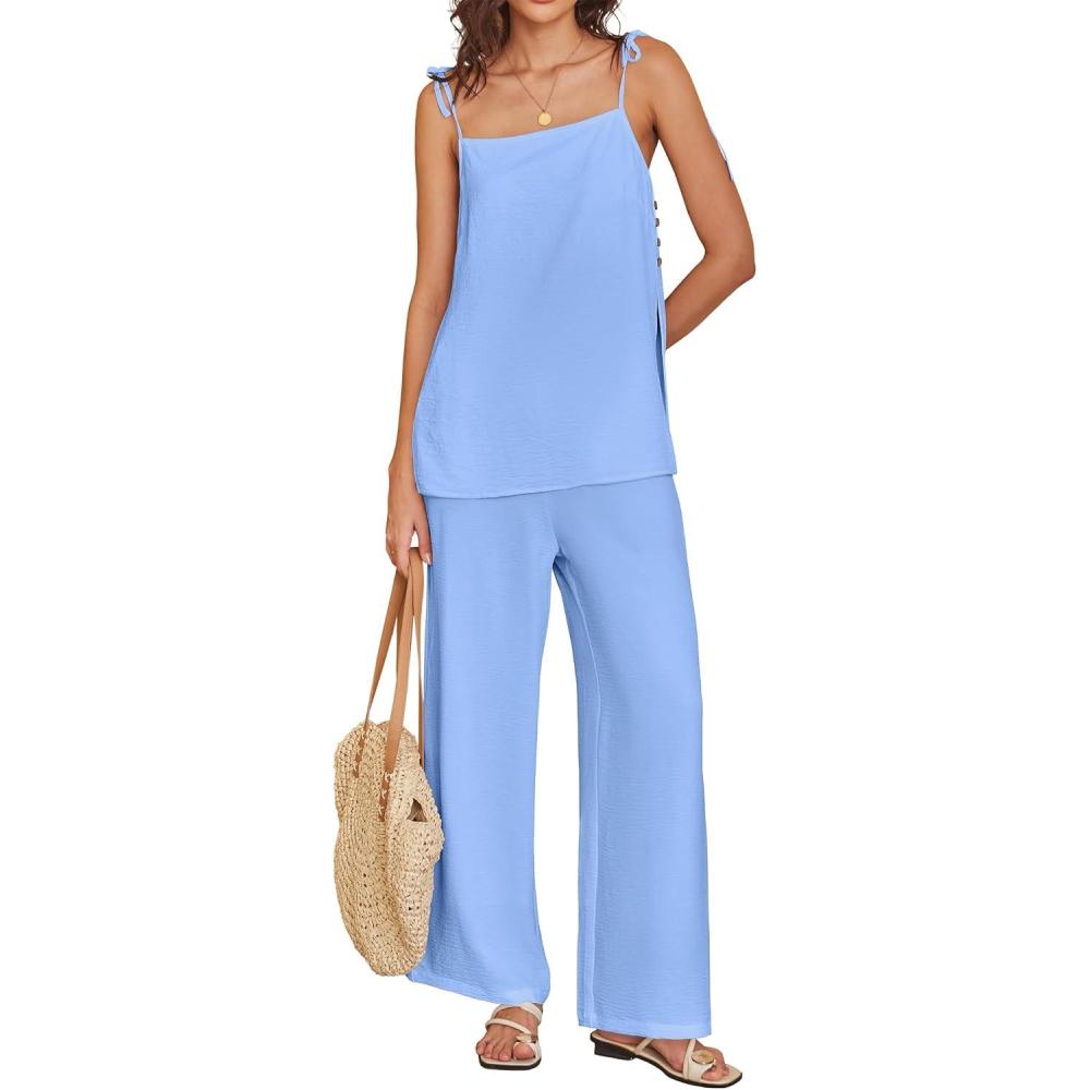 imageANRABESS 2 Piece Sets for Women Summer Lounge Matching Set Spaghetti Strap Top Wide Leg Pants Vacation Beach Travel OutfitsSky Blue
