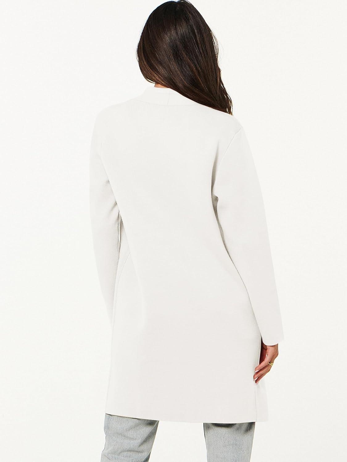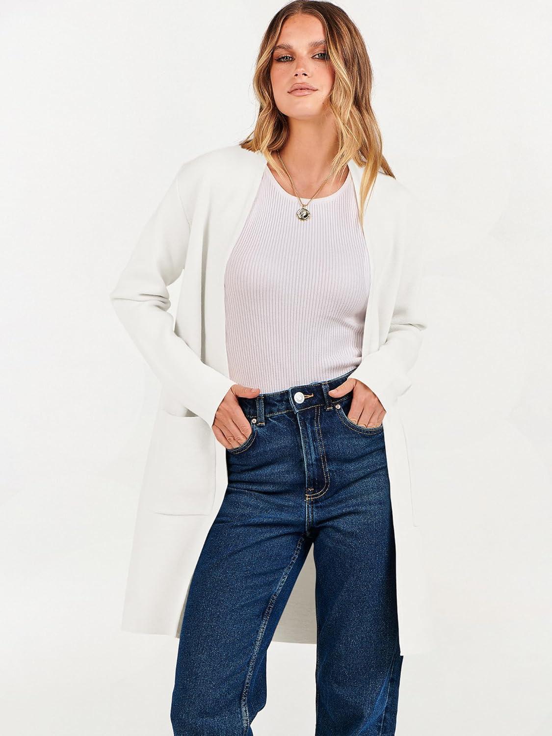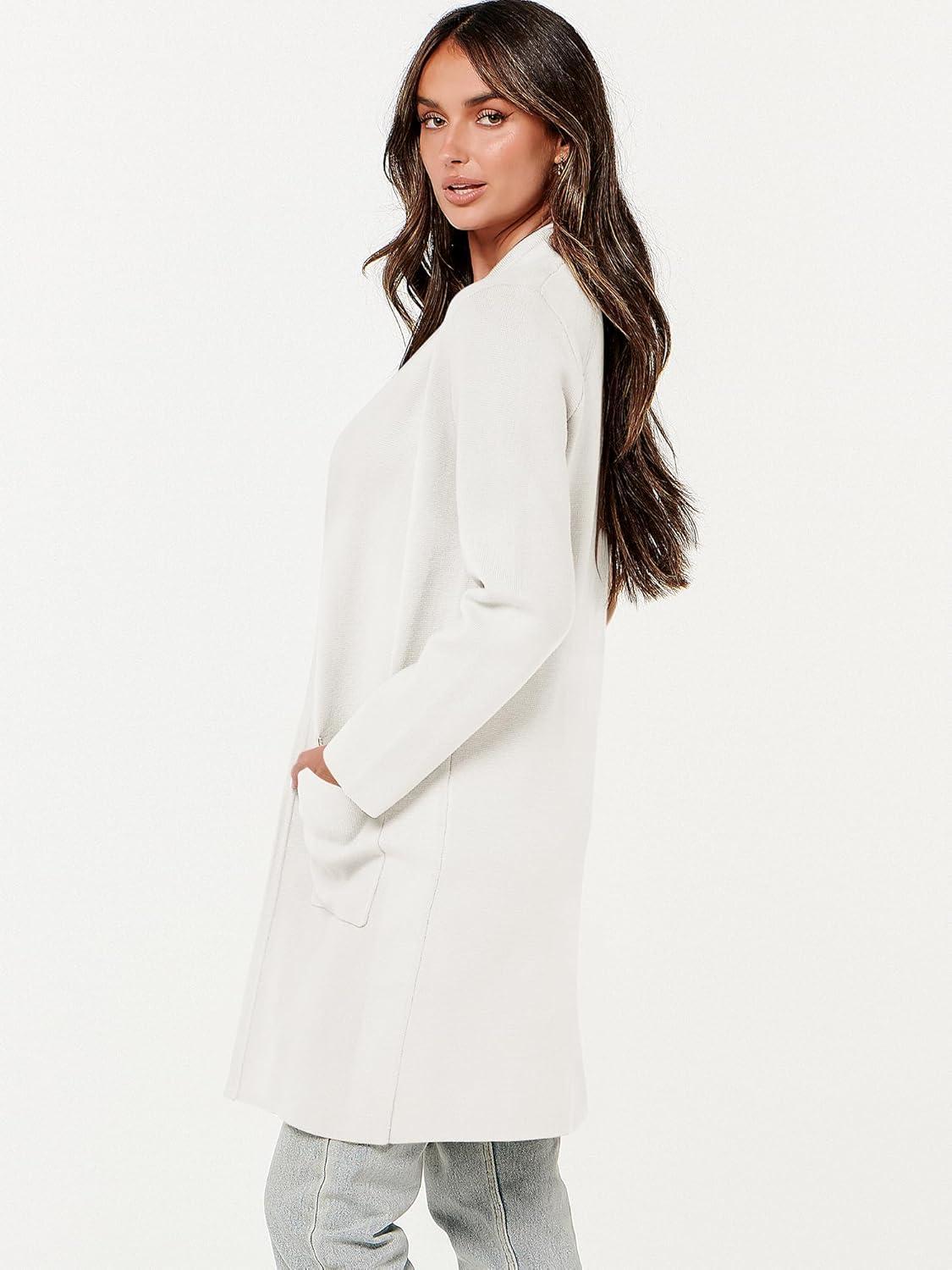 ANRABESS Cardigan Sweater for Women Casual 2025 Fall Fashion Coat Long Sleeve Open Front Knit Coatigan Outwear(Off-white)