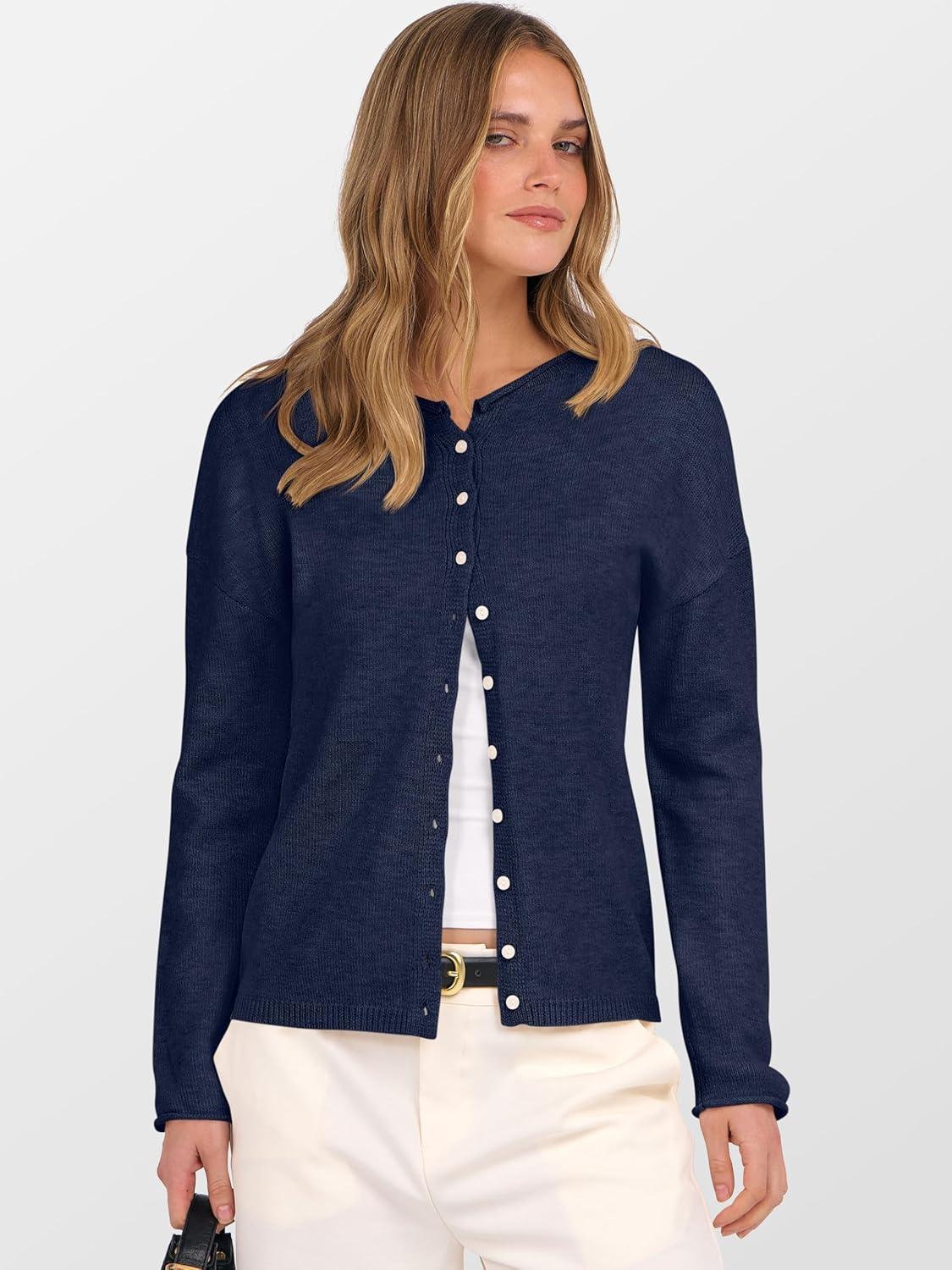 ANRABESS Cardigan Sweaters for Women Lightweight Button Down Long Sleeve Soft Y2k Trendy Casual 2025 Fall Fashion Outfits(Navy Blue)