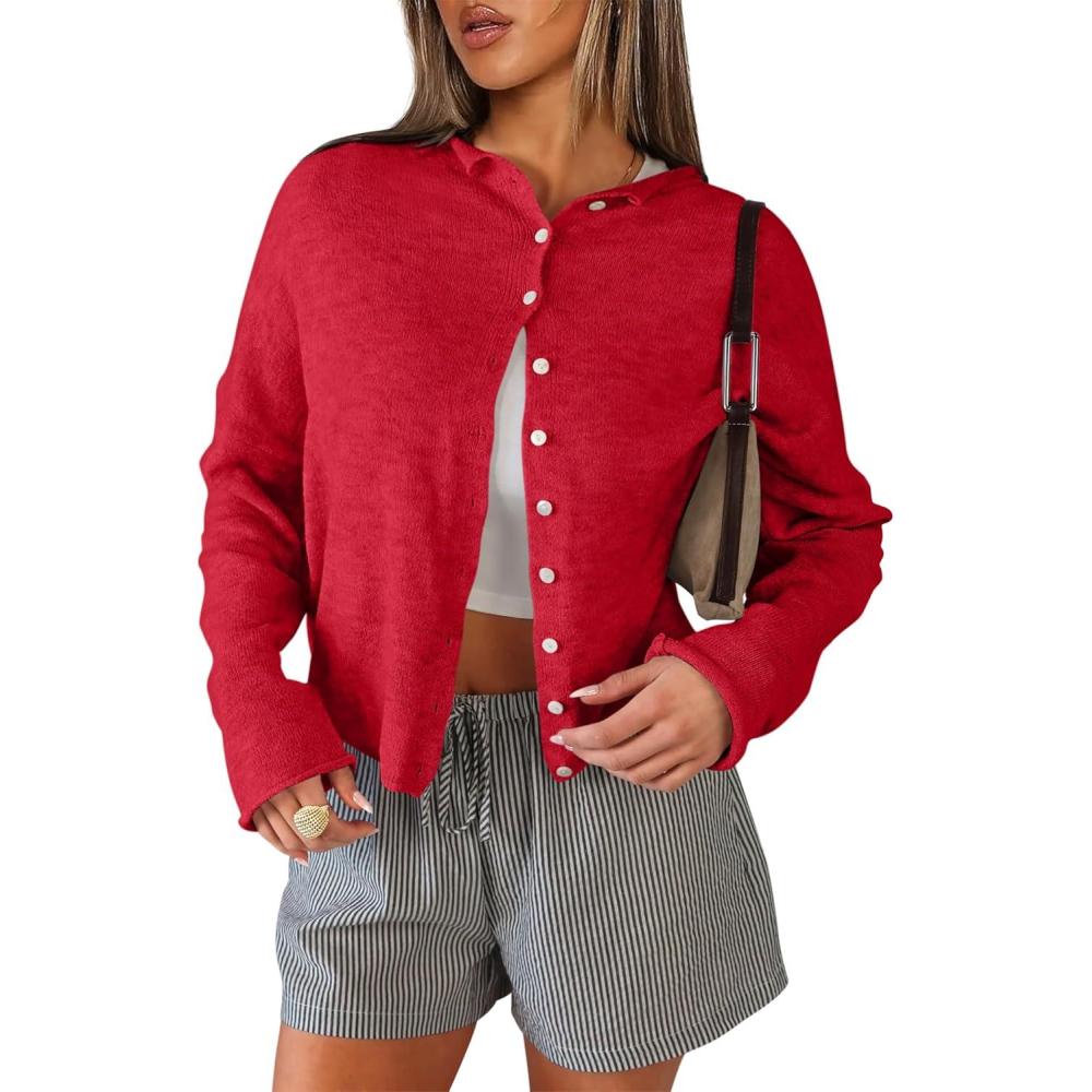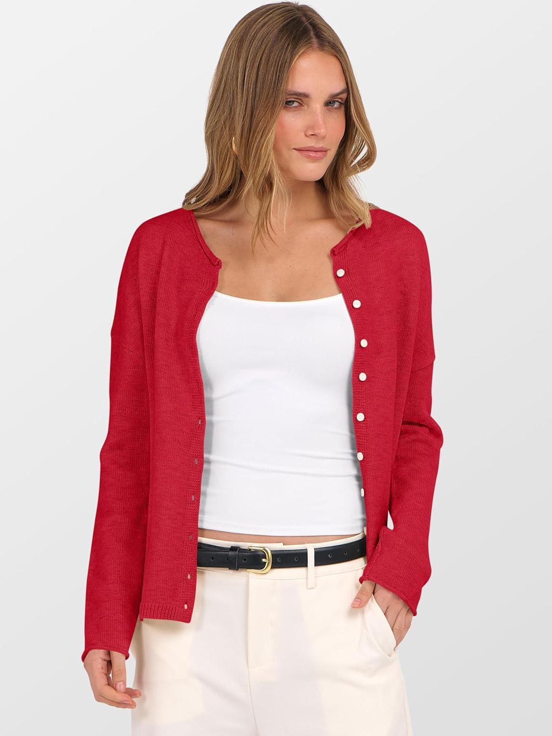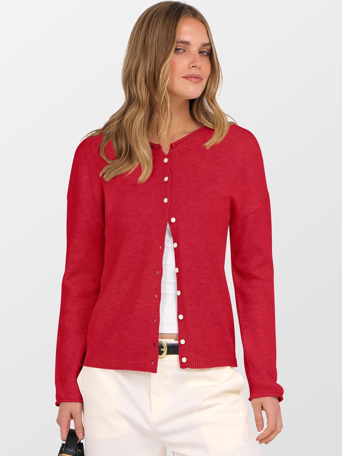 ANRABESS Cardigan Sweaters for Women Lightweight Button Down Long Sleeve Soft Y2k Trendy Casual 2025 Fall Fashion Outfits(Red)