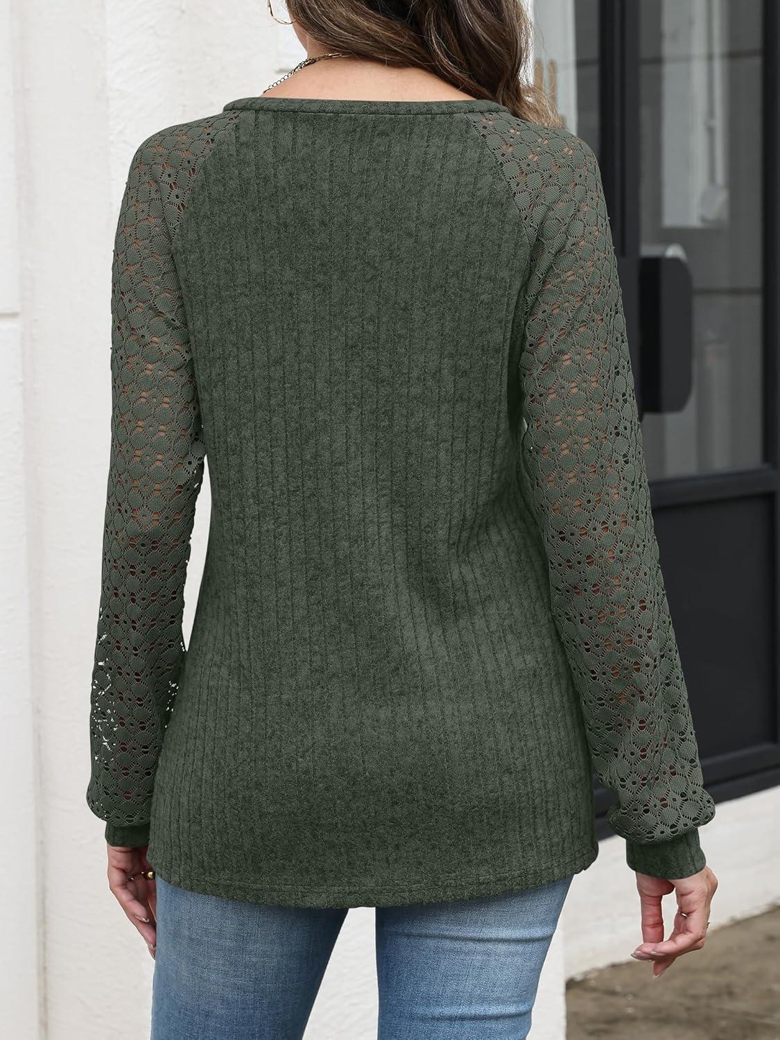 ANRABESS Lace Long Sleeve Tops for Women 2025 Fall Business Casual V Neck Shirts Work Office Trendy Blouses Fashion Outfits(Deep Green)