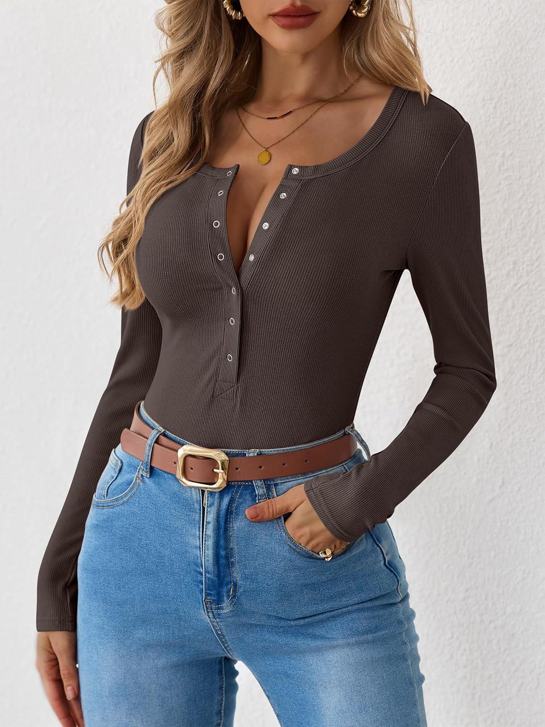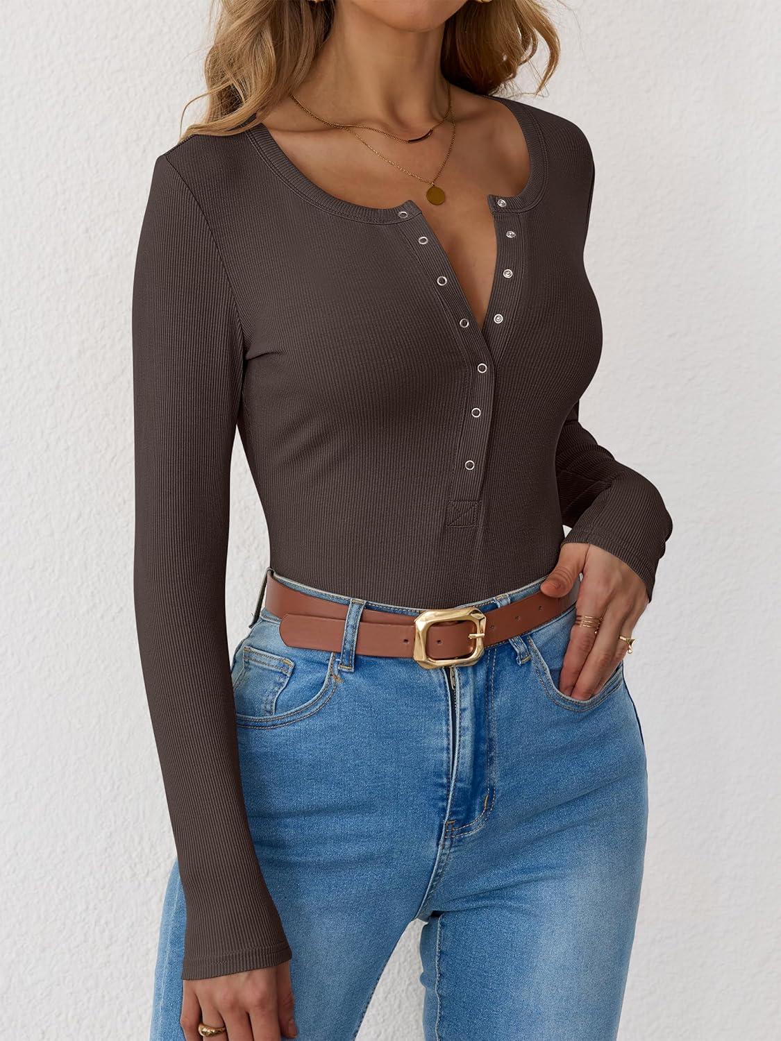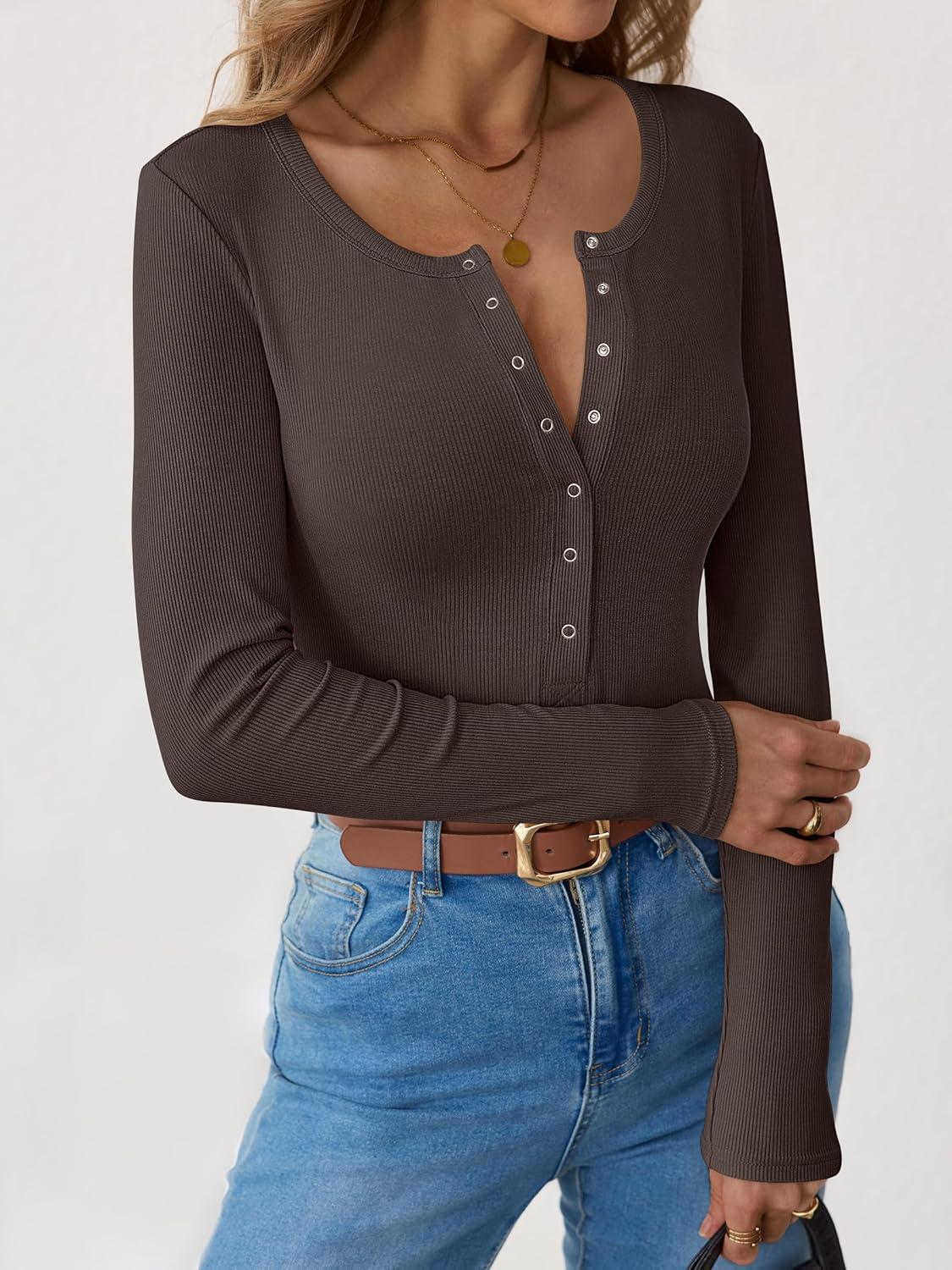 imageANRABESS Long Sleeve Shirts for Women Henley Button Down Tops Ribbed Knit Slim Fit Fall Basic Tee 2025 Casual Trendy ClothesBrown