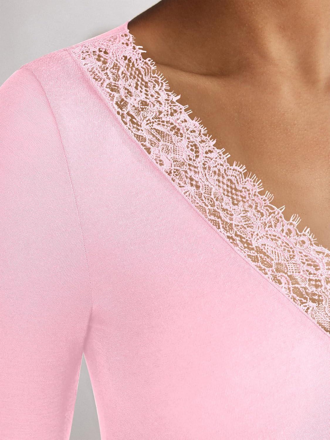 imageANRABESS Long Sleeve Shirts for Women Lace V Neck Slim Fit Basic TShirt Dressy Casual Blouses 2025 Trendy Fall Going Out TopLight Pink