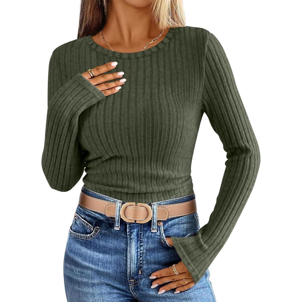 imageANRABESS Long Sleeve Shirts for Women Ribbed Knit Tshirt Slim Fit Crewneck Basic Tee Top 2025 Fall Casual Work Trendy ClothesDeep Green