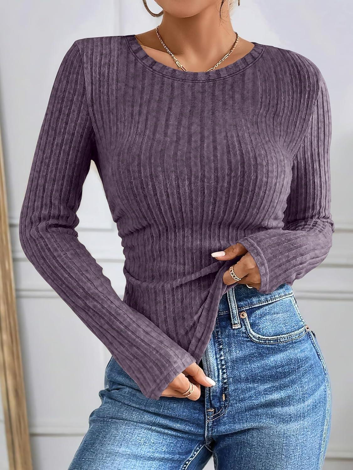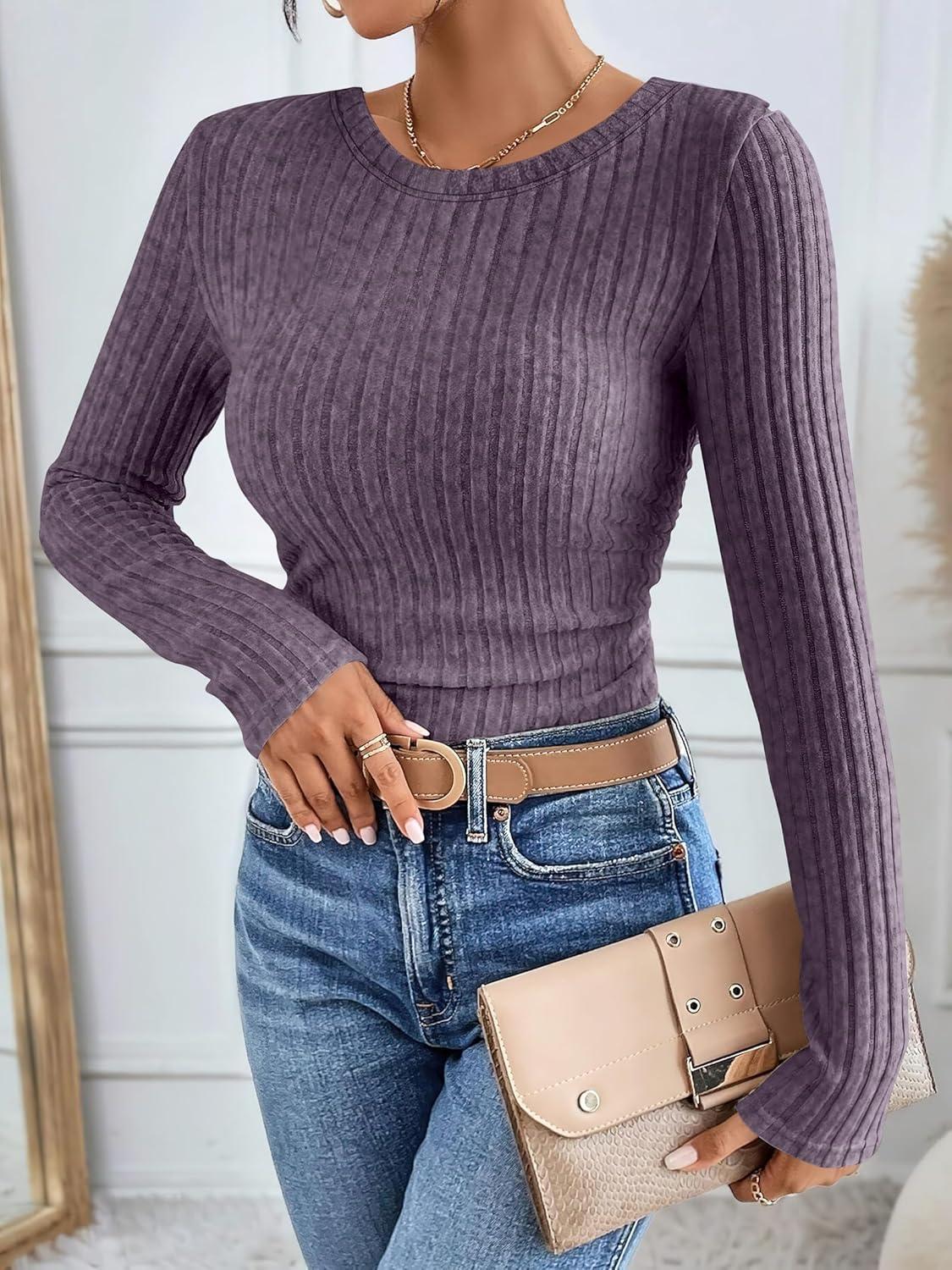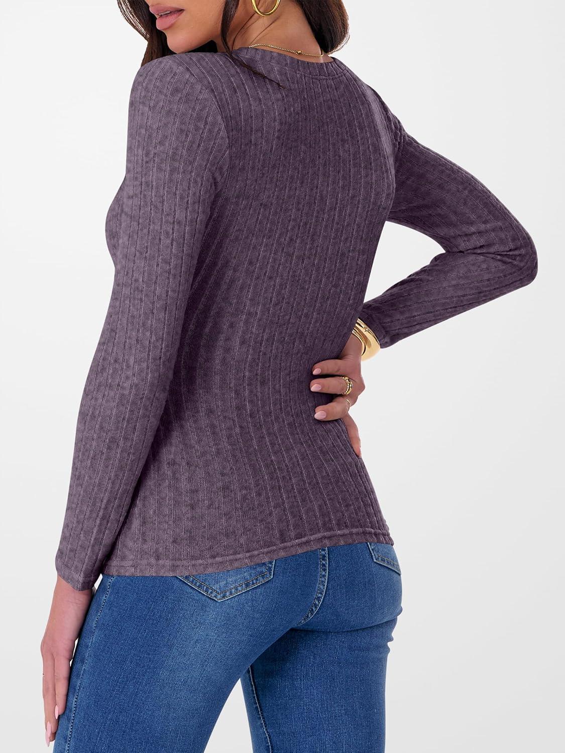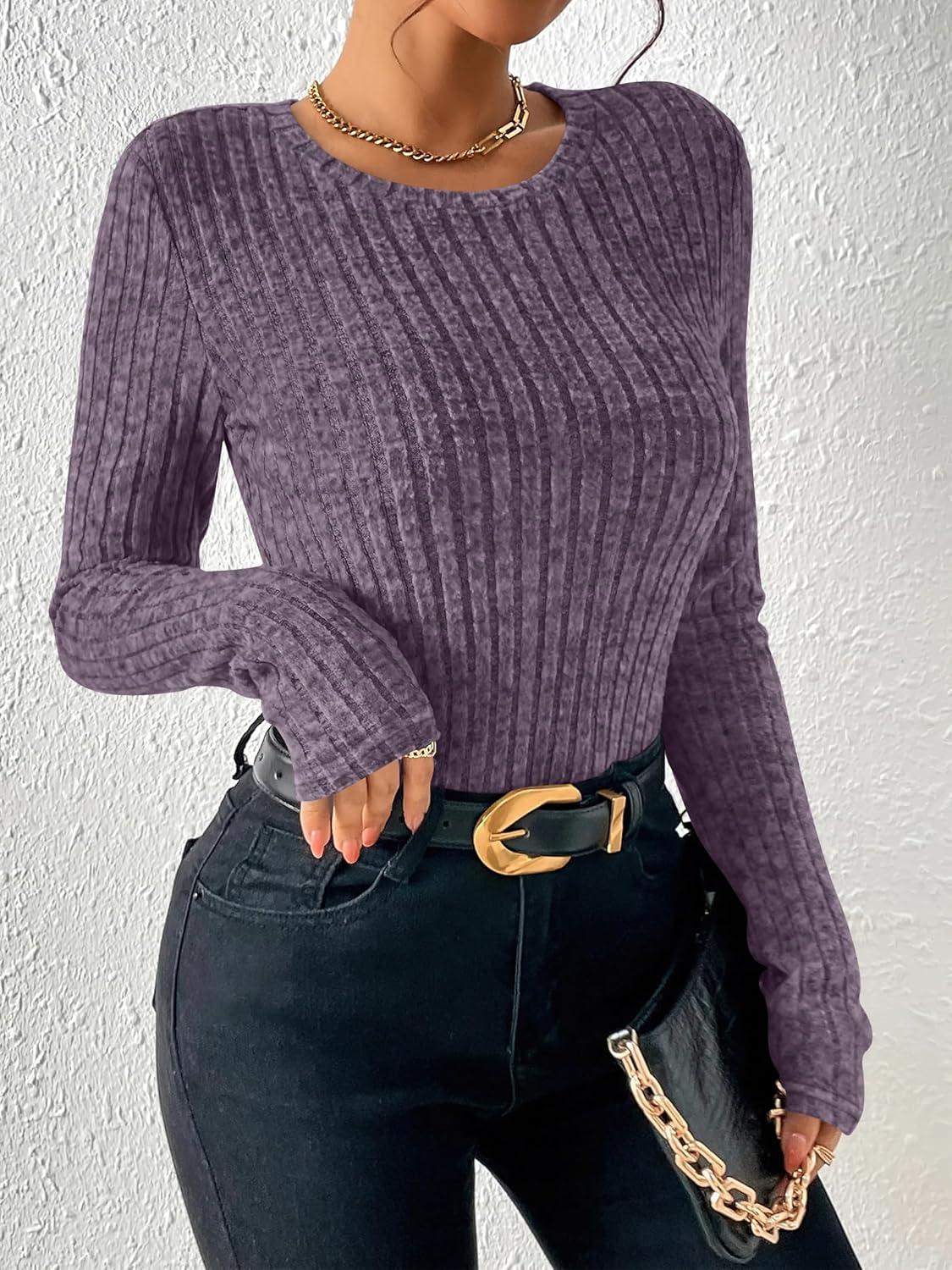 ANRABESS Long Sleeve Shirts for Women Ribbed Knit Tshirt Slim Fit Crewneck Basic Tee Top 2025 Fall Casual Work Trendy Clothes(Purple)