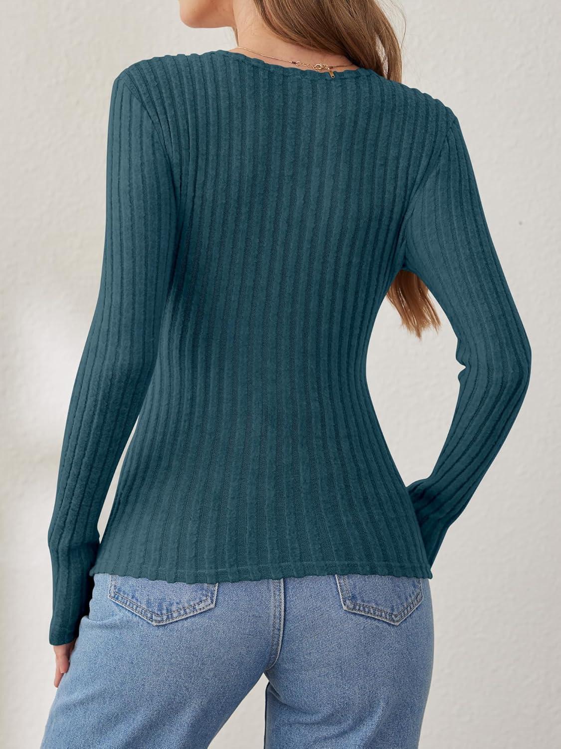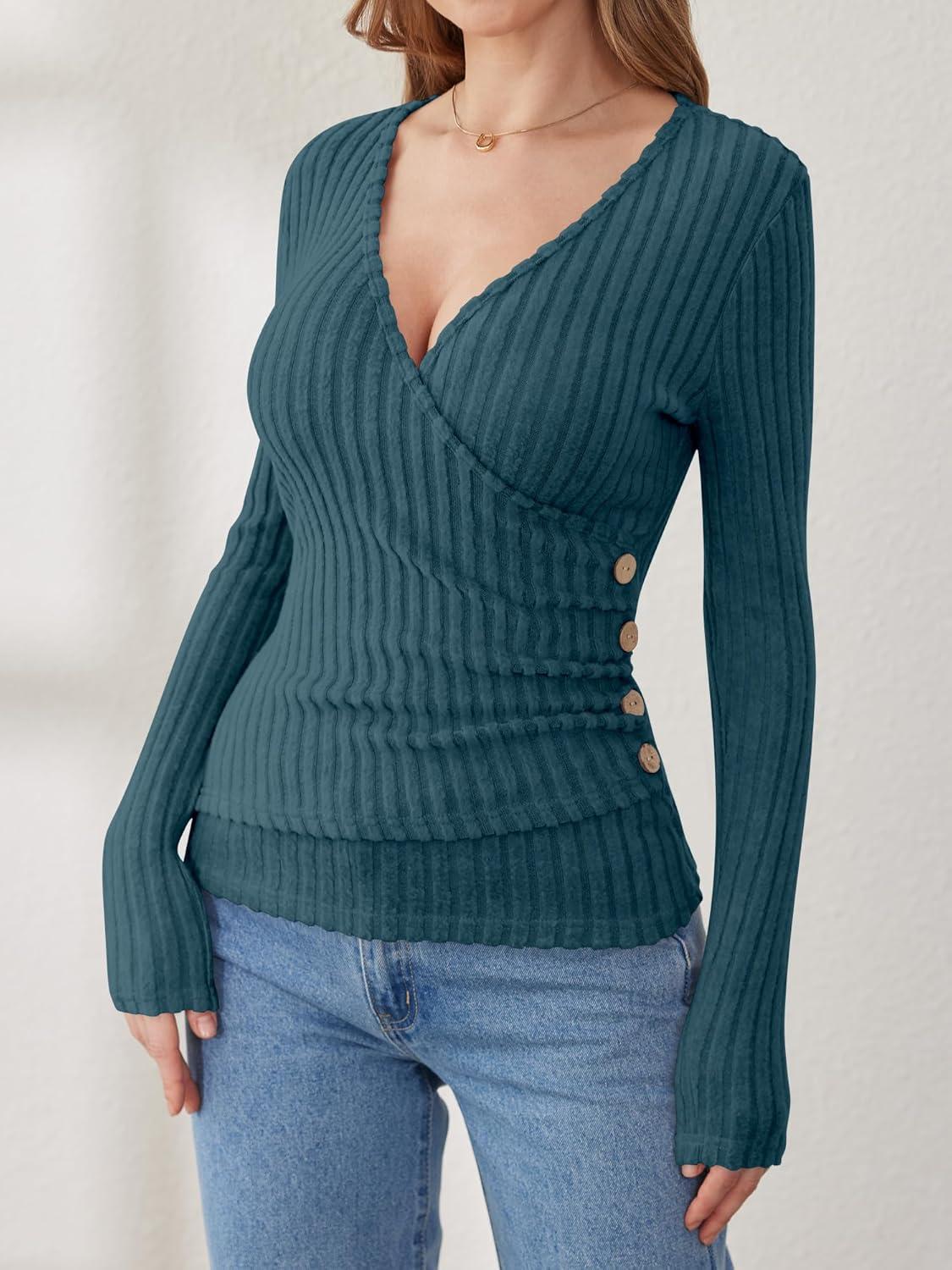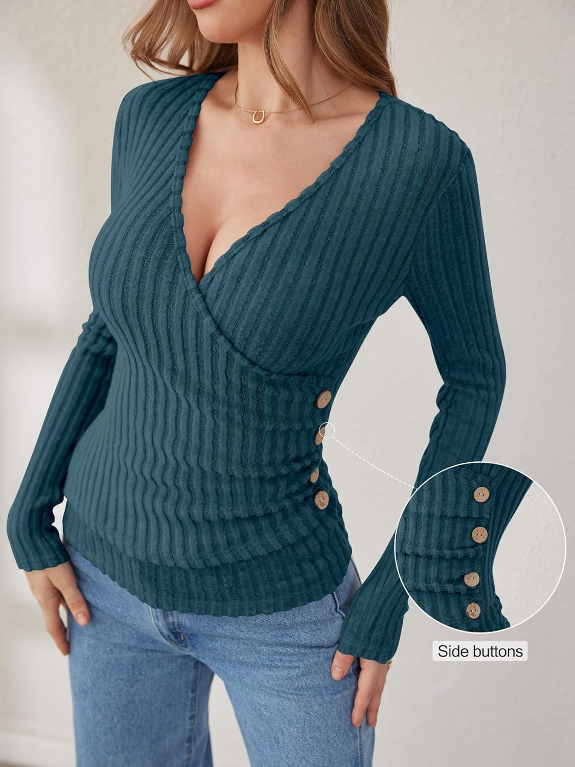 Get up to 60% off on ANRABESS Long Sleeve Shirts for Women Sexy Sweater V Neck Ribbed Knit Slim Fit Wrap Top 2025 Fall Casual Fashion Clothes(Teal) styles during our winter sale event.