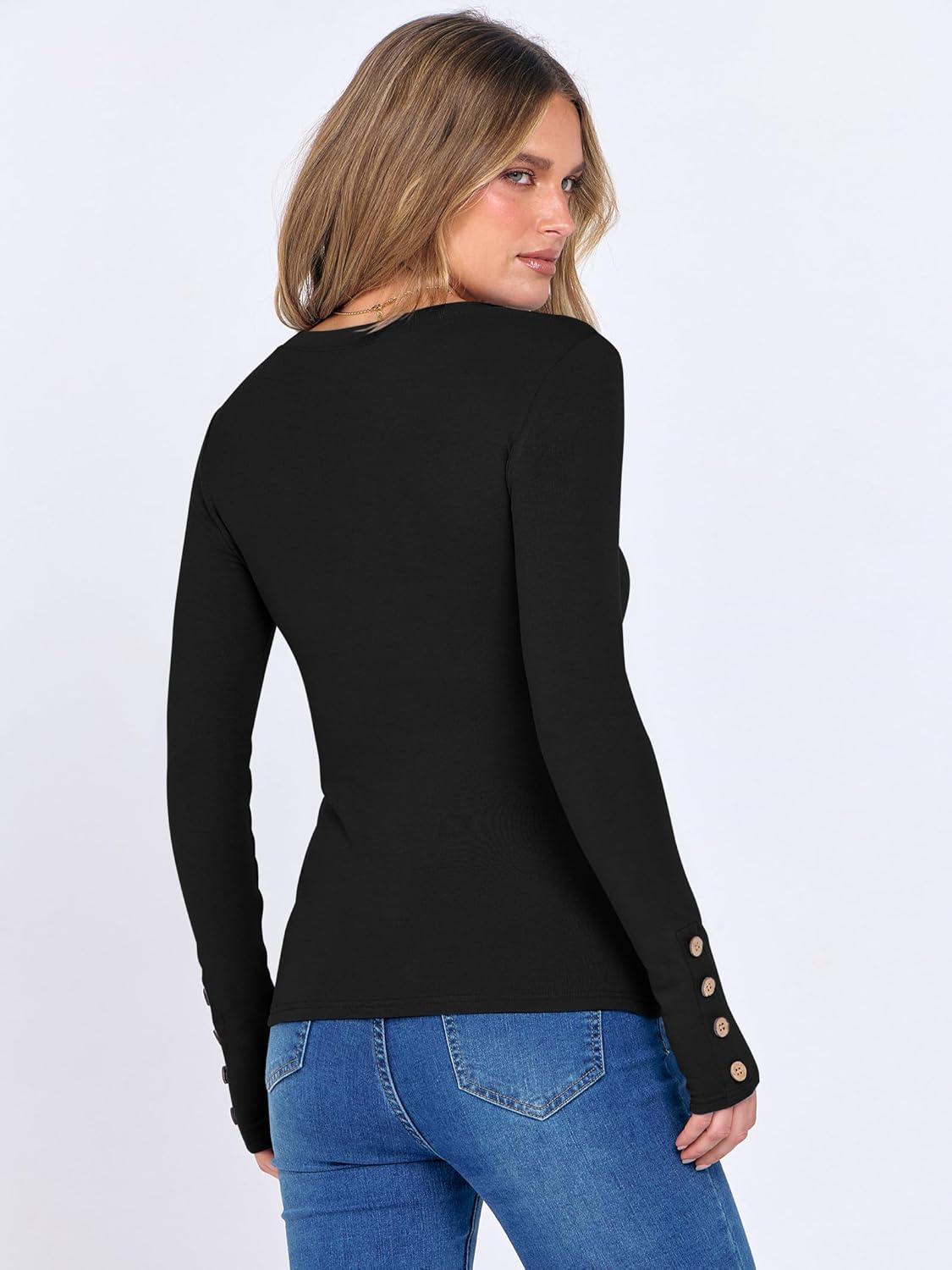 ANRABESS Long Sleeve Shirts for Women Thermal Crewneck Basic Fleece Top Casual T-Shirts 2025 Fall Winter Warm Undershirts(Black)
