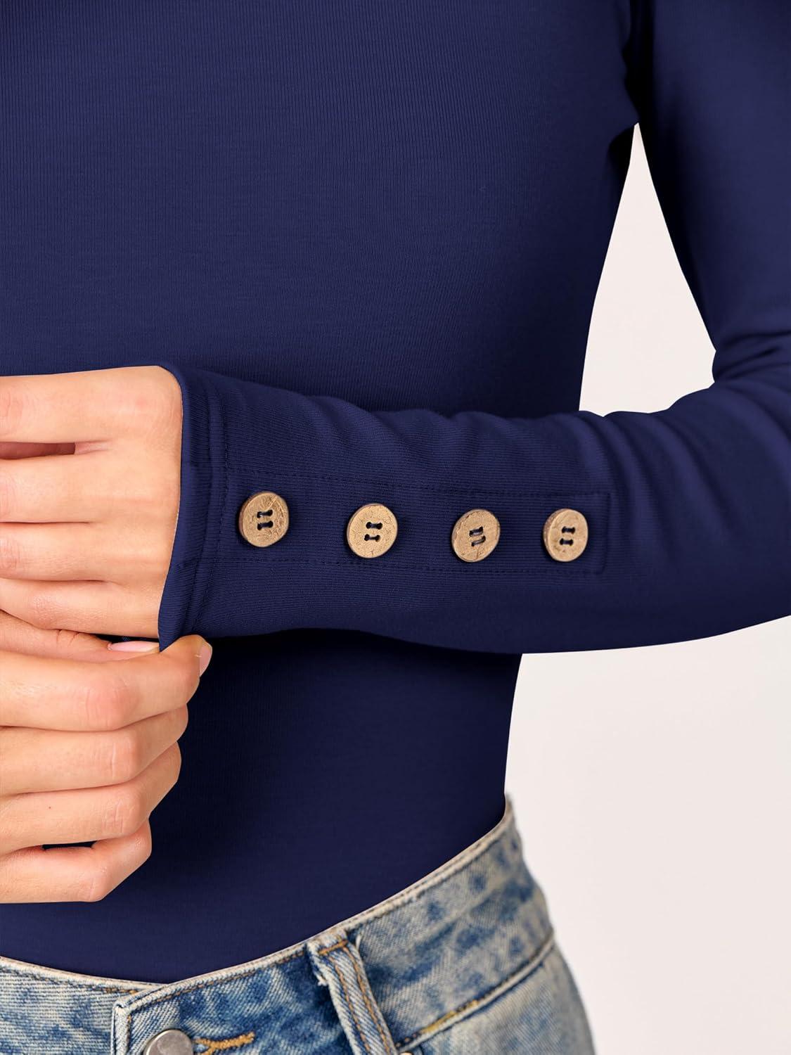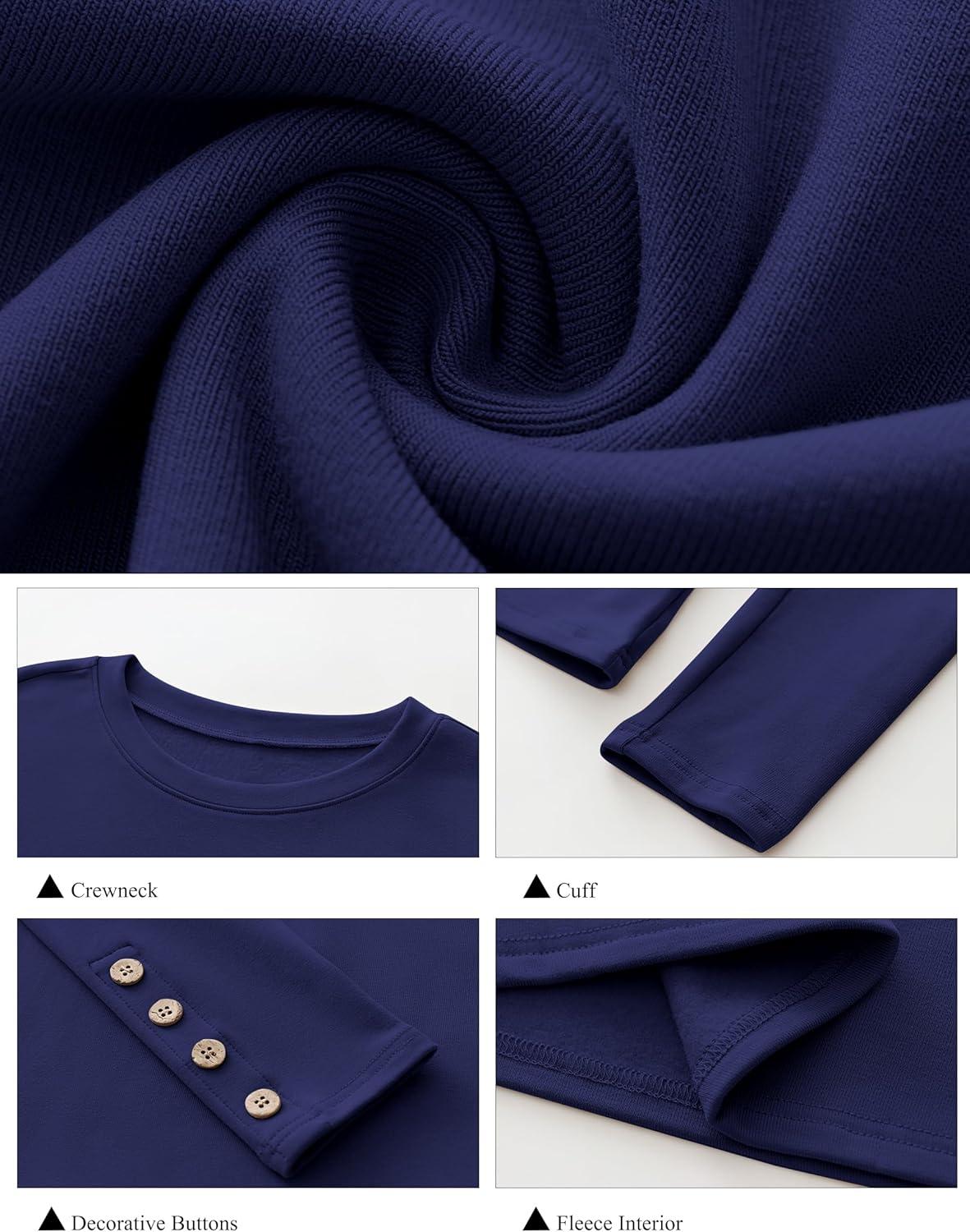 ANRABESS Long Sleeve Shirts for Women Thermal Crewneck Basic Fleece Top Casual T-Shirts 2025 Fall Winter Warm Undershirts(Navy Blue)