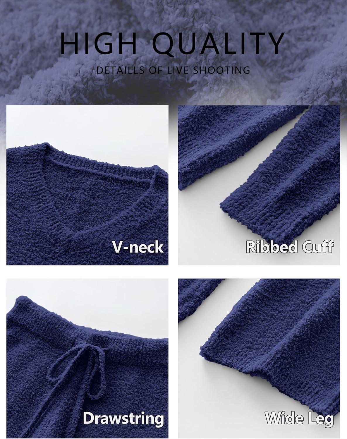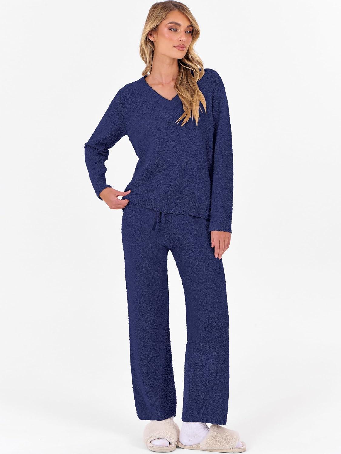 ANRABESS Lounge Sets for Women Fuzzy Fleece Pajama Sets 2 Piece Outfits Cozy Sweater Matching Set 2025 Fall Winter Loungewear(Navy Blue)