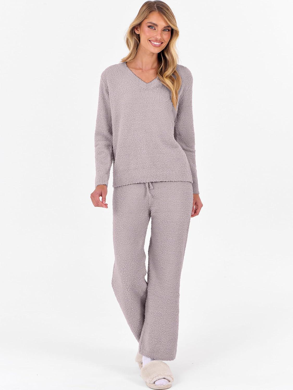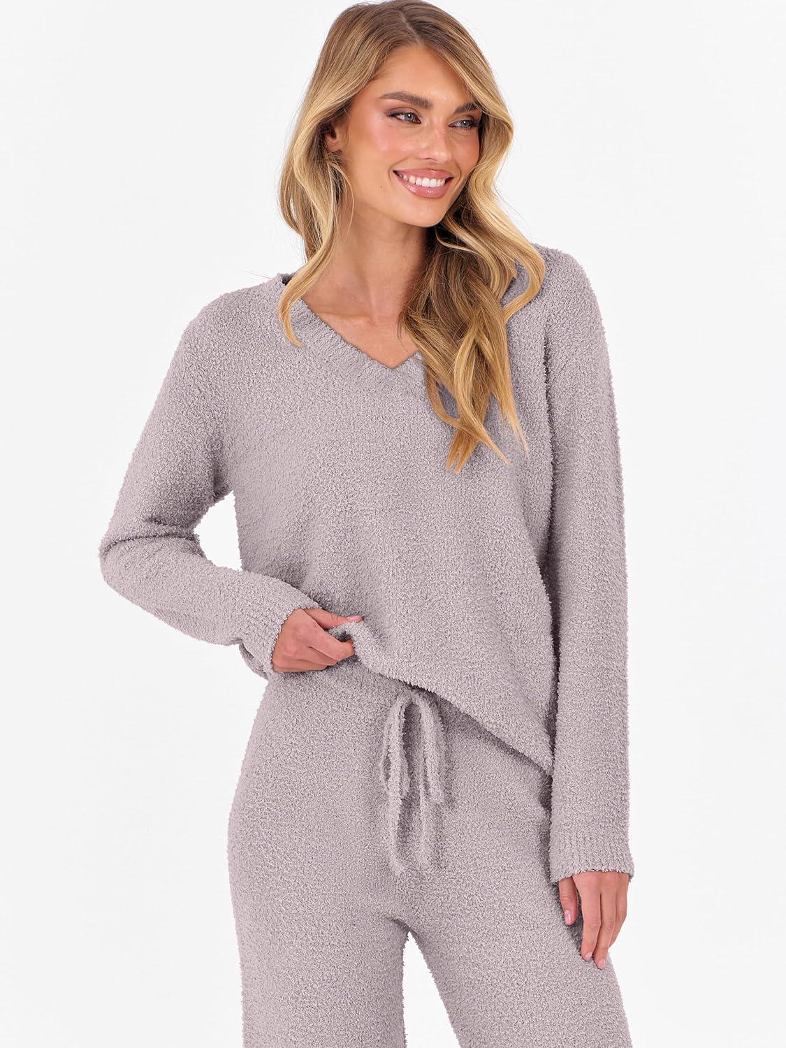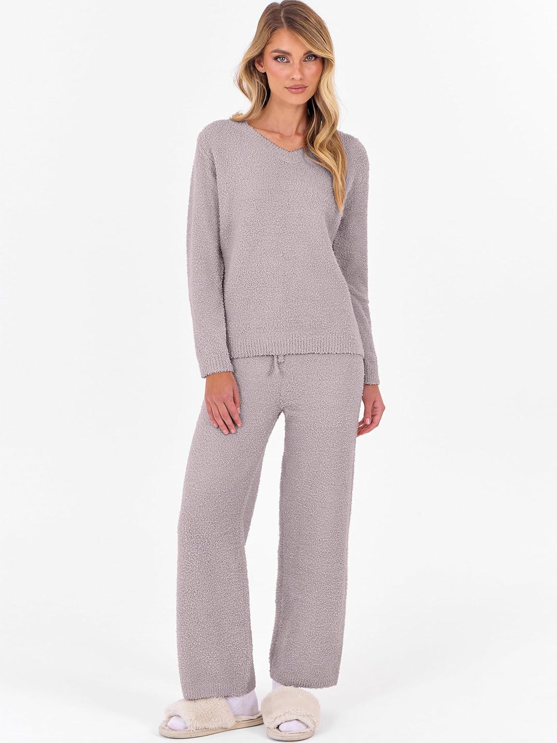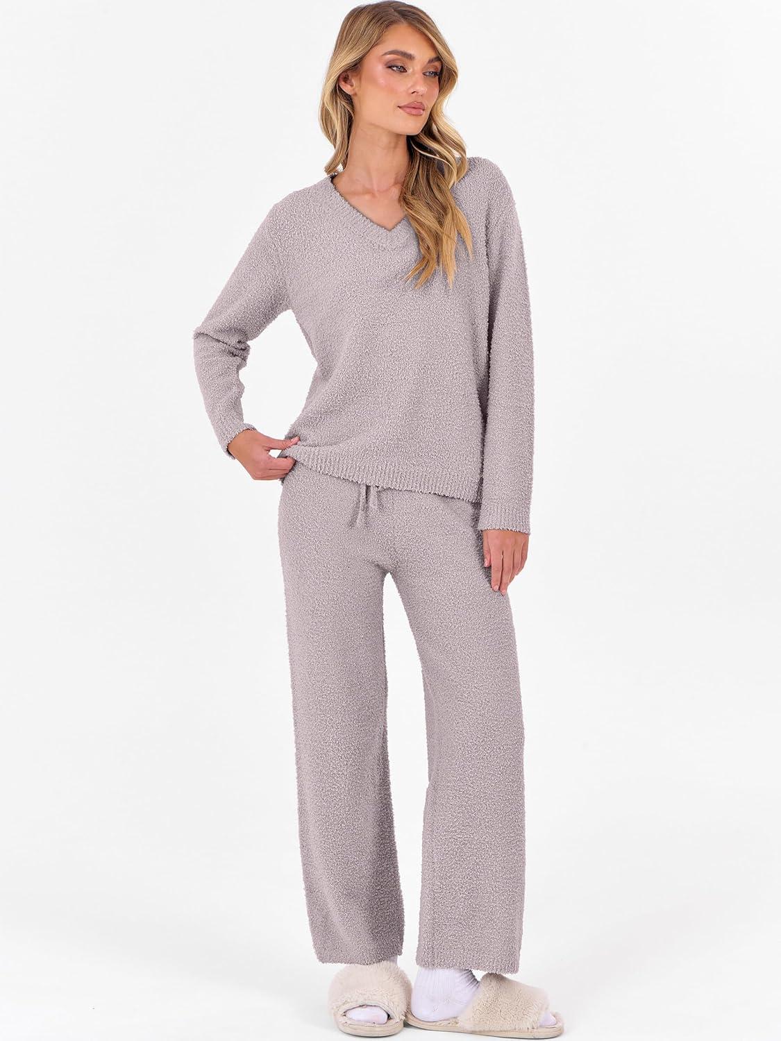 ANRABESS Lounge Sets for Women Fuzzy Fleece Pajama Sets 2 Piece Outfits Cozy Sweater Matching Set 2025 Fall Winter Loungewear(Silver Grey)