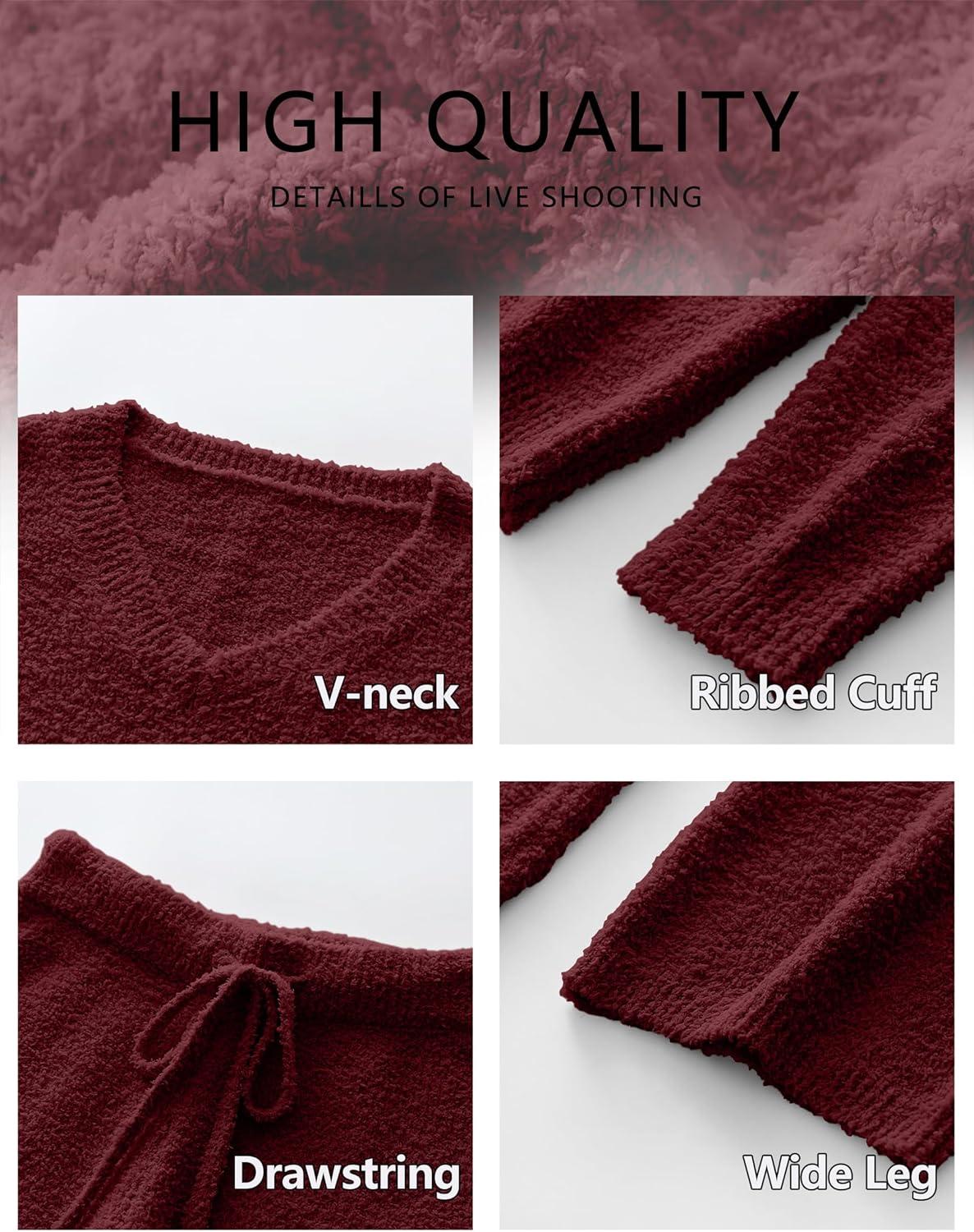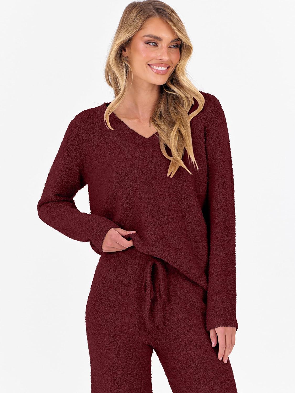 imageANRABESS Lounge Sets for Women Fuzzy Fleece Pajama Sets 2 Piece Outfits Cozy Sweater Matching Set 2025 Fall Winter LoungewearWine Red