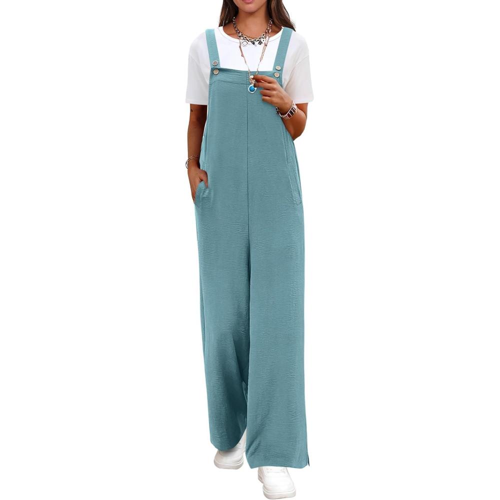 ANRABESS Overalls for Women 2026 Summer Casual Loose One Piece Outfits Baggy Wide Leg Jumpers Lightweight Comfy Rompers(Lake)