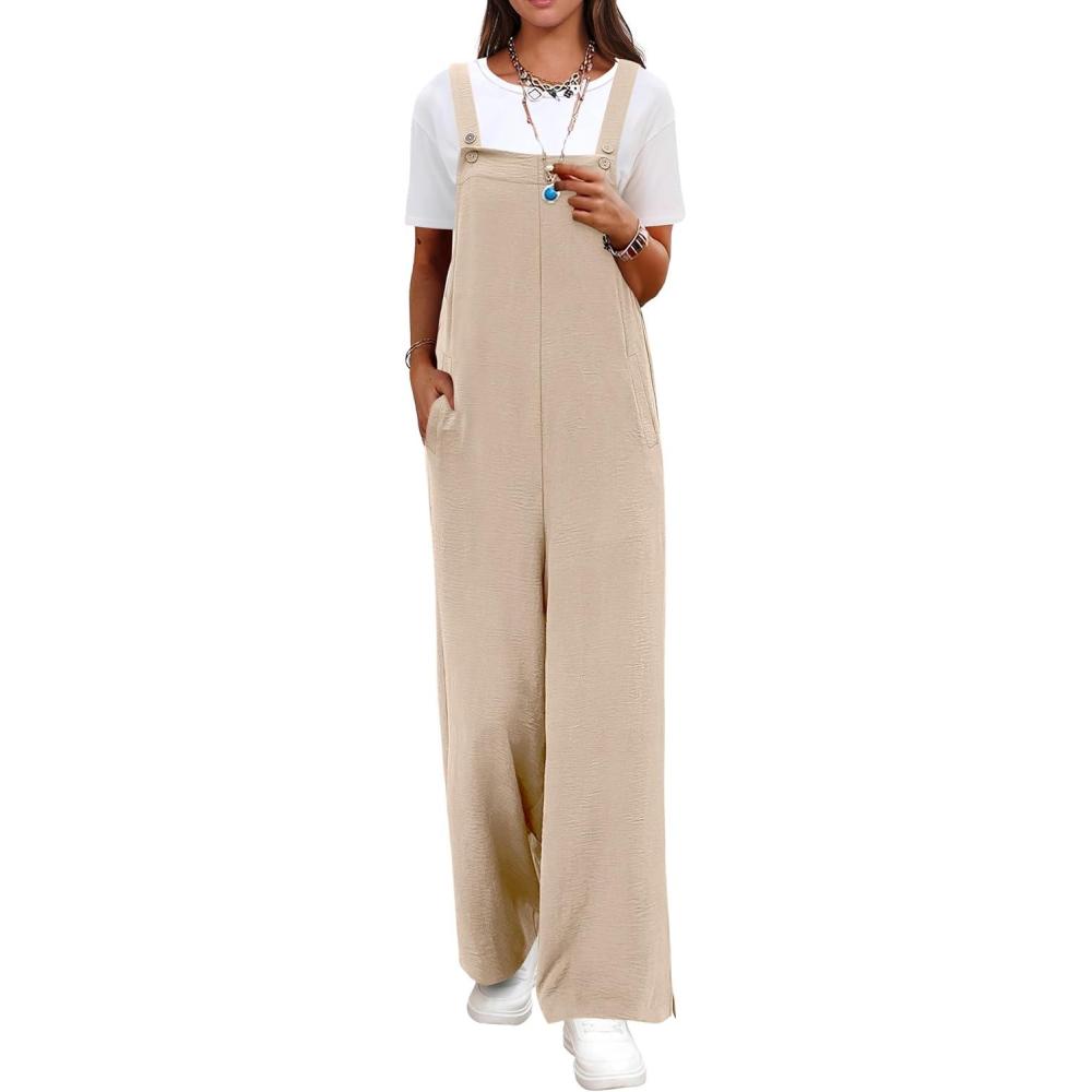 ANRABESS Overalls for Women 2026 Summer Casual Loose One Piece Outfits Baggy Wide Leg Jumpers Lightweight Comfy Rompers(Light Khaki)