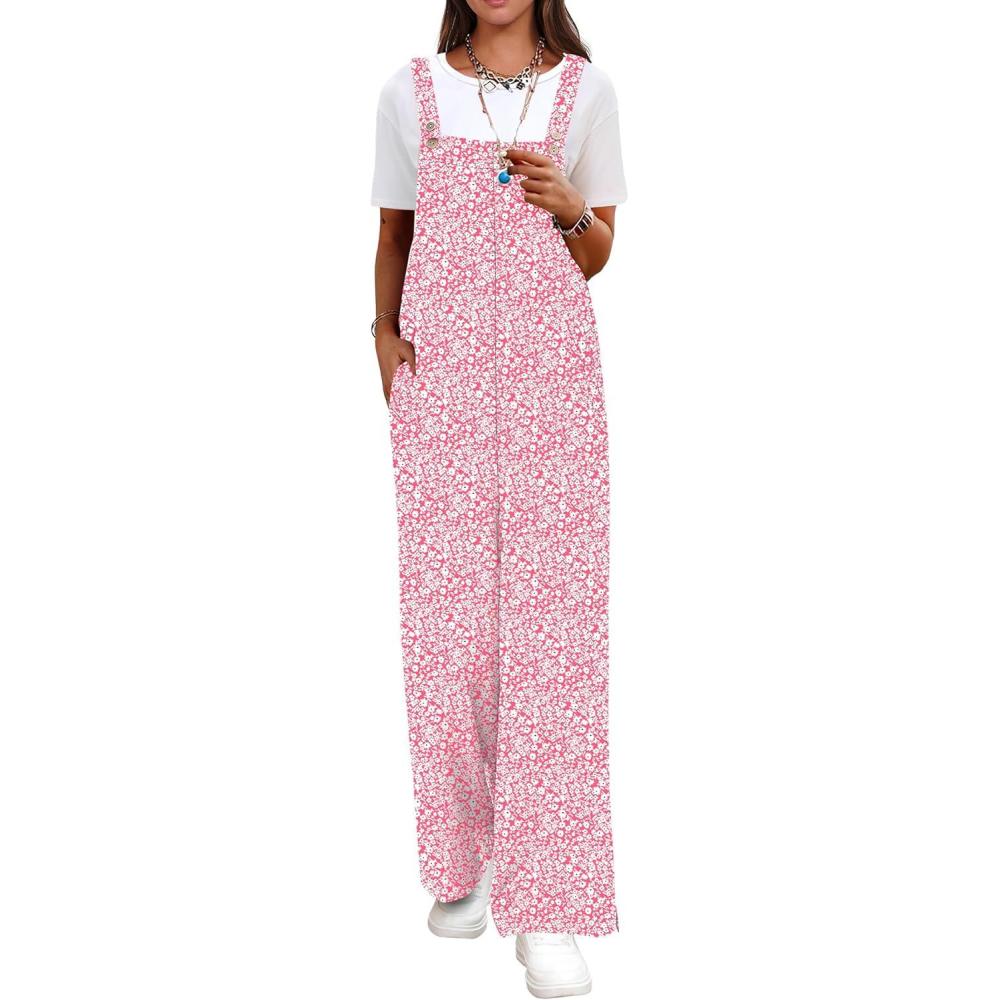 ANRABESS Overalls for Women 2026 Summer Casual Loose One Piece Outfits Baggy Wide Leg Jumpers Lightweight Comfy Rompers(Pink White Floral)