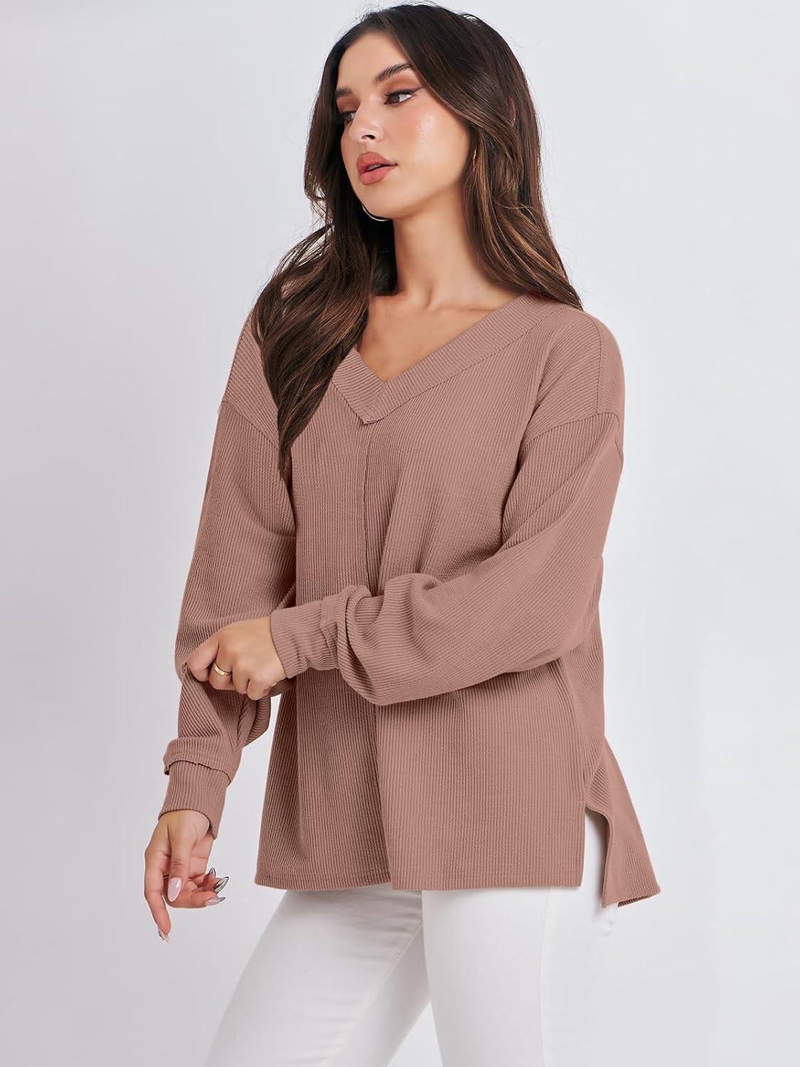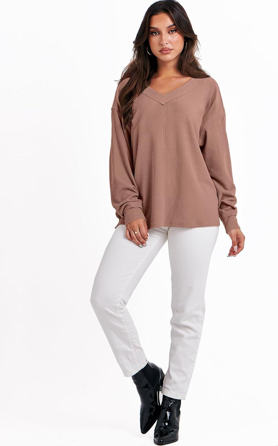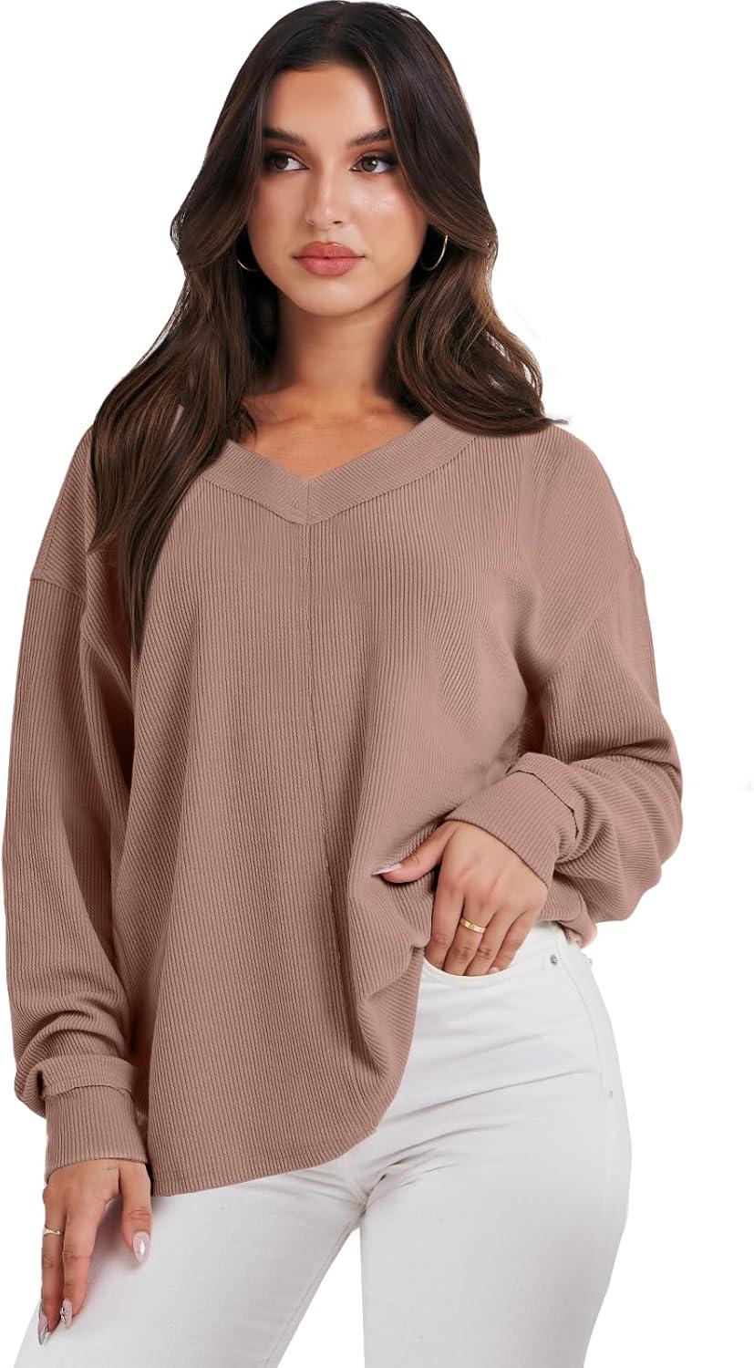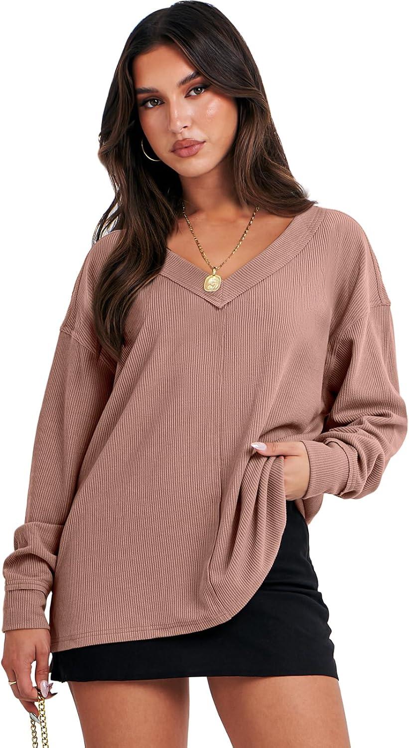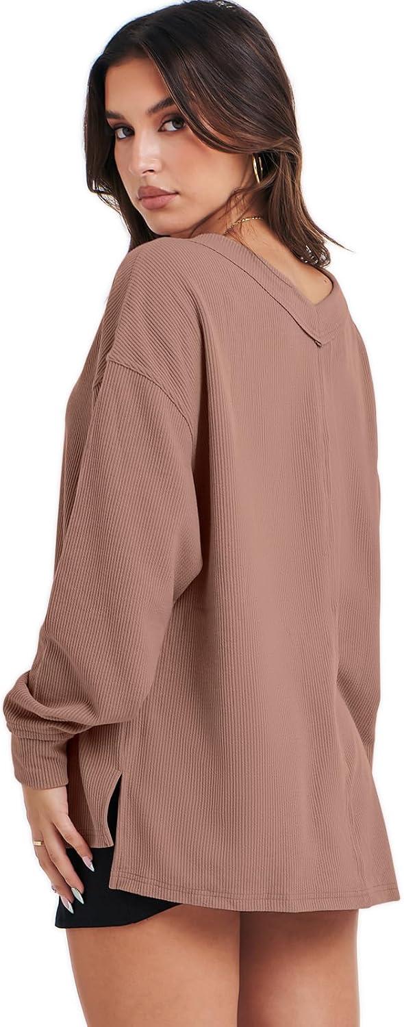 Be the first to review “ANRABESS Oversized Long Sleeve Shirts for Women Off the Shoulder Sweatshirt Loose V Neck Tunic Tops High Low Sweater 2025(Deep Apricot)”