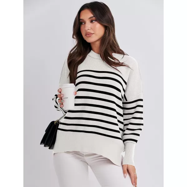 ANRABESS Oversized Sweaters for Women Fall 2023 Crewneck Batwing Long Sleeve Side Slit Knit Pullover Sweater Tops Jumper(Stripe Black)