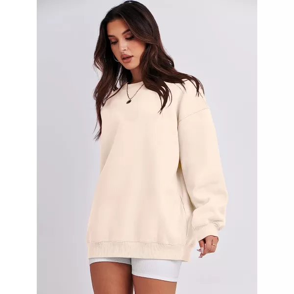 ANRABESS Oversized Sweatshirt for Women Fleece Long Sleeve Crewneck Casual Pullover Top Fall 2023 Trendy Clothes(Apricot)