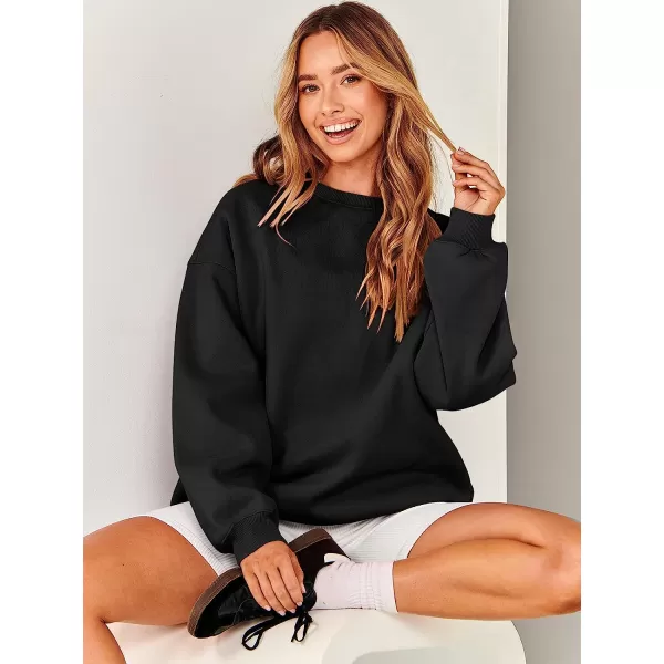 ANRABESS Oversized Sweatshirt for Women Fleece Long Sleeve Crewneck Casual Pullover Top Fall 2023 Trendy Clothes(Black)