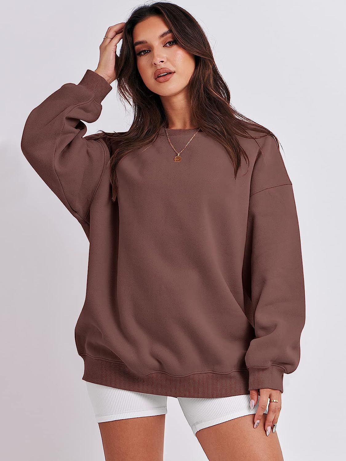 imageANRABESS Oversized Sweatshirt for Women Fleece Long Sleeve Crewneck Casual Pullover Top Fall 2023 Trendy ClothesCoffee