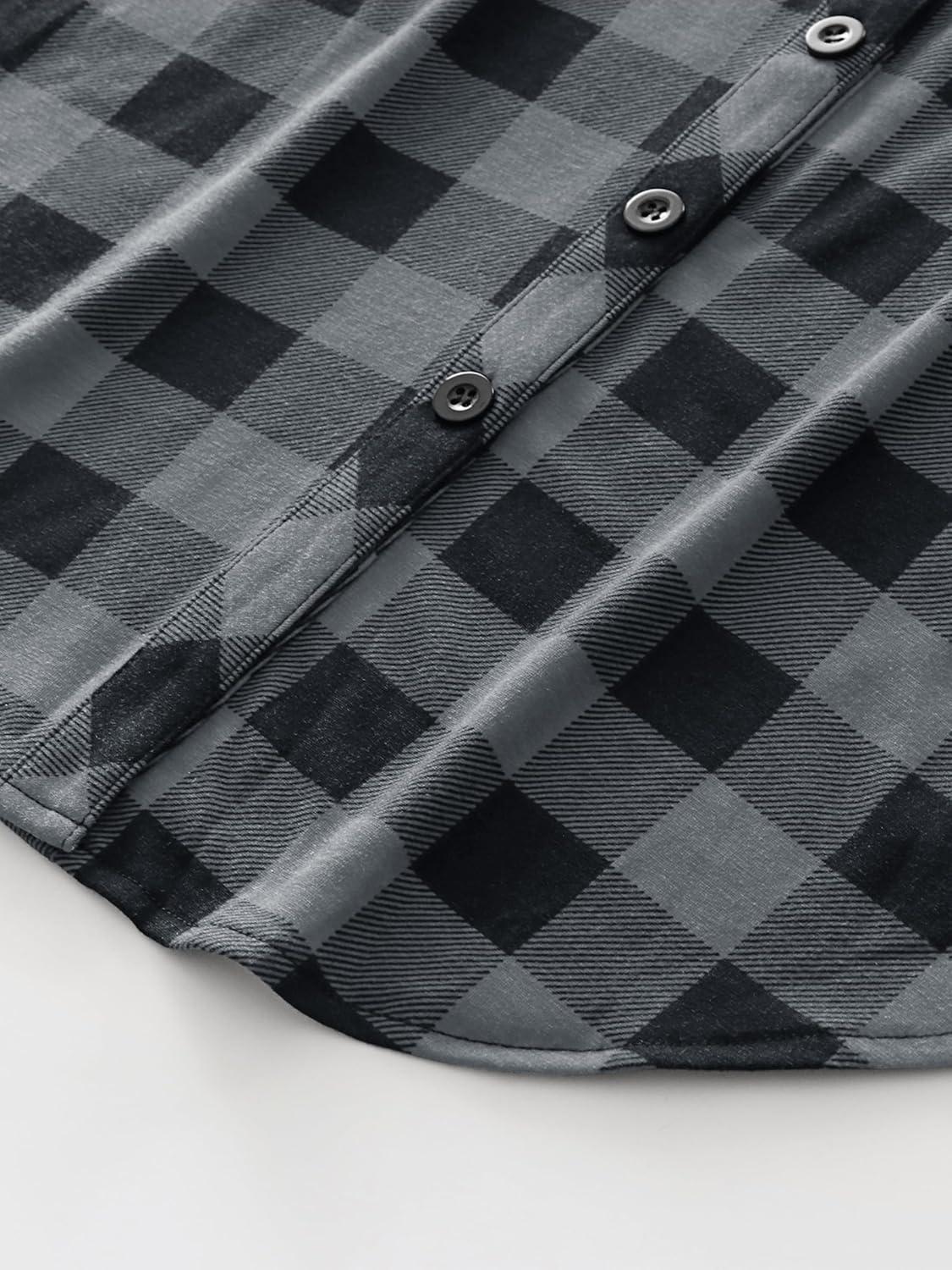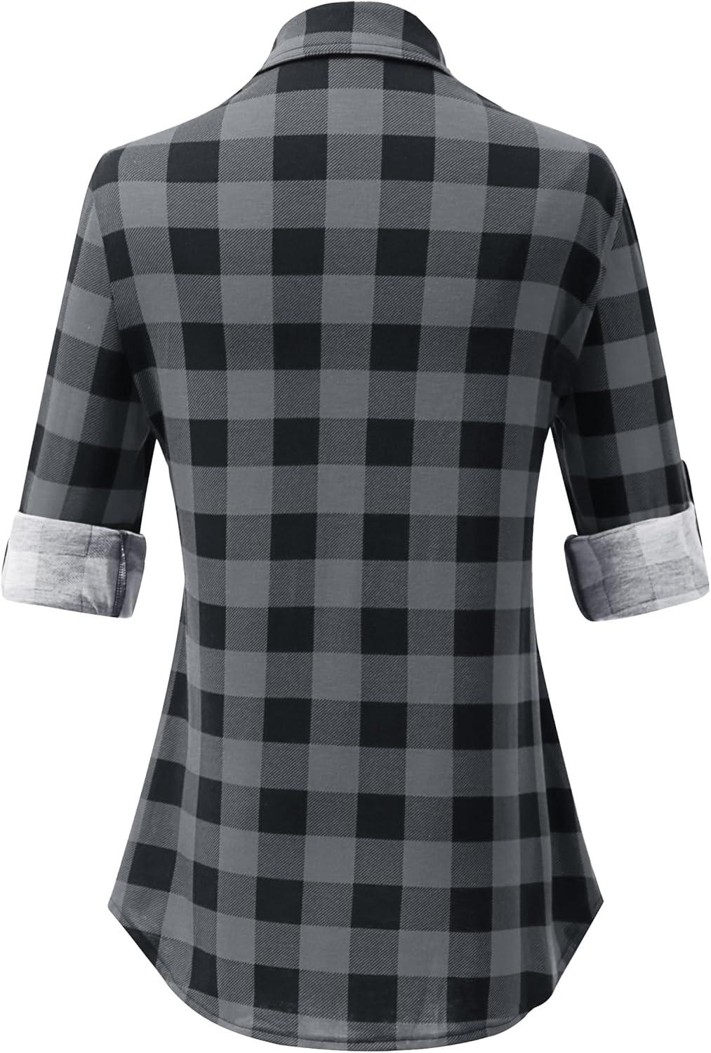 ANRABESS Plaid Button Down Shirts for Women Long Sleeve Roll Up Checkered Blouse Tops 2025 Fall Outfits(Black Plaid)