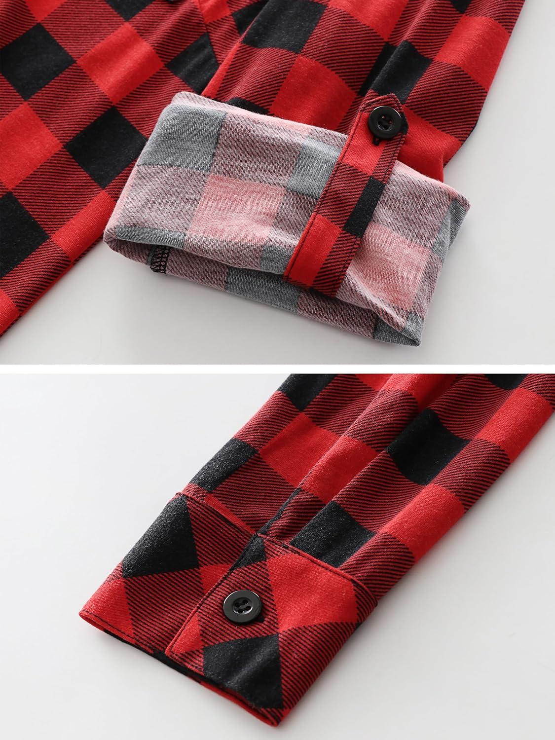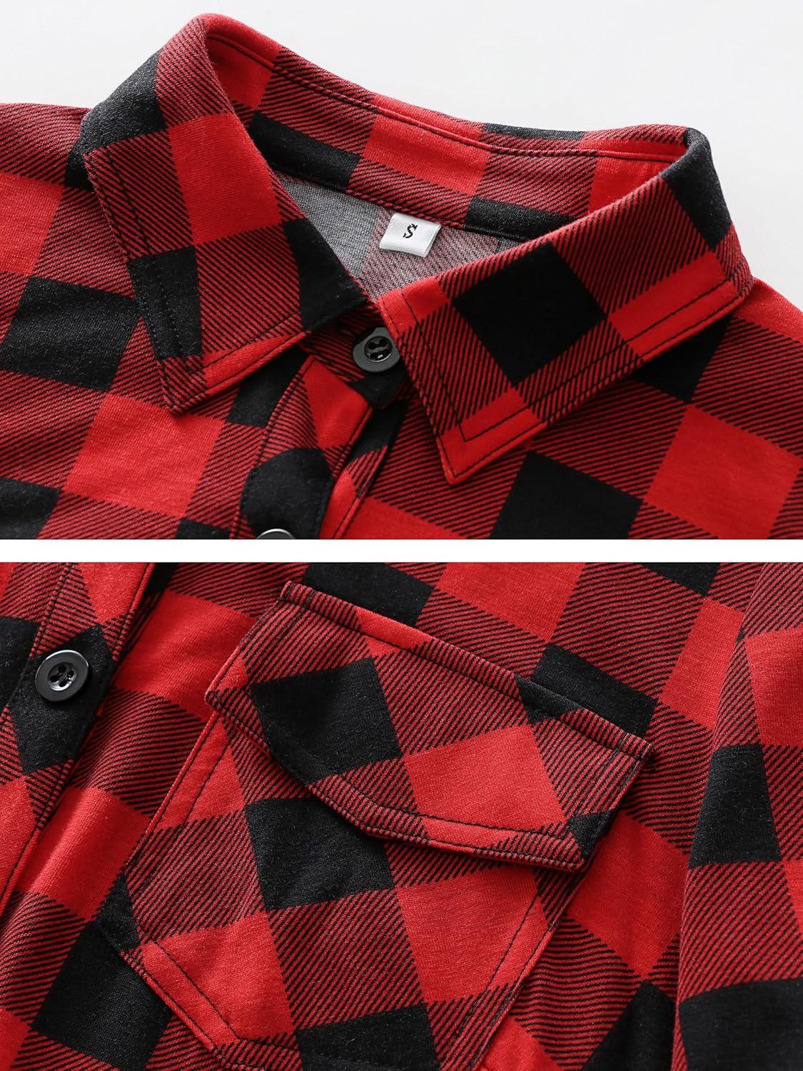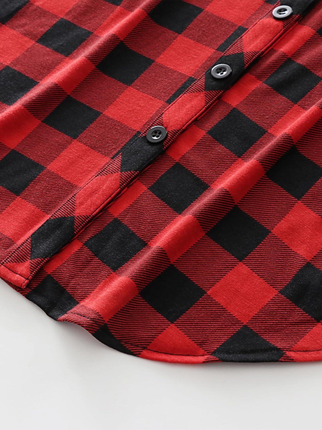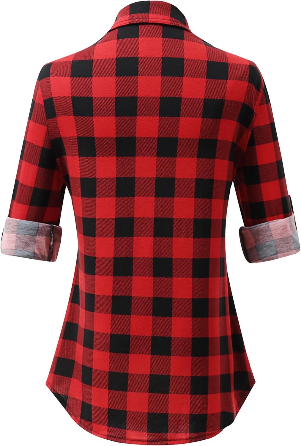 ANRABESS Plaid Button Down Shirts for Women Long Sleeve Roll Up Checkered Blouse Tops 2025 Fall Outfits(Red Plaid)
