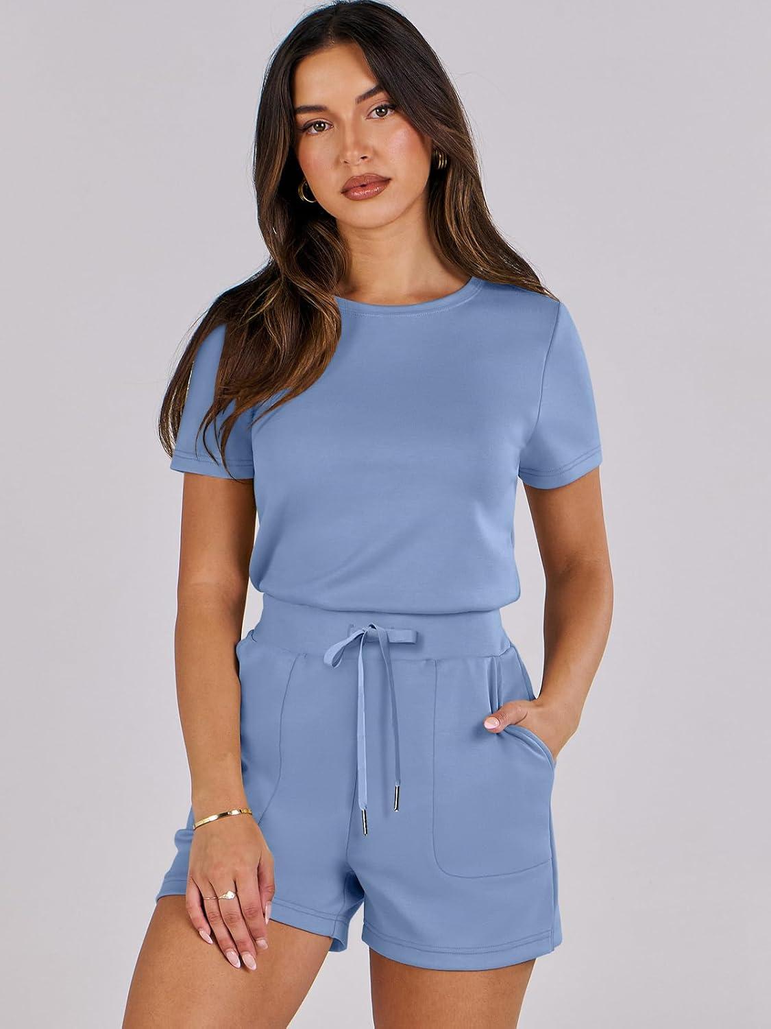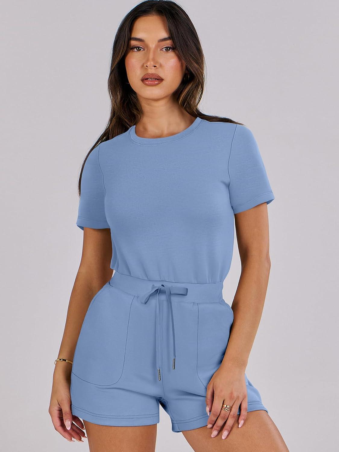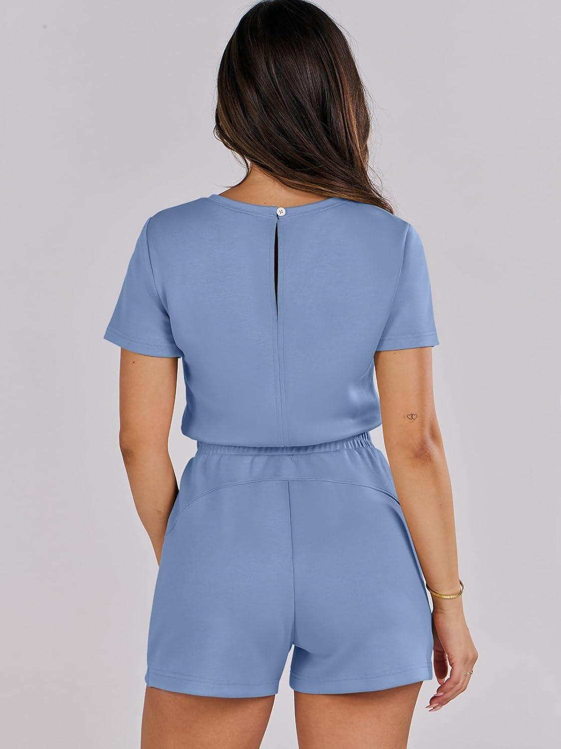 ANRABESS Romper for Women Short Sleeve Summer Tshirt One Piece Jumpsuit Beach Vacation Travel Outfits 2025 Dressy Clothes(Blue)