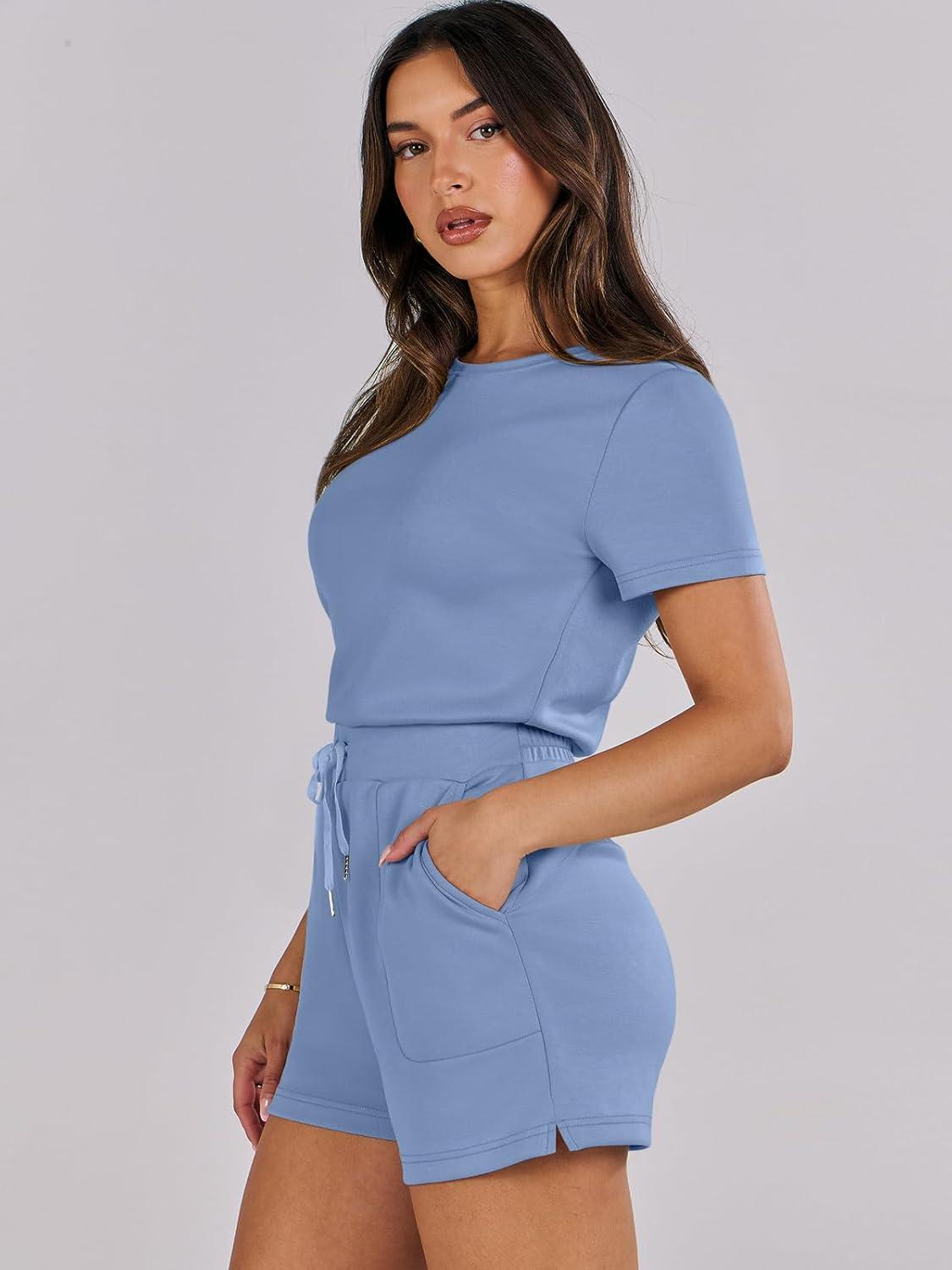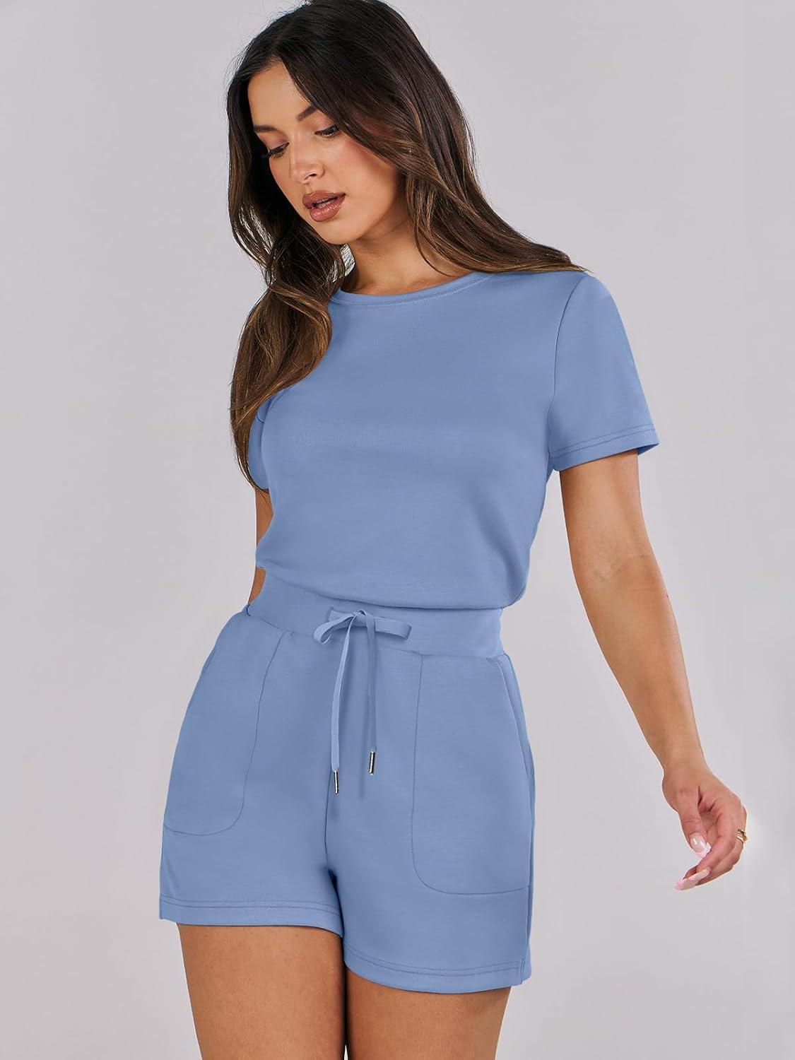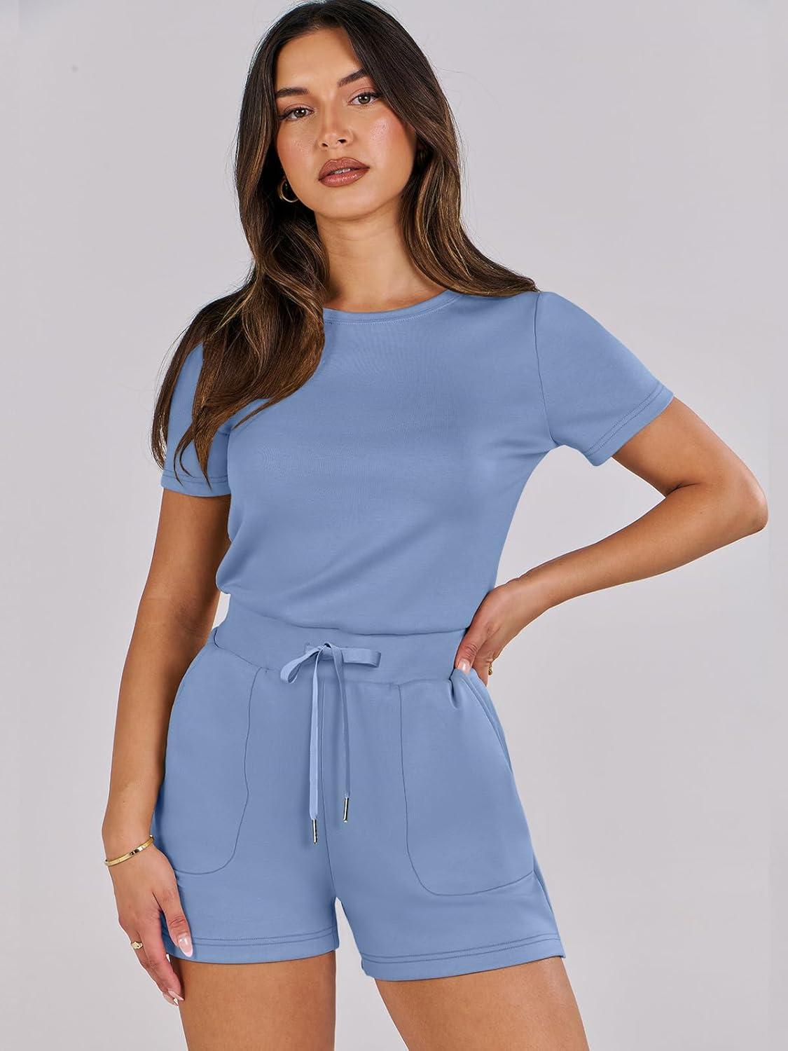 ANRABESS Romper for Women Short Sleeve Summer Tshirt One Piece Jumpsuit Beach Vacation Travel Outfits 2025 Dressy Clothes(Blue)