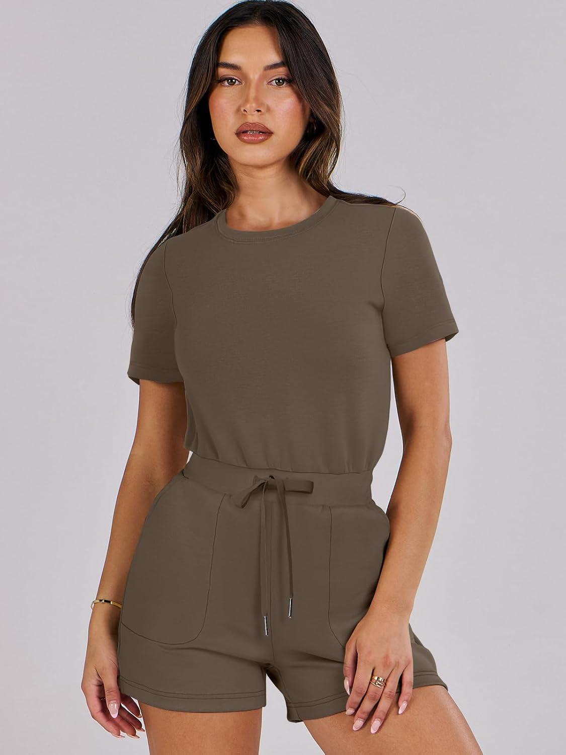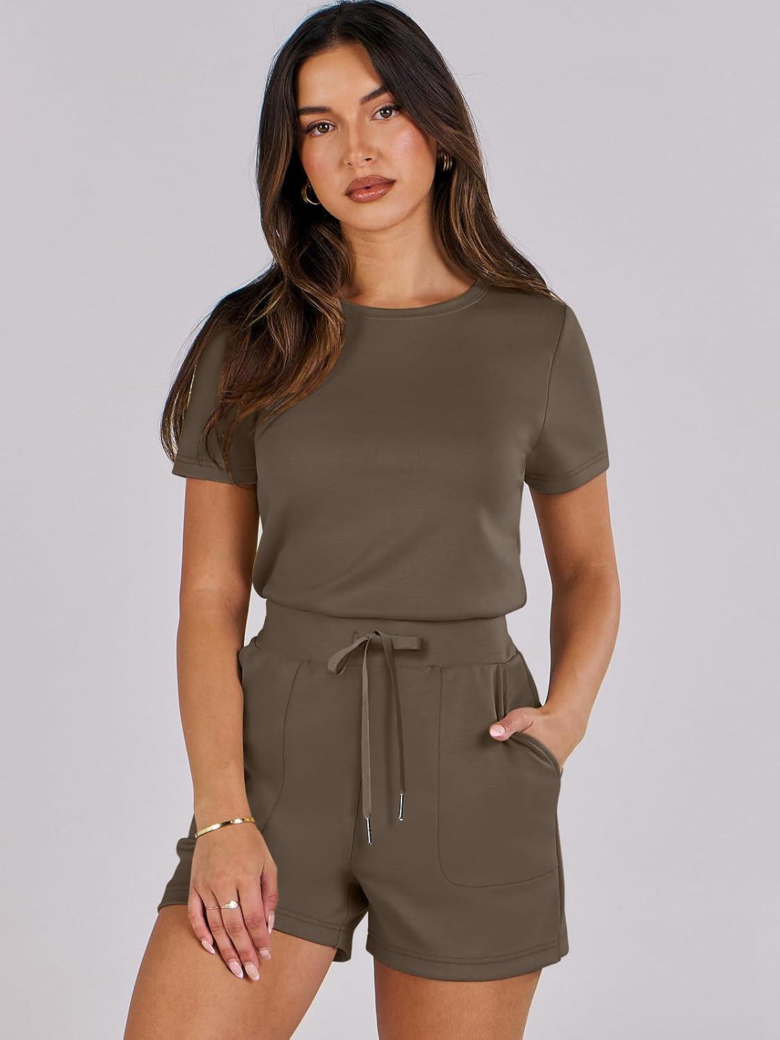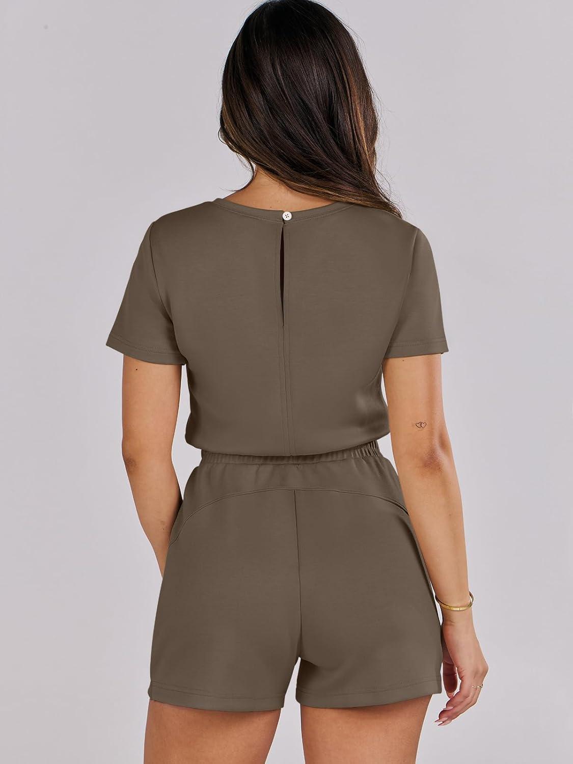 imageANRABESS Romper for Women Short Sleeve Summer Tshirt One Piece Jumpsuit Beach Vacation Travel Outfits 2025 Dressy ClothesBrown