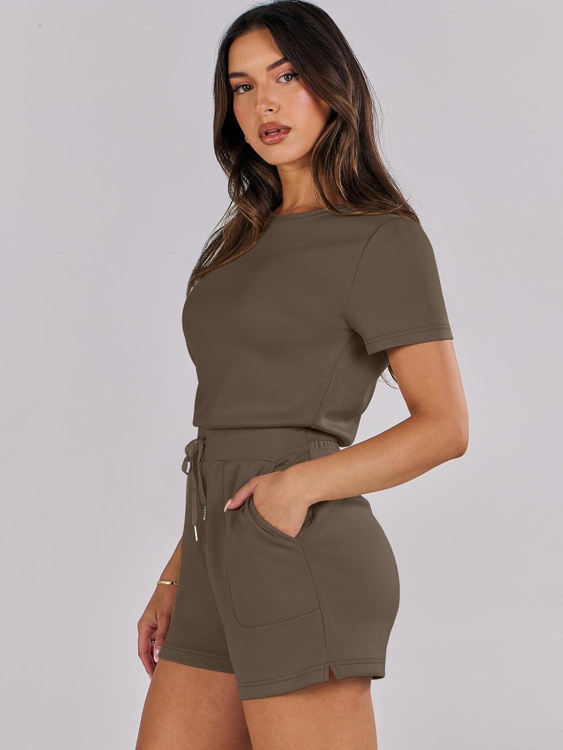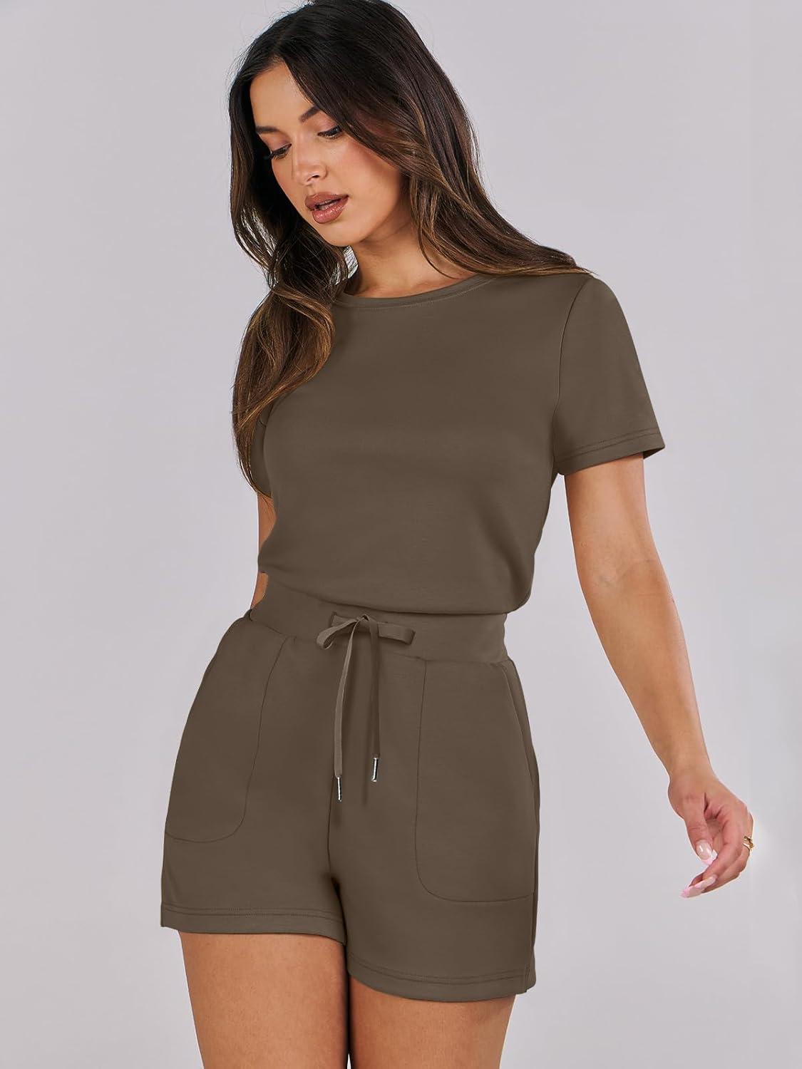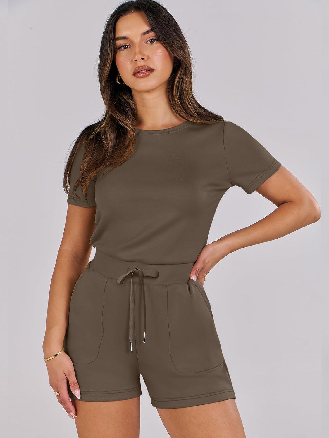 imageANRABESS Romper for Women Short Sleeve Summer Tshirt One Piece Jumpsuit Beach Vacation Travel Outfits 2025 Dressy ClothesBrown