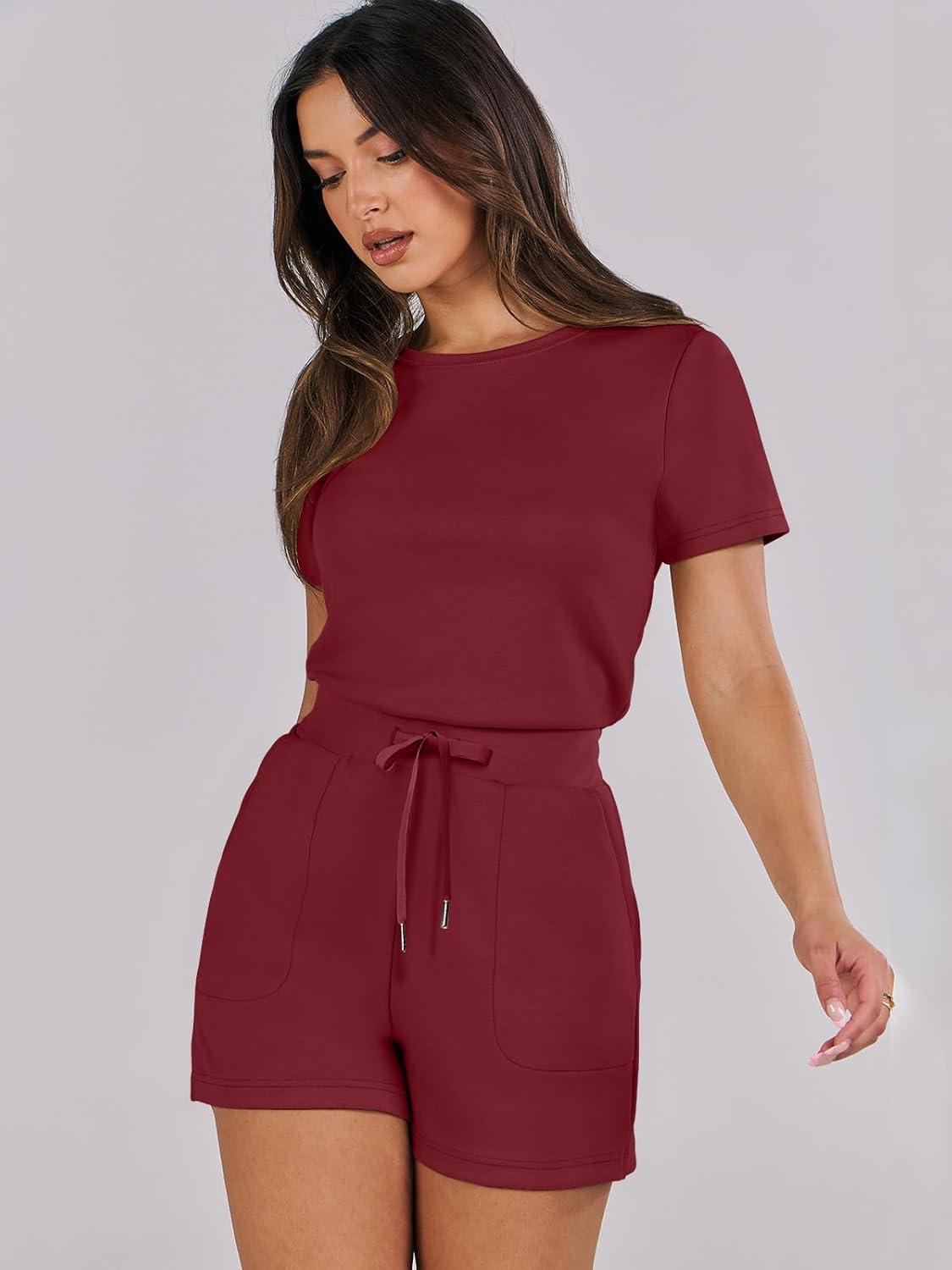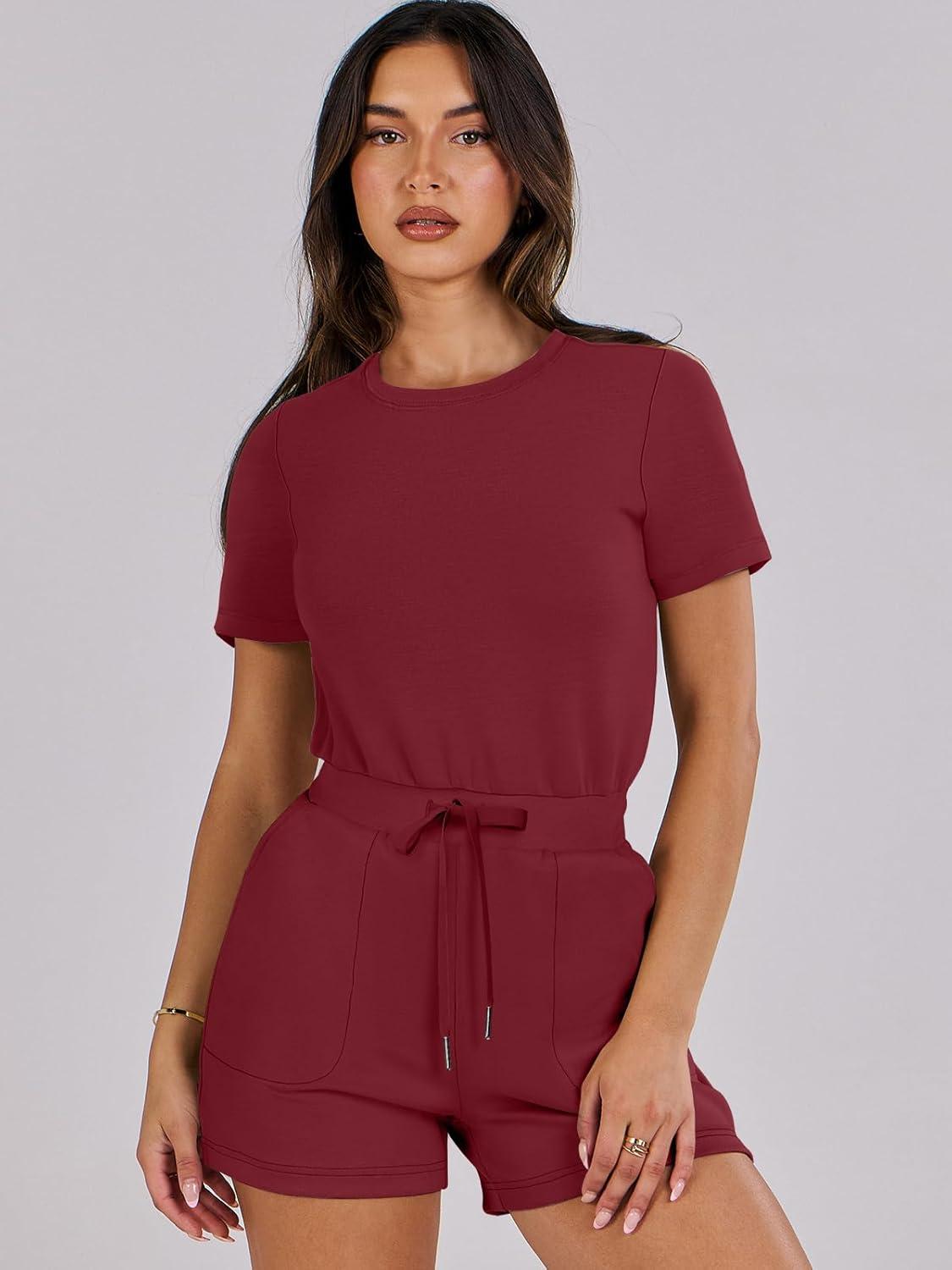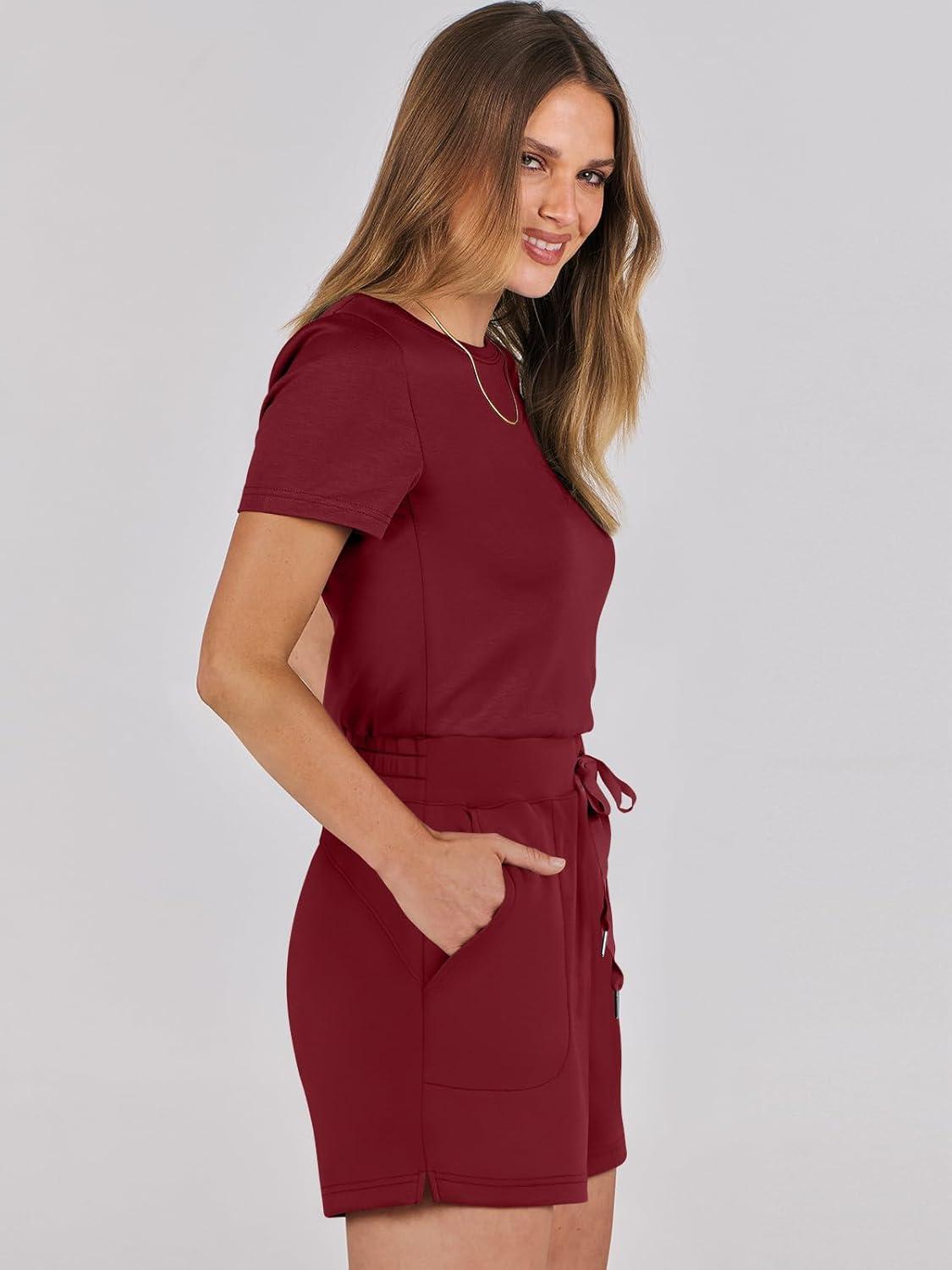 ANRABESS Romper for Women Short Sleeve Summer Tshirt One Piece Jumpsuit Beach Vacation Travel Outfits 2025 Dressy Clothes(Burgundy)