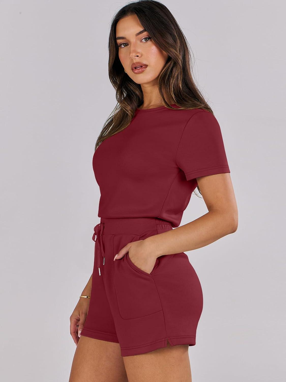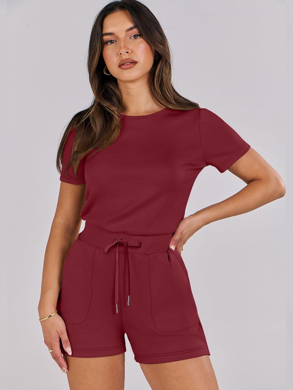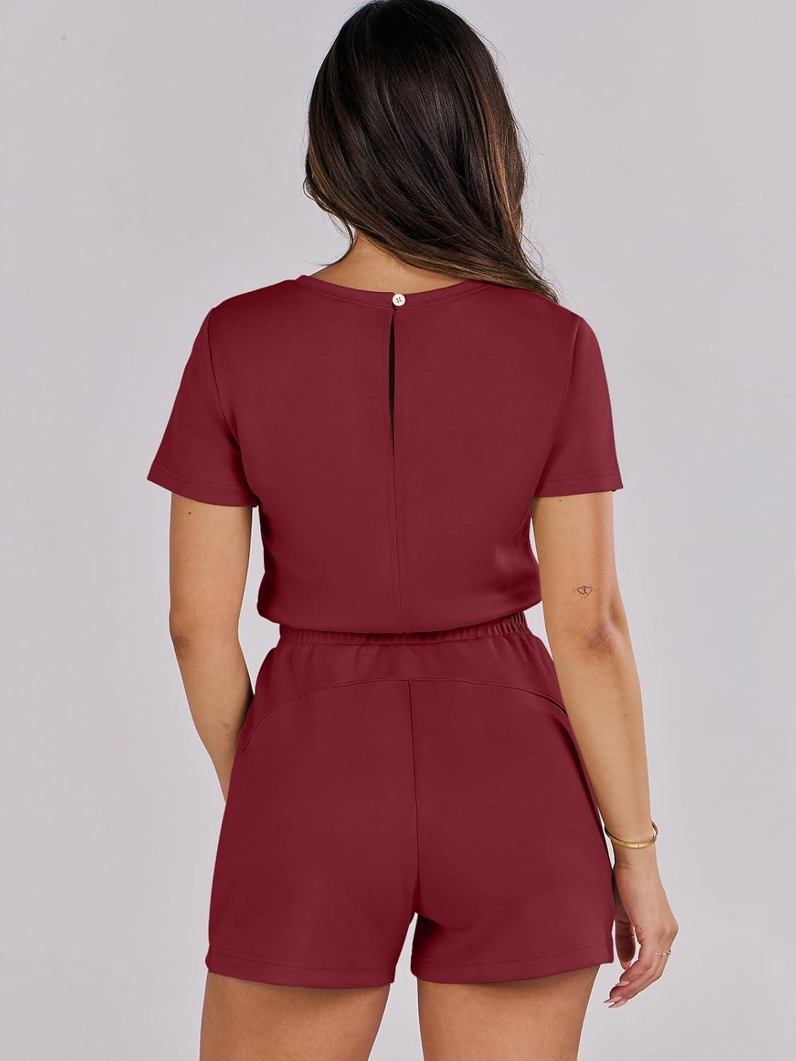 ANRABESS Romper for Women Short Sleeve Summer Tshirt One Piece Jumpsuit Beach Vacation Travel Outfits 2025 Dressy Clothes(Burgundy)