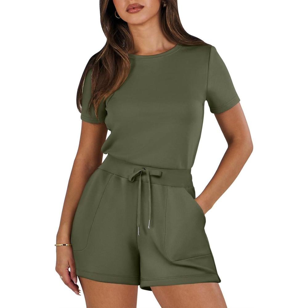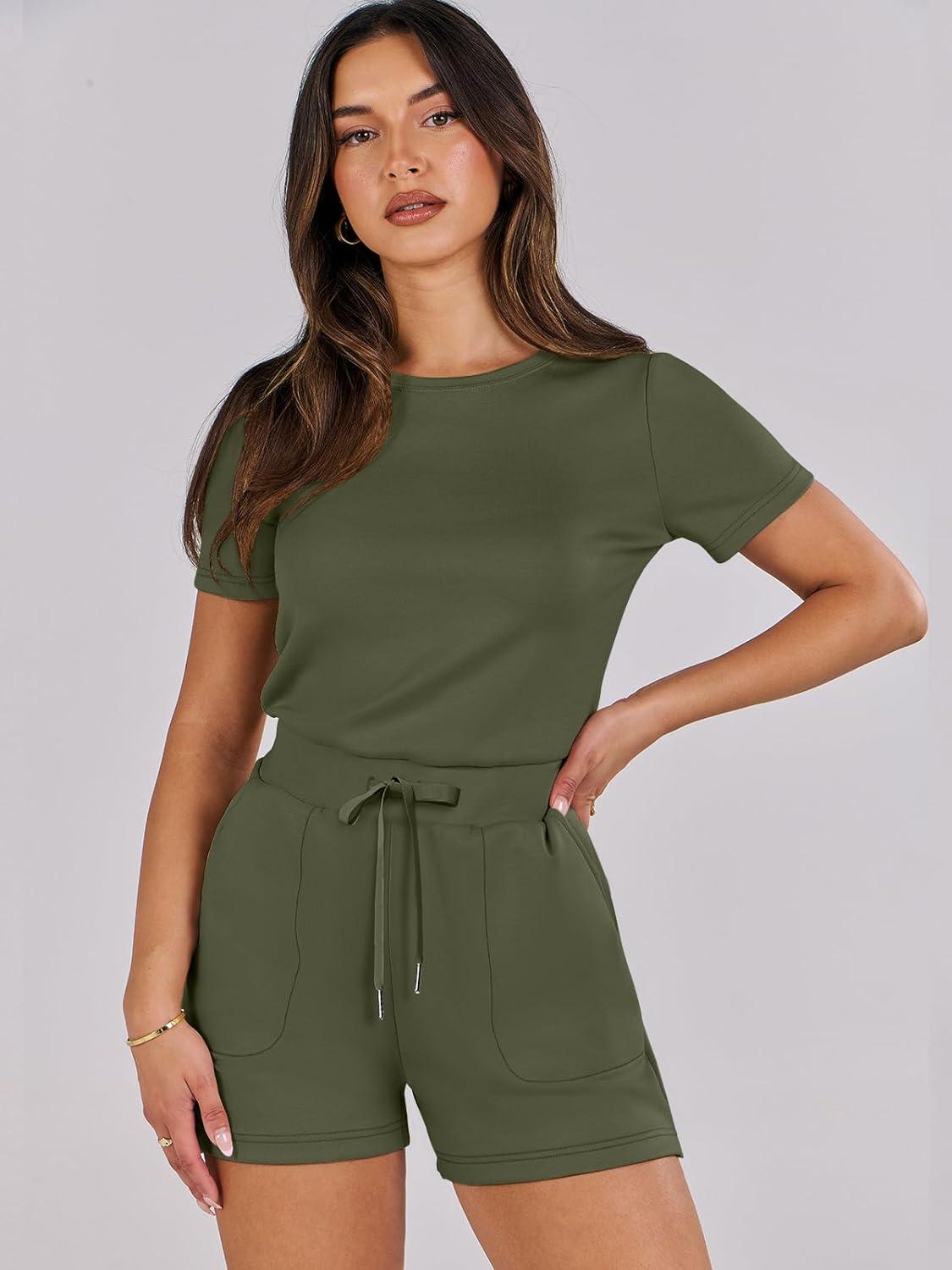 ANRABESS Romper for Women Short Sleeve Summer Tshirt One Piece Jumpsuit Beach Vacation Travel Outfits 2025 Dressy Clothes(Olive)