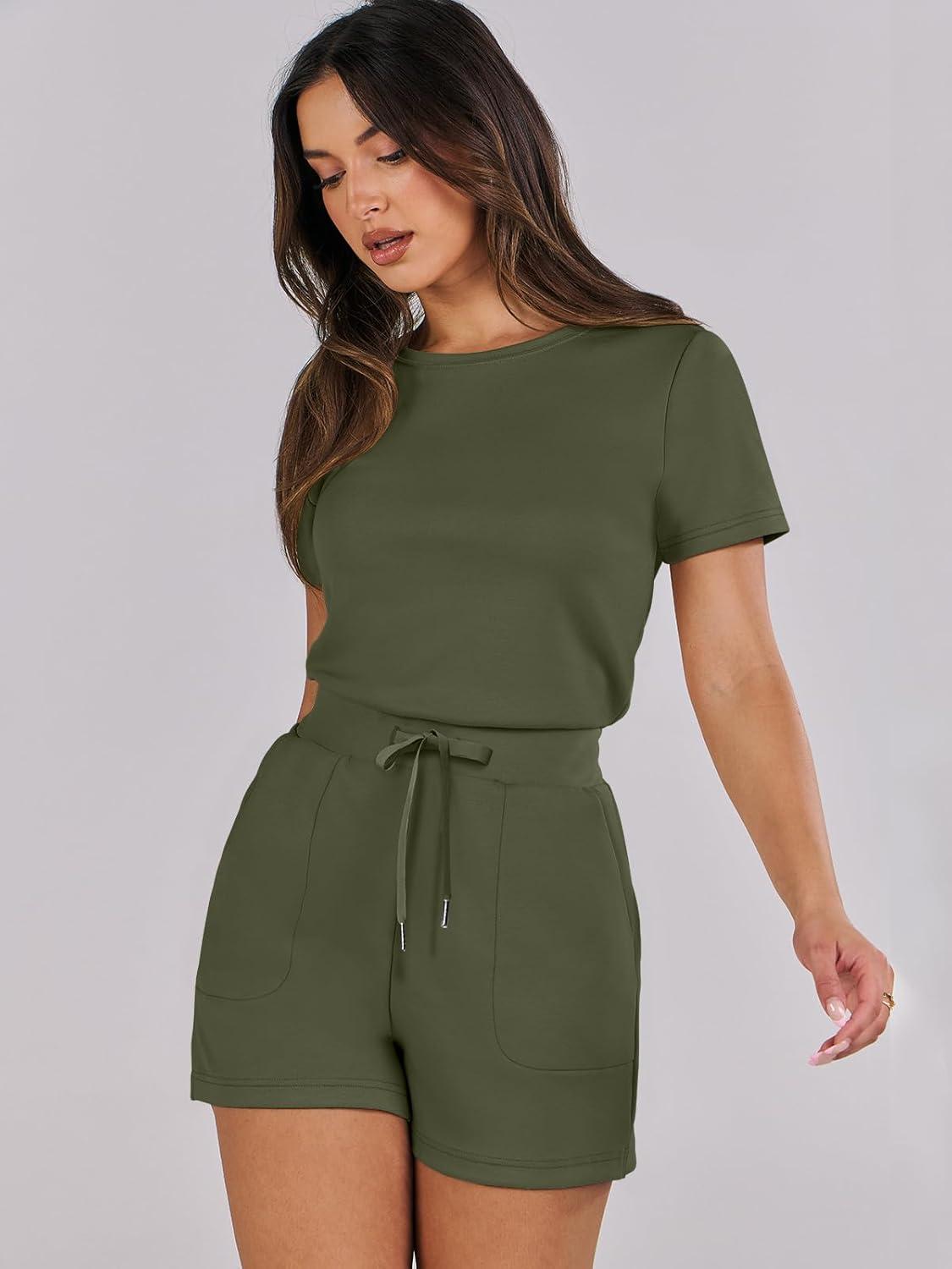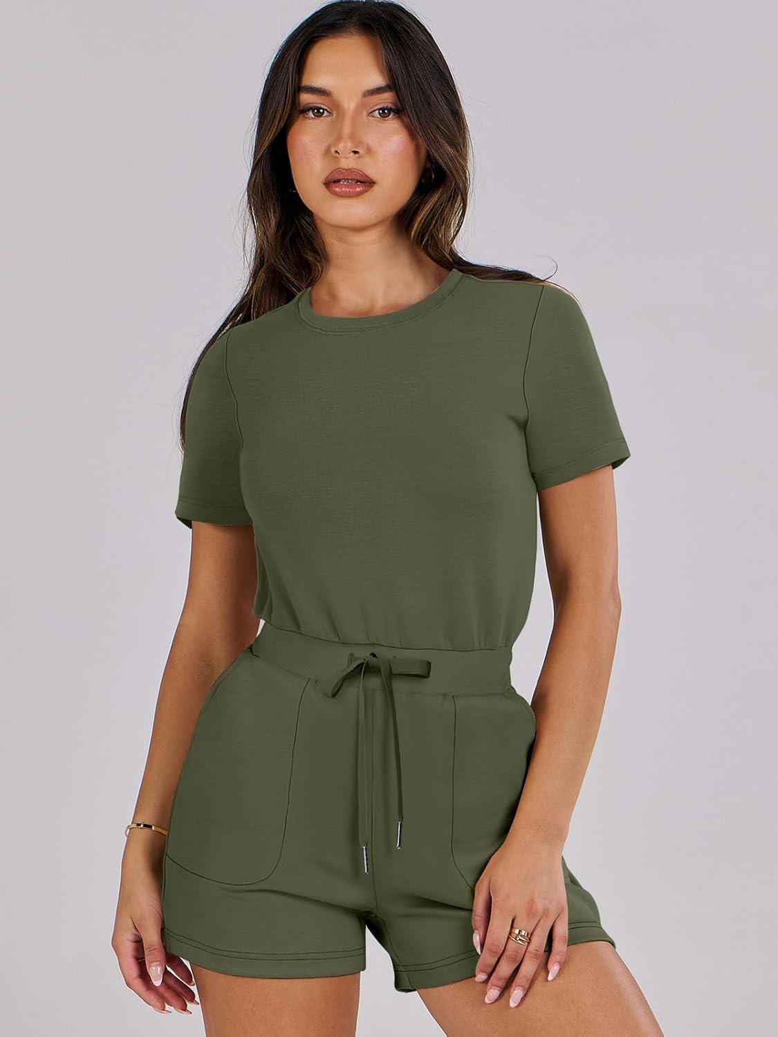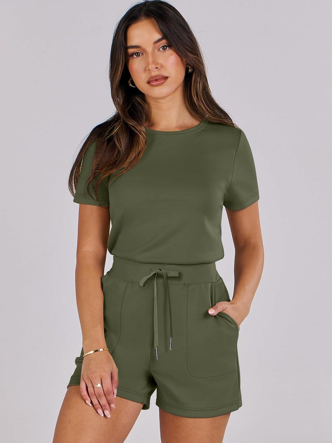imageANRABESS Romper for Women Short Sleeve Summer Tshirt One Piece Jumpsuit Beach Vacation Travel Outfits 2025 Dressy ClothesOlive