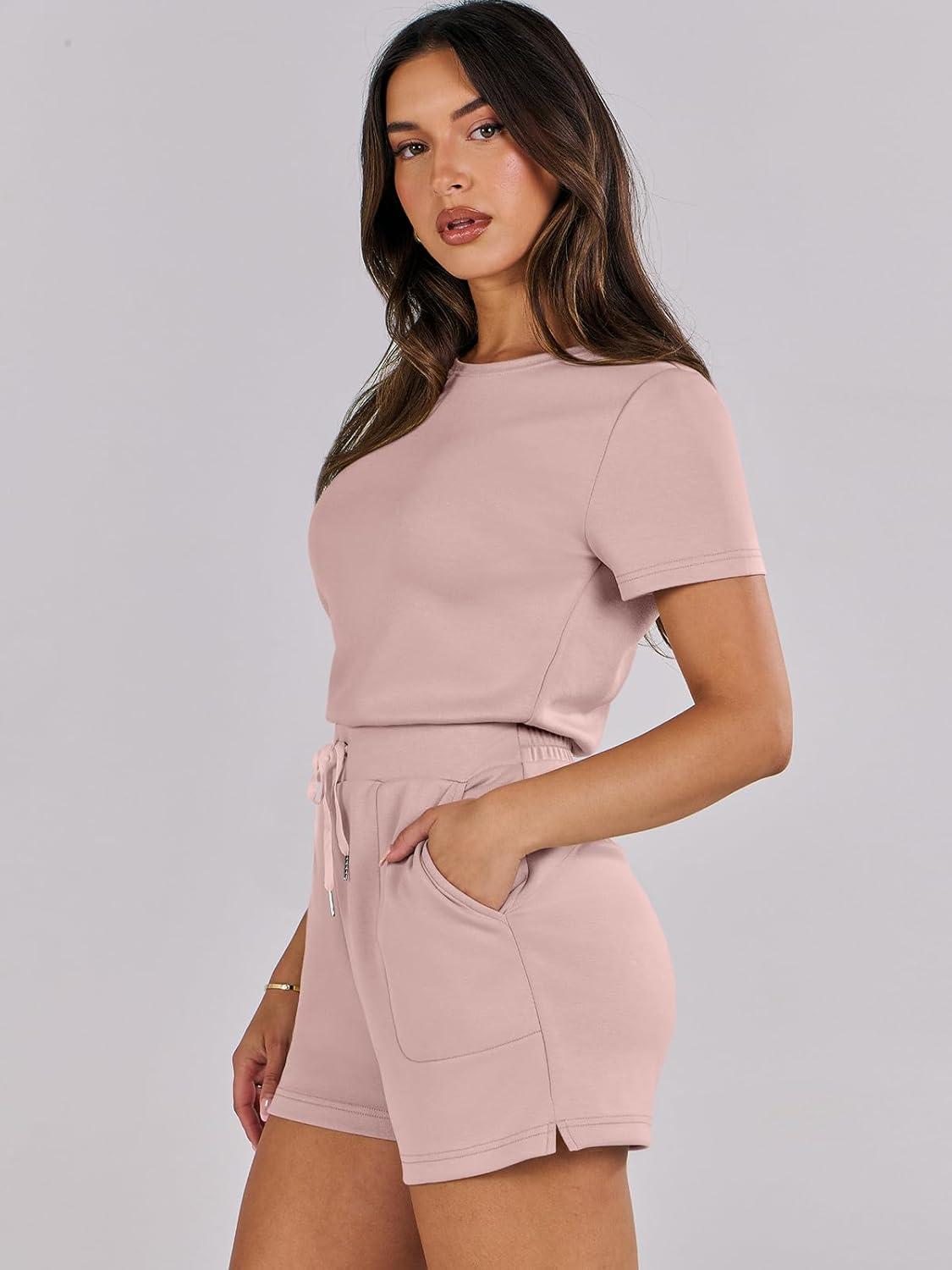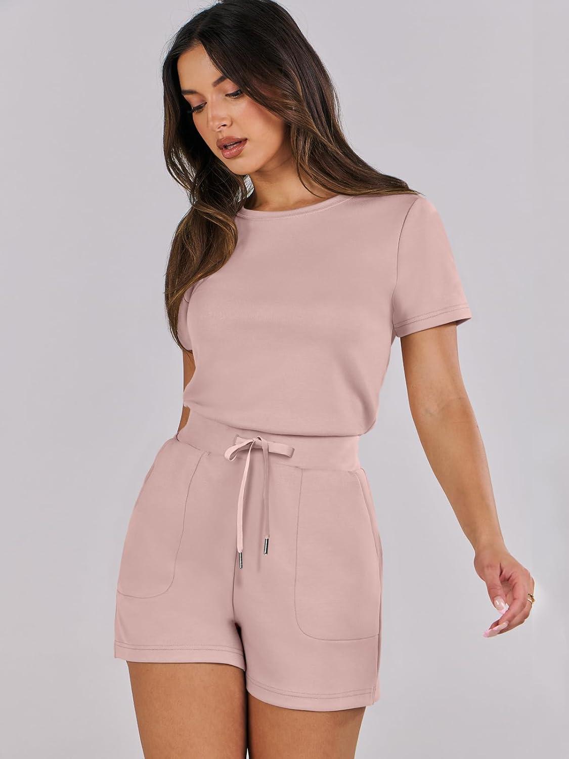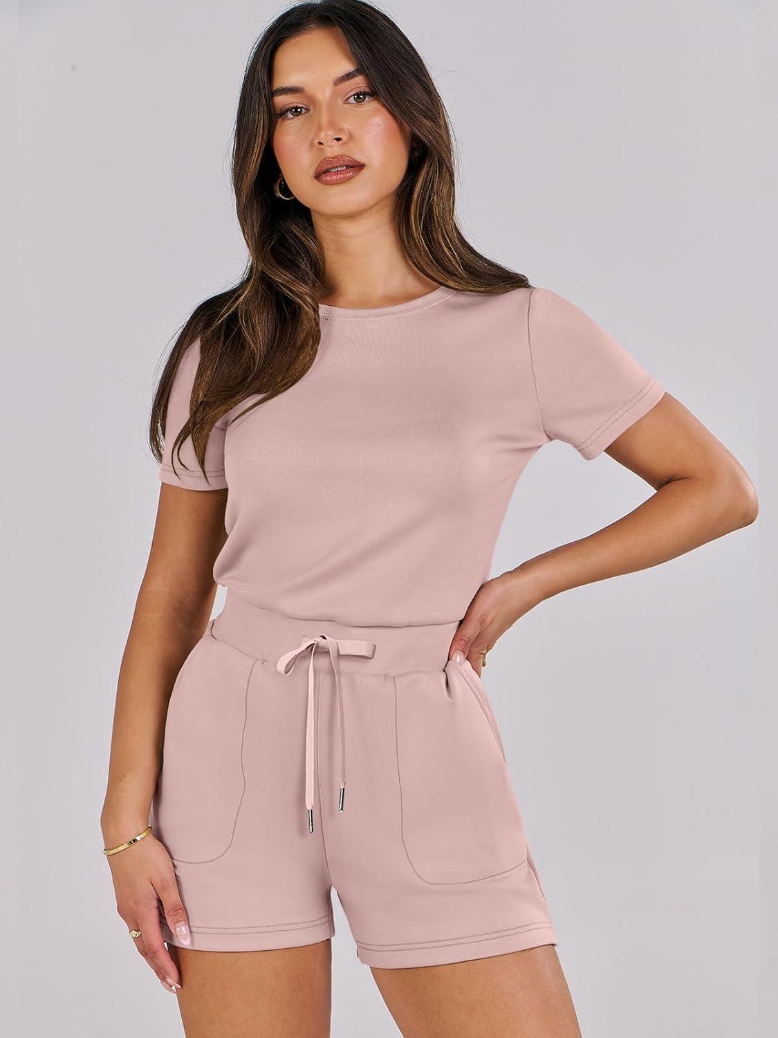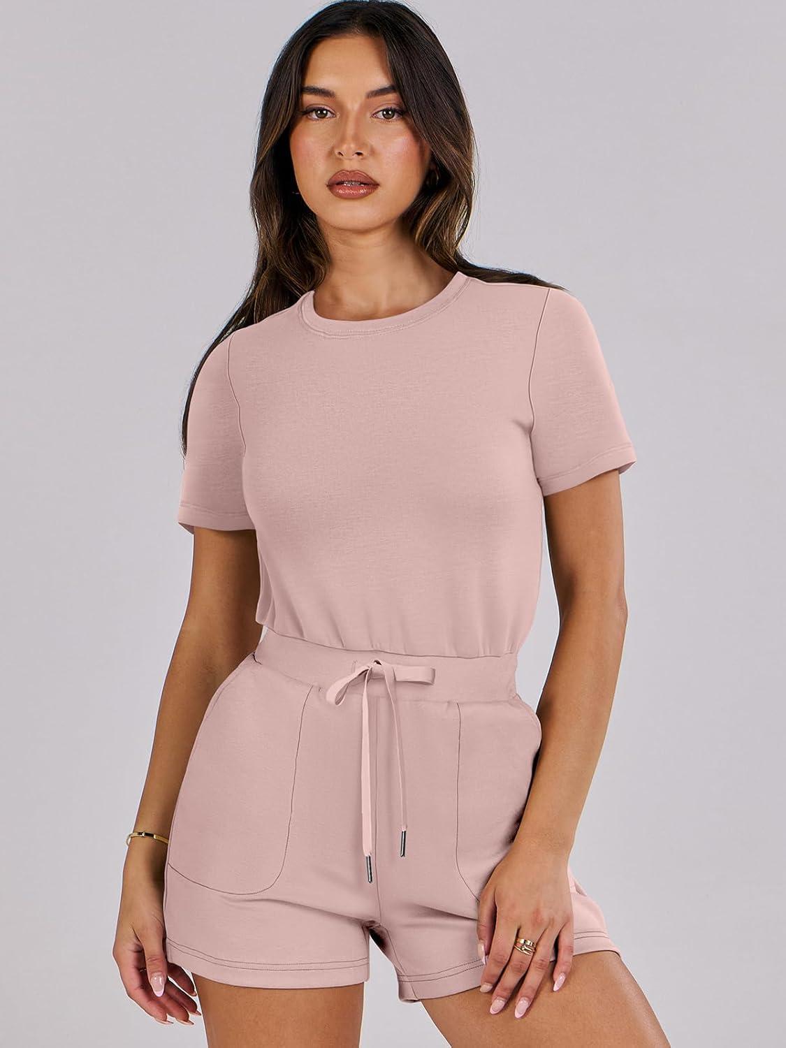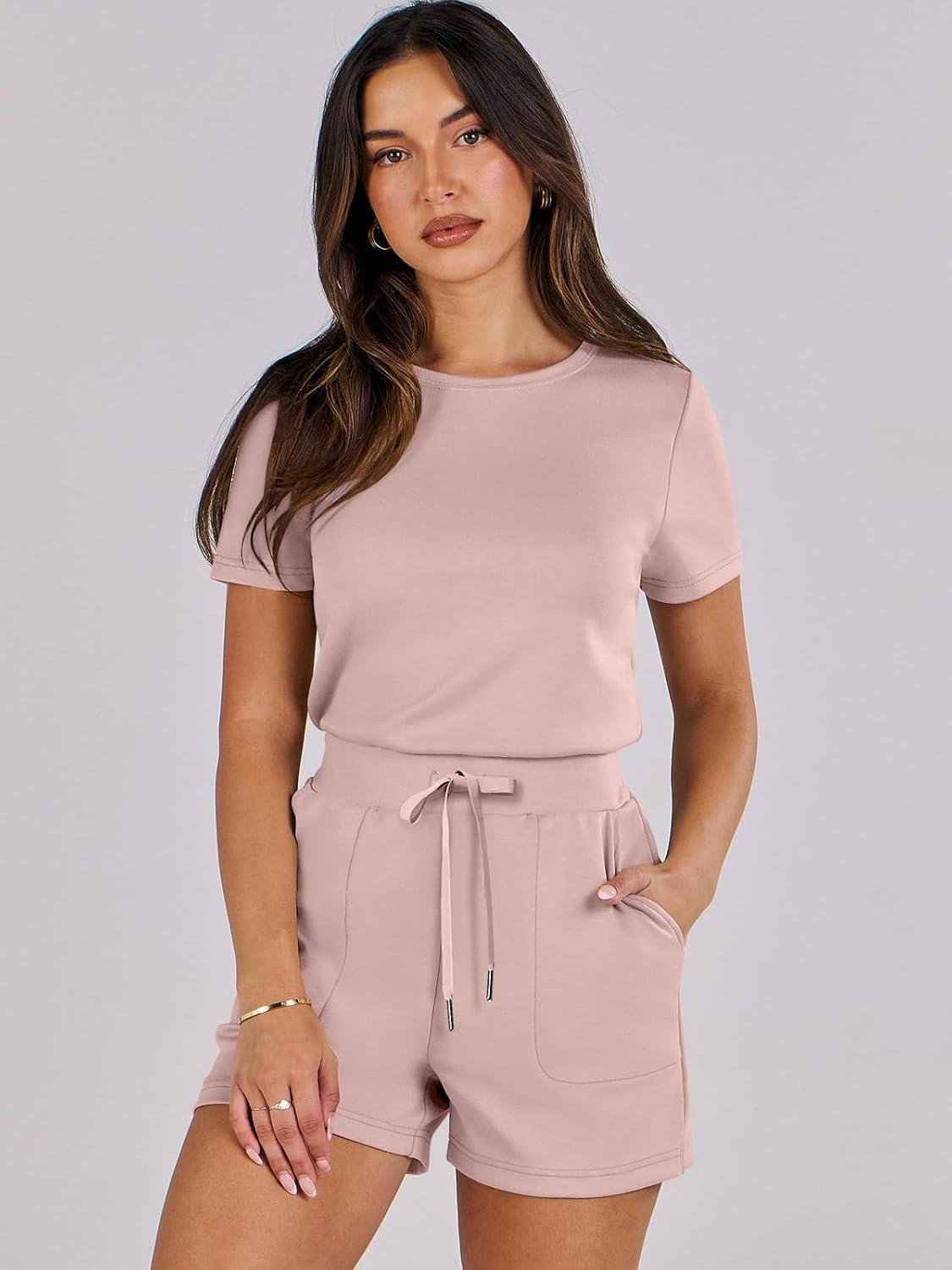 ANRABESS Romper for Women Short Sleeve Summer Tshirt One Piece Jumpsuit Beach Vacation Travel Outfits 2025 Dressy Clothes(Pink)