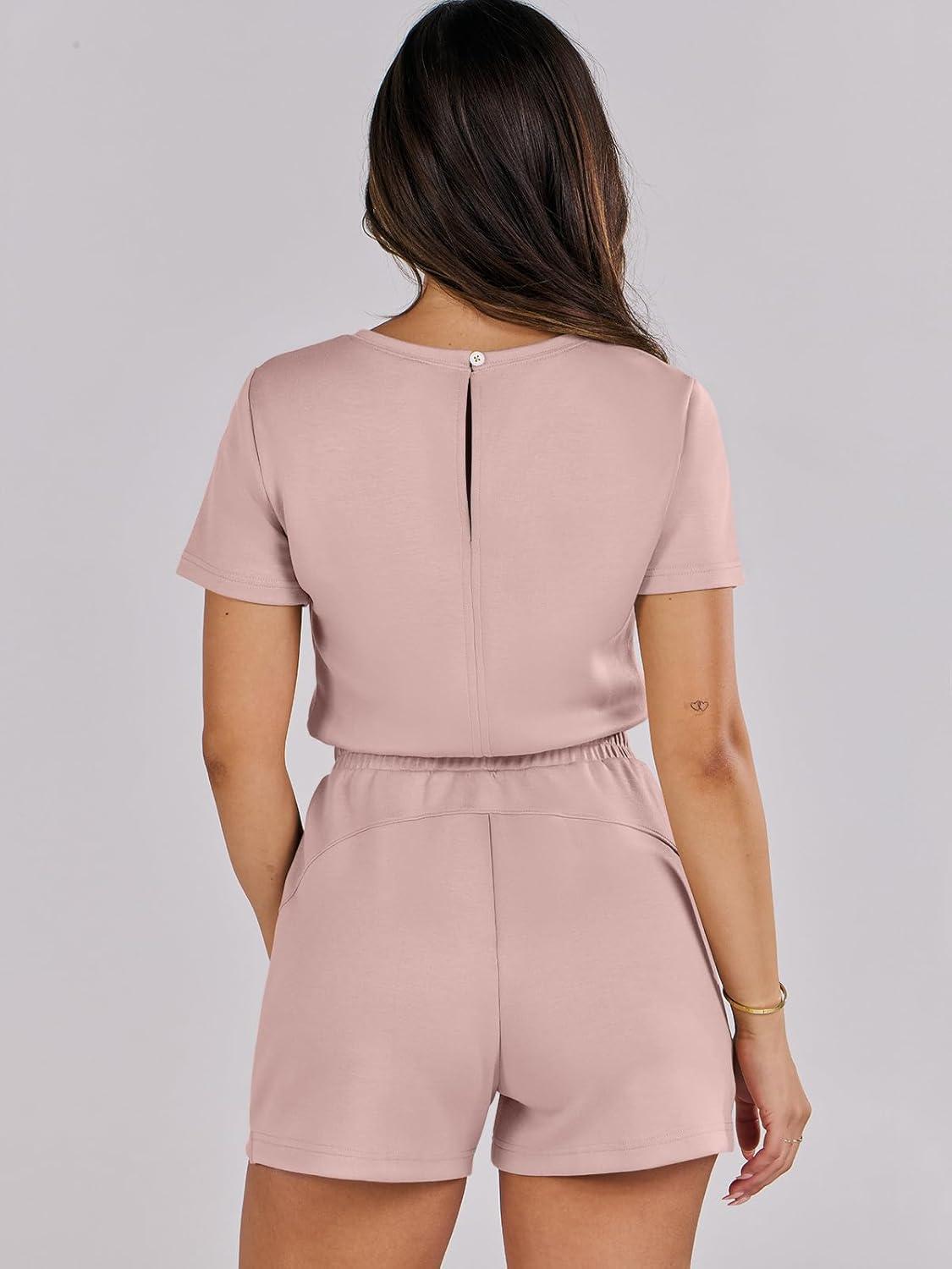 imageANRABESS Romper for Women Short Sleeve Summer Tshirt One Piece Jumpsuit Beach Vacation Travel Outfits 2025 Dressy ClothesPink