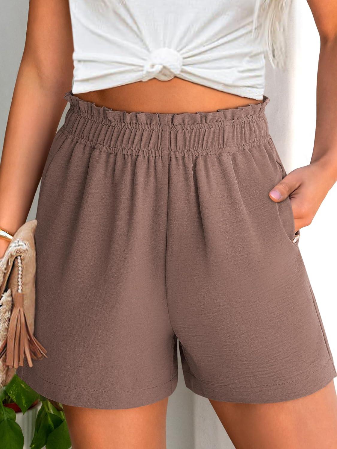 ANRABESS Shorts for Women Summer Casual Elastic High Waisted Dressy Lounge Shorts Comfy Bottoms 2025 Beach Vacation Clothes(Deep Brown)