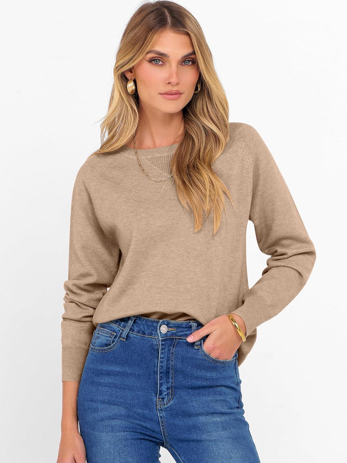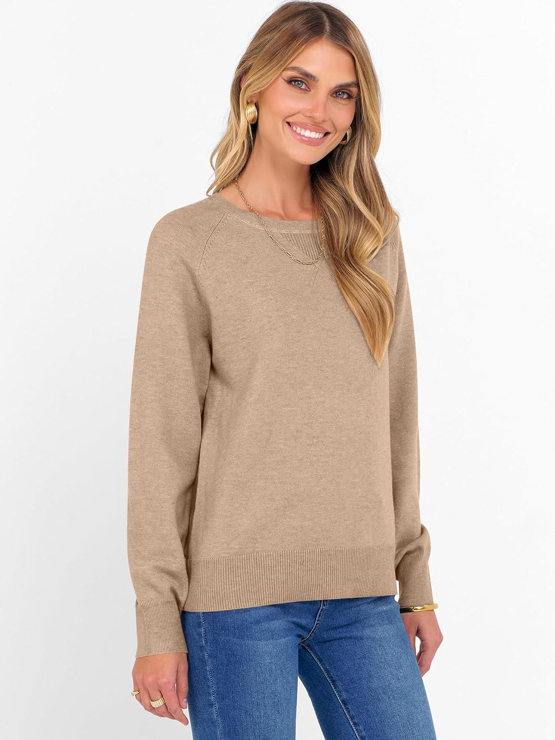 imageANRABESS Sweater for Women Long Sleeve Crewneck 2025 Fall Winter Soft Loose Fit Basic Knit Pullover Sweaters Top OutfitsWarm Khaki