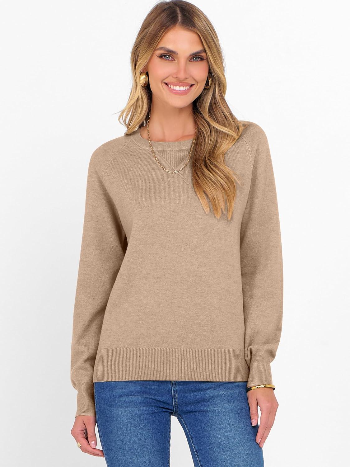 ANRABESS Sweater for Women Long Sleeve Crewneck 2025 Fall Winter Soft Loose Fit Basic Knit Pullover Sweaters Top Outfits(Warm Khaki)