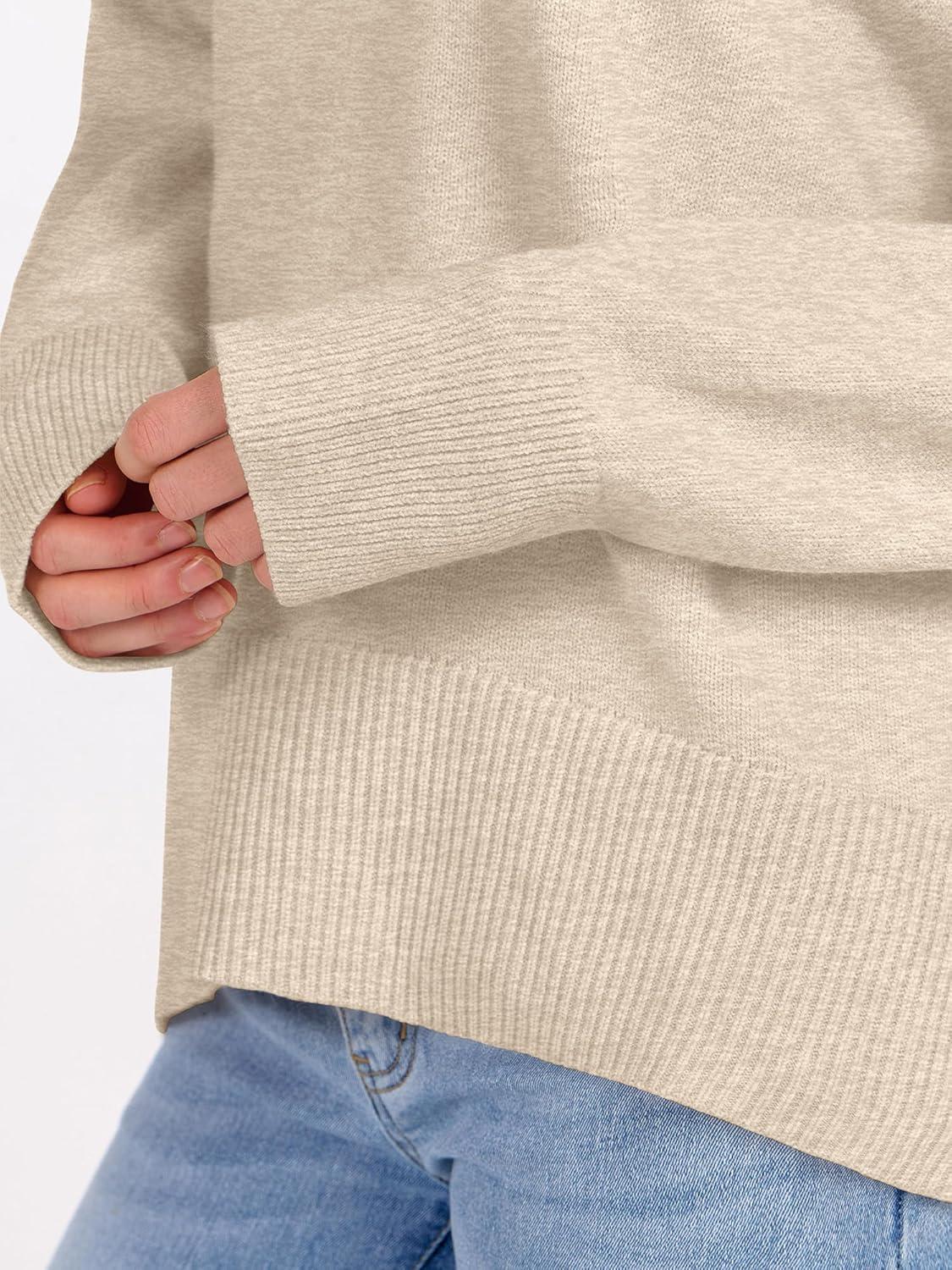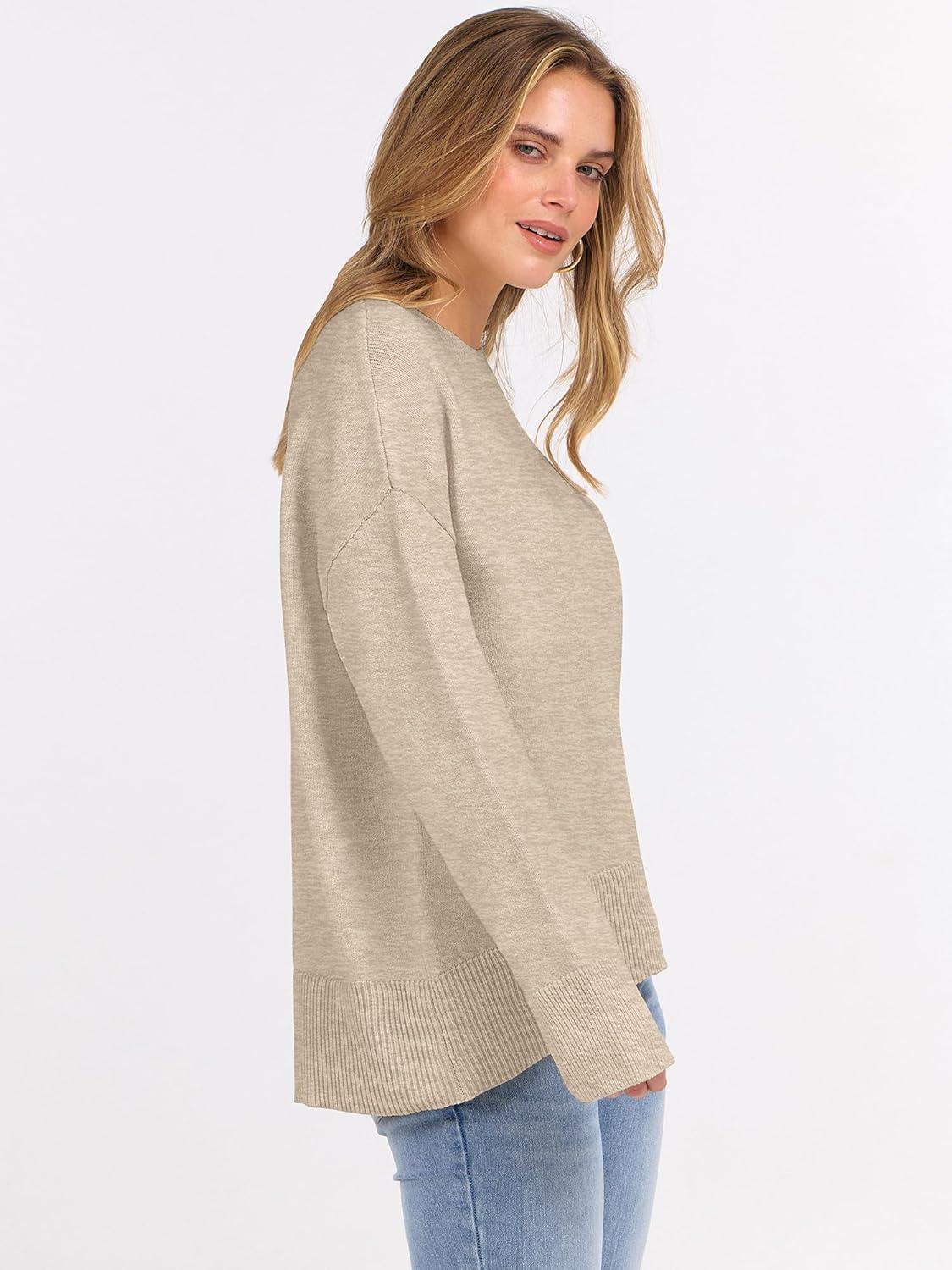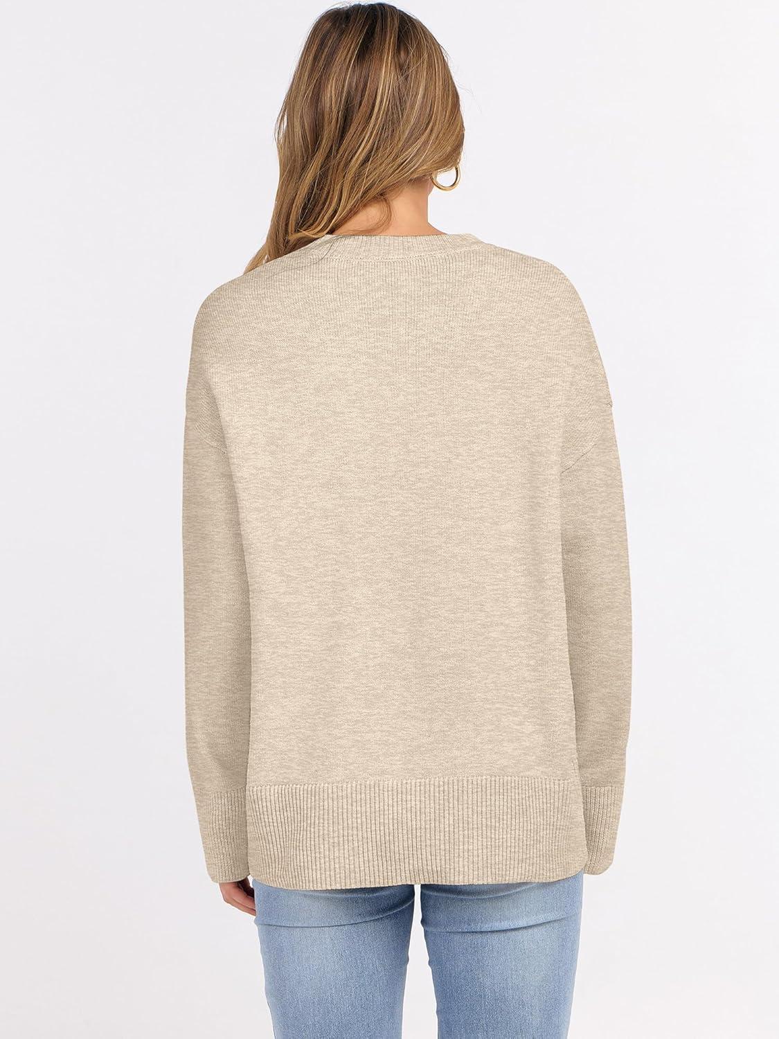imageANRABESS Sweaters for Women 2025 Fall Long Sleeve Casual Loose Fit Knitted High Low Hem Basic Pullover Sweater TopsLight Beige