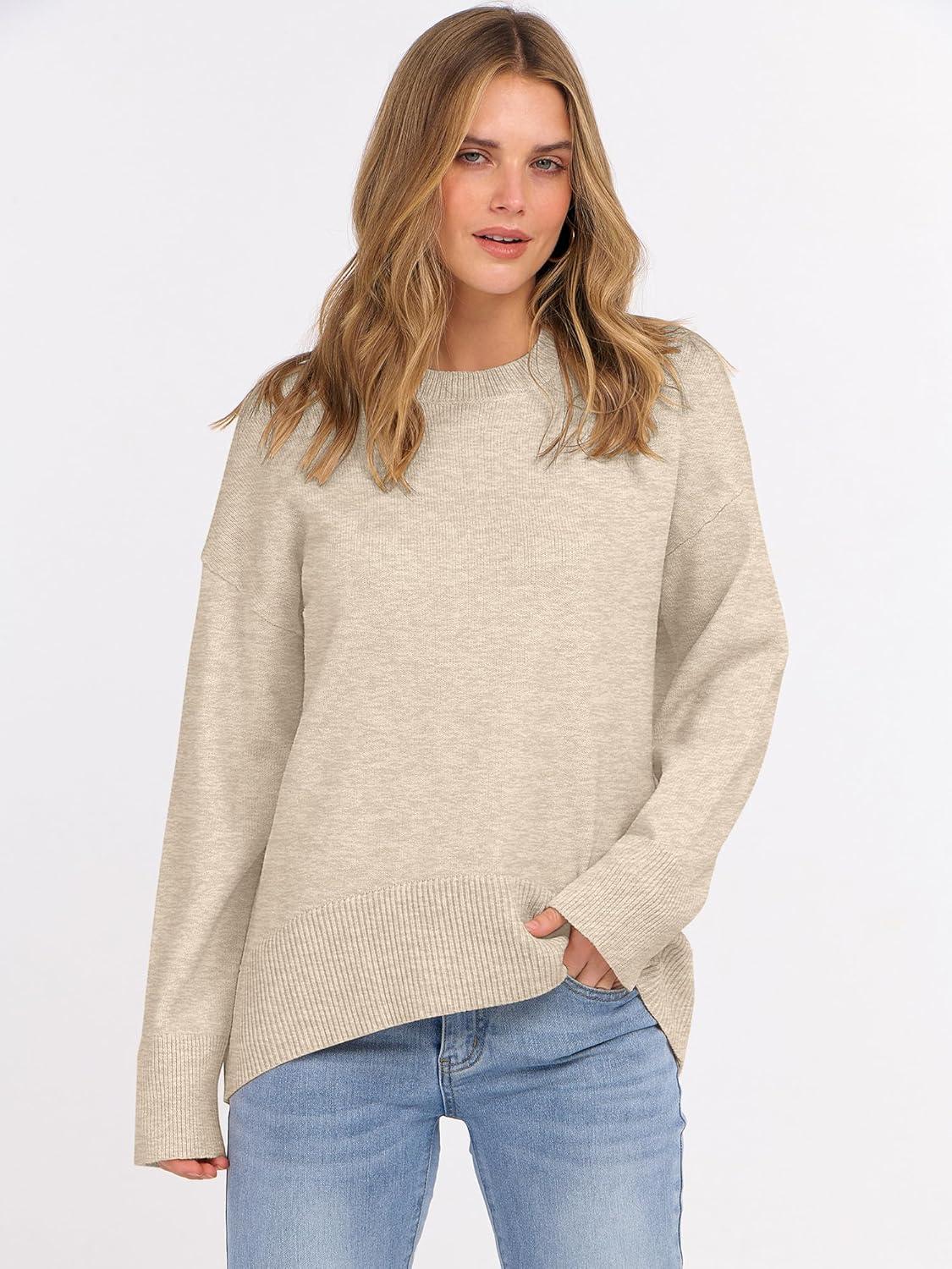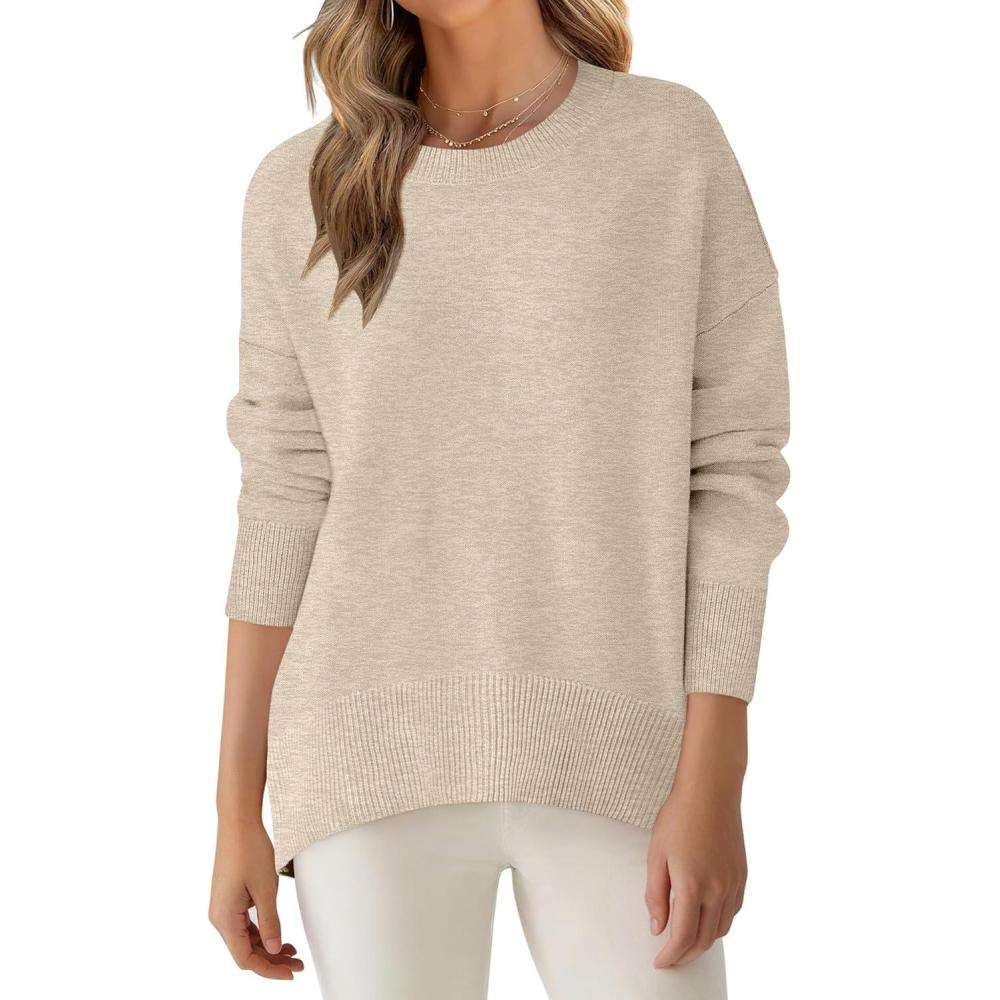 ANRABESS Sweaters for Women 2025 Fall Long Sleeve Casual Loose Fit Knitted High Low Hem Basic Pullover Sweater Tops(Light Beige)