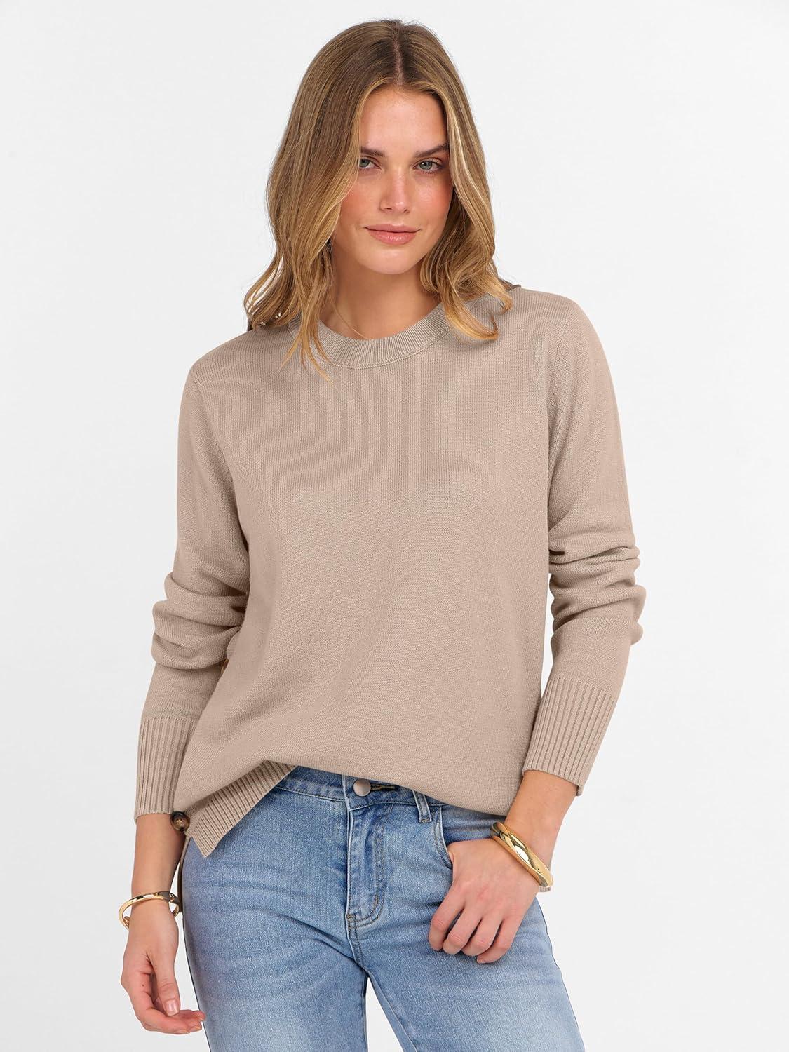 ANRABESS Sweaters for Women 2025 Fall Long Sleeve Crewneck Knit Casual Loose Side Button Basic Pullover Tops Trendy Outfits(Khaki)