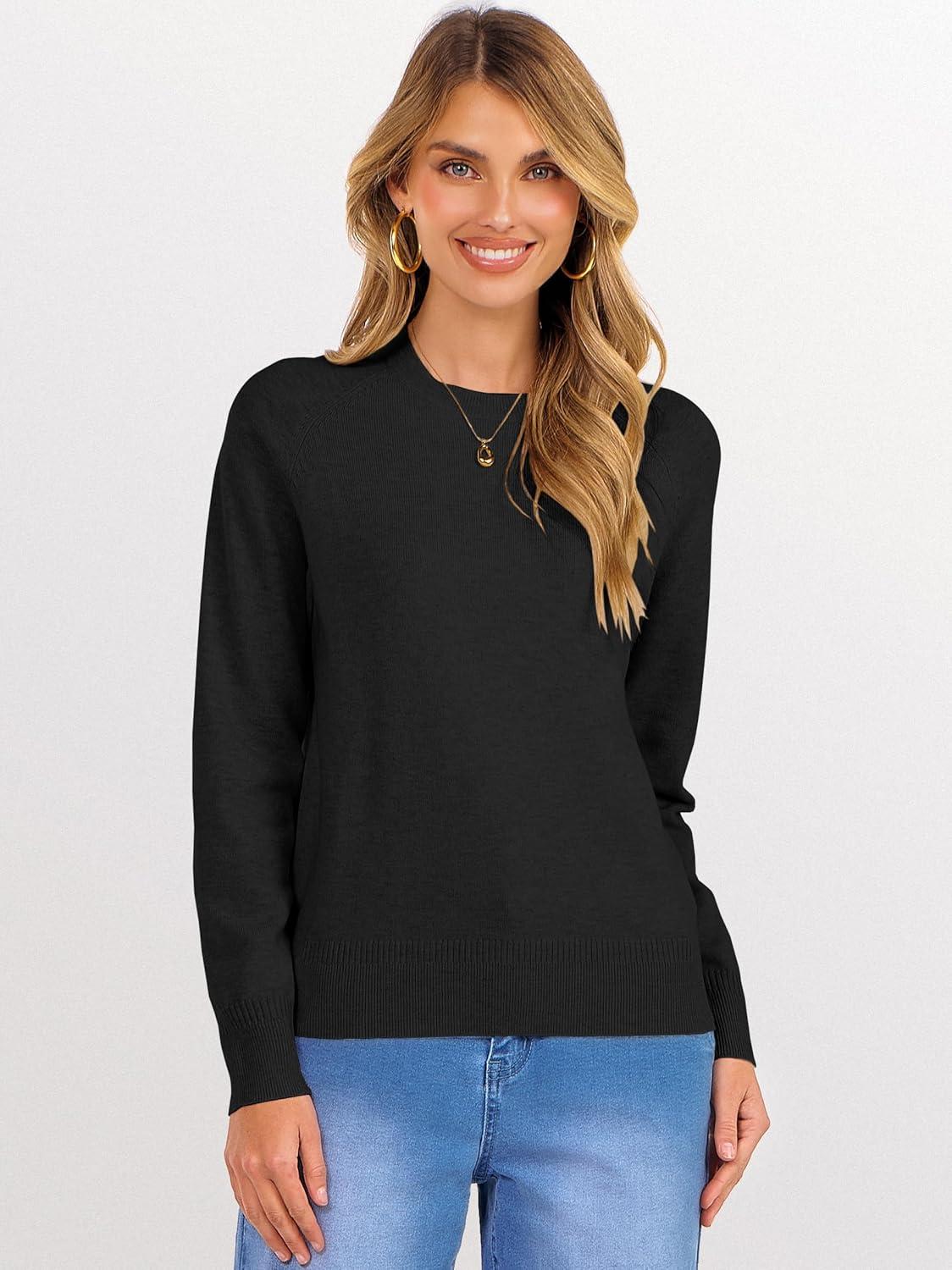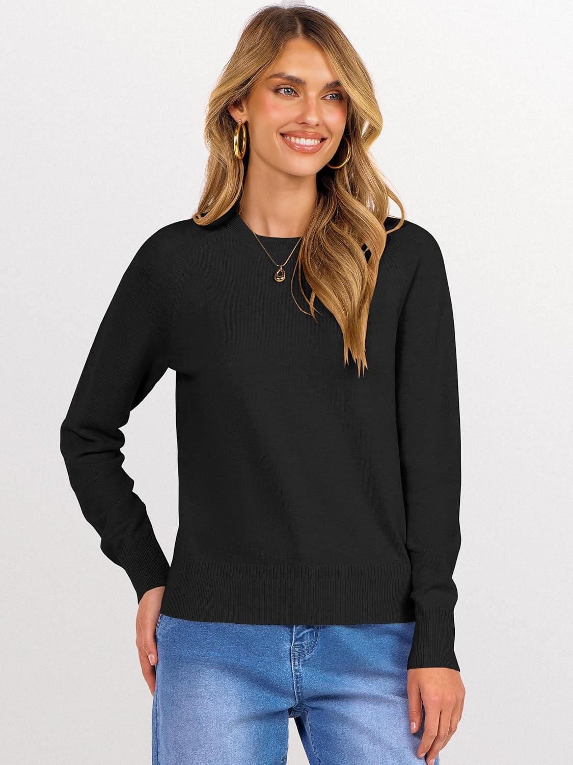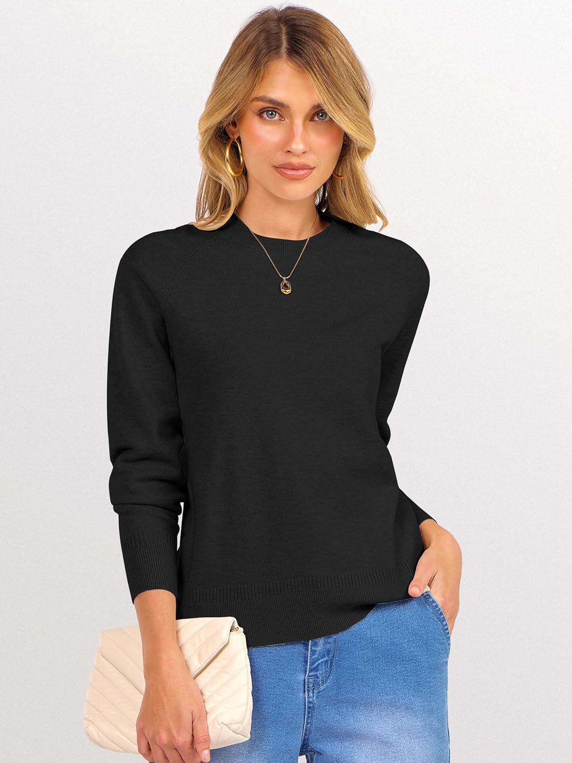 ANRABESS Sweaters for Women 2025 Long Sleeve Crewneck Loose Fit Lightweight Knit Basic Fall Sweater Outfits(Black)