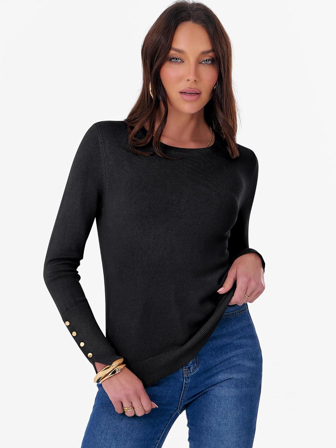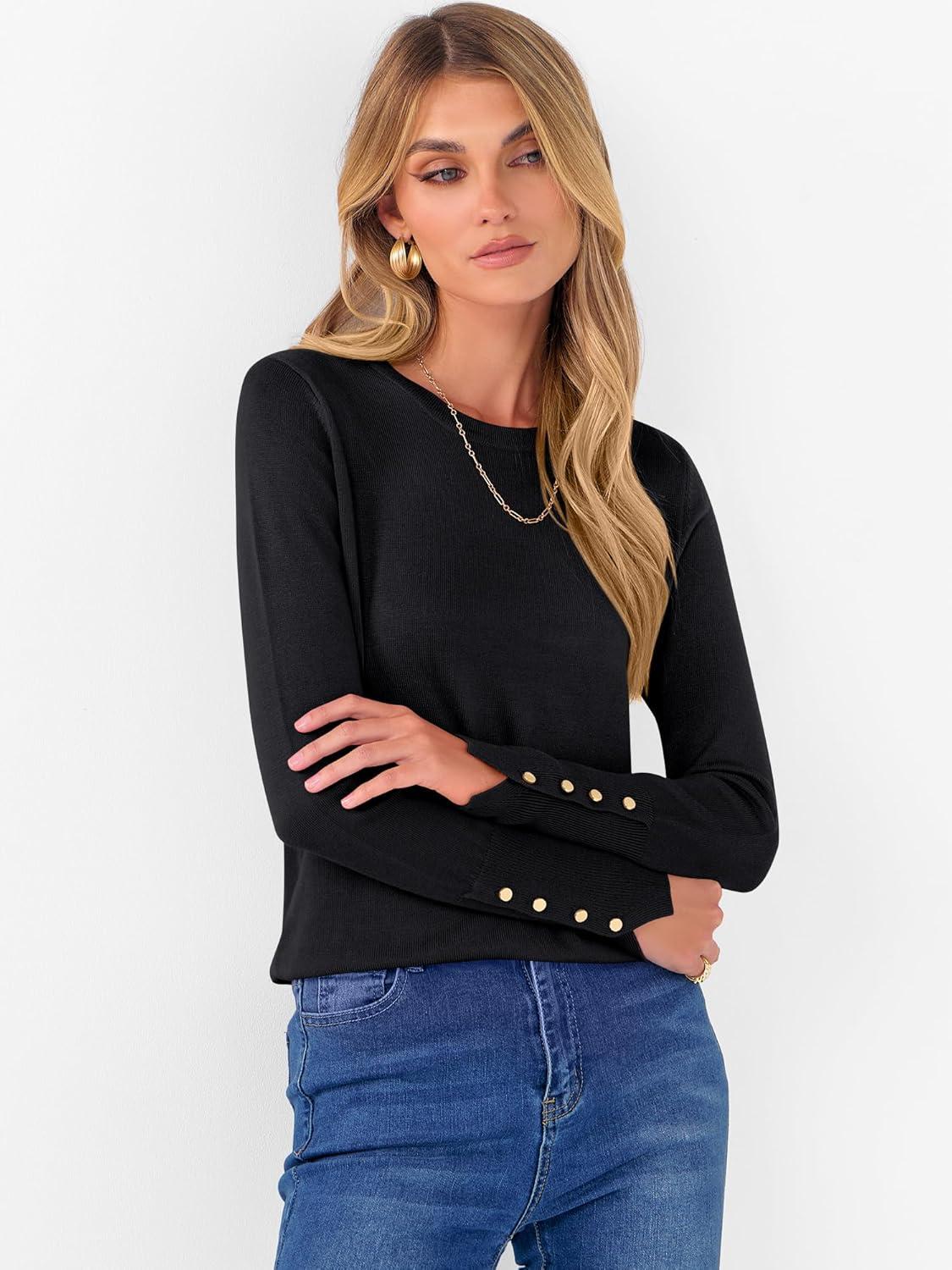 Get up to 50% off on ANRABESS Sweaters for Women Long Sleeve Crewneck Fitted Business Casual Pullover Tops 2025 Fall Outfits with Button Cuff(Black) styles during our spring sale event.