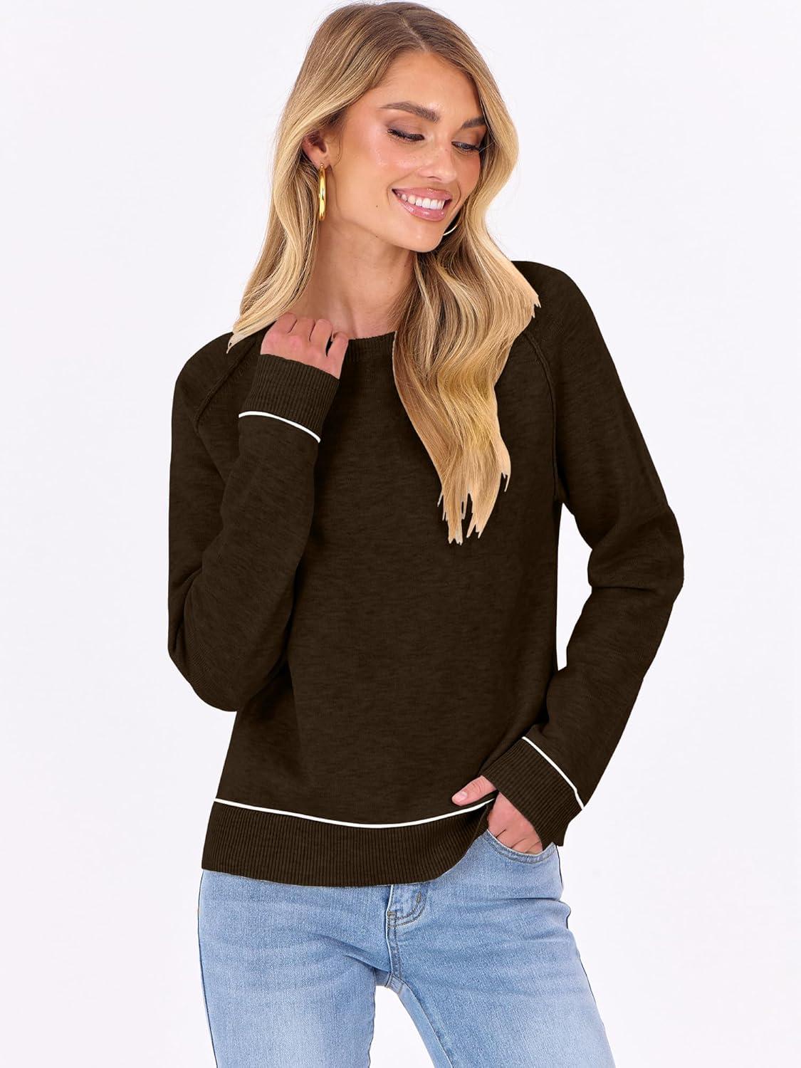 imageANRABESS Sweaters for Women Long Sleeve Cropped Lightweight 2025 Fall Fashion Knit Crewneck Pullover Top Soft Trendy OutfitsCoffee